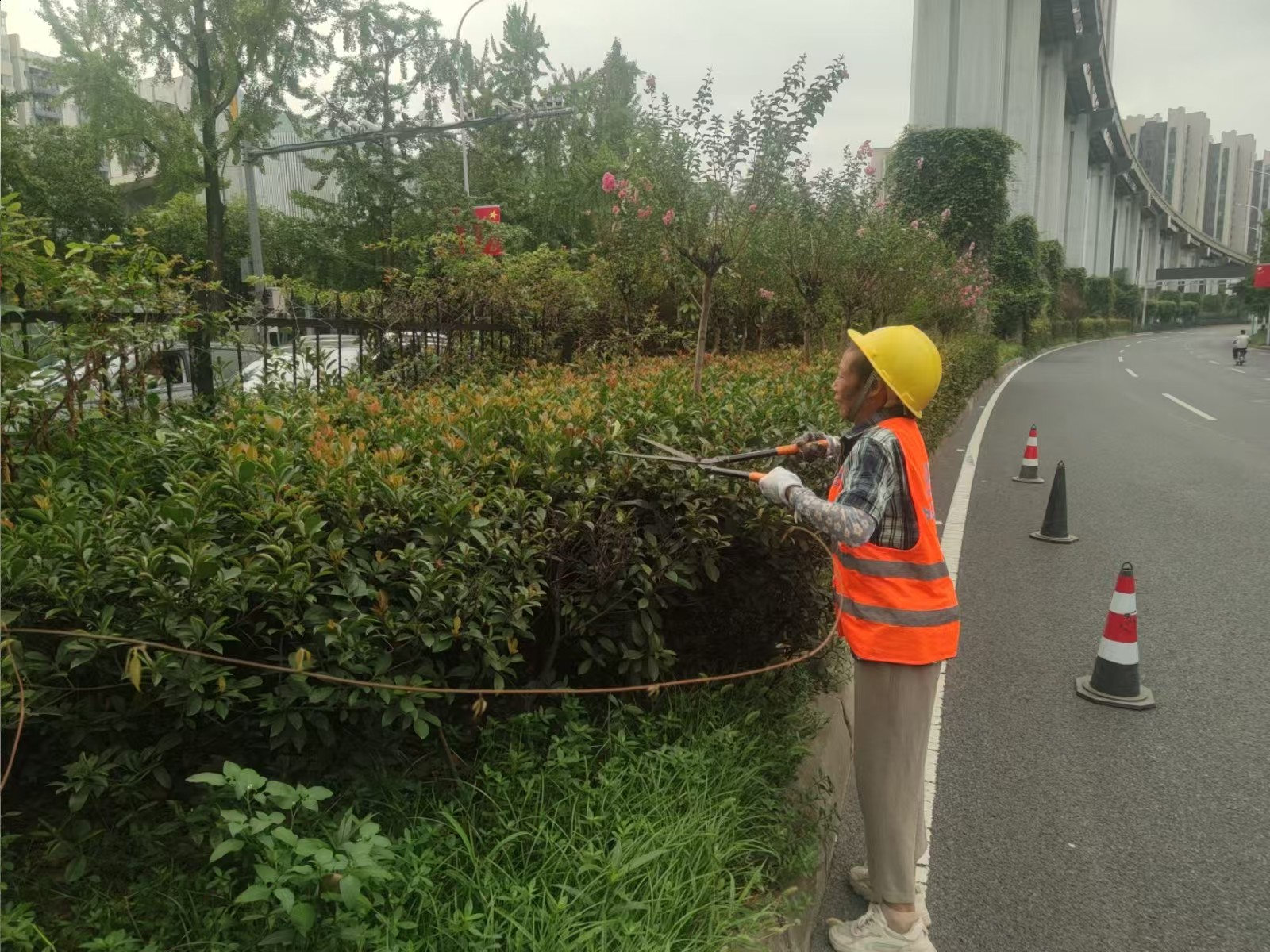 同时,对海峡路及鹅公岩大桥南桥头、江南大道等窗口区域进行绿化提升,修剪树状月季、美人梅、九重葛、红叶李等2123株、灌木约1.04万平方米,打造层次分明、造型优美的植物空间,用崭新的“面貌”迎接国庆!