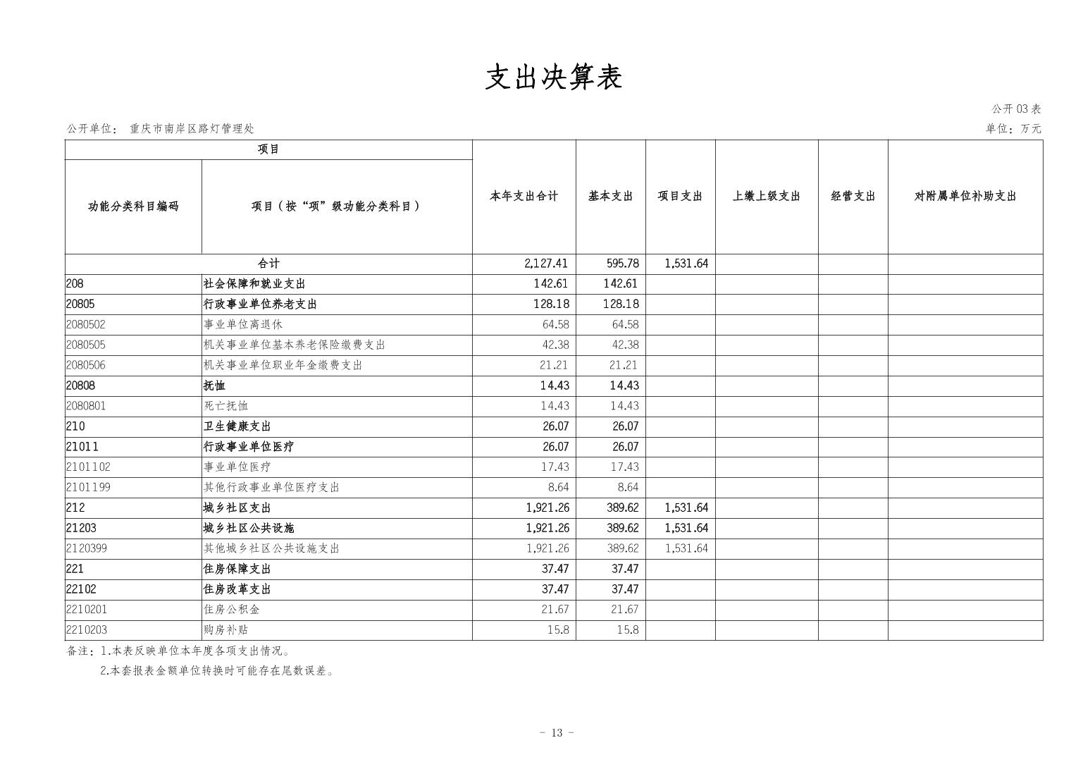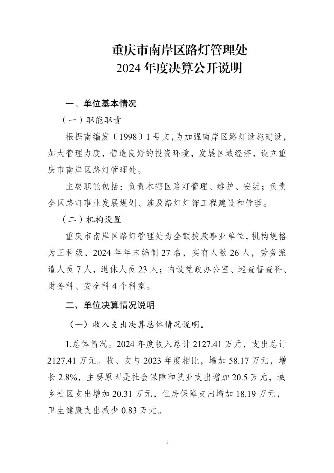 重庆市南岸区路灯管理处2024年度决算公开说明