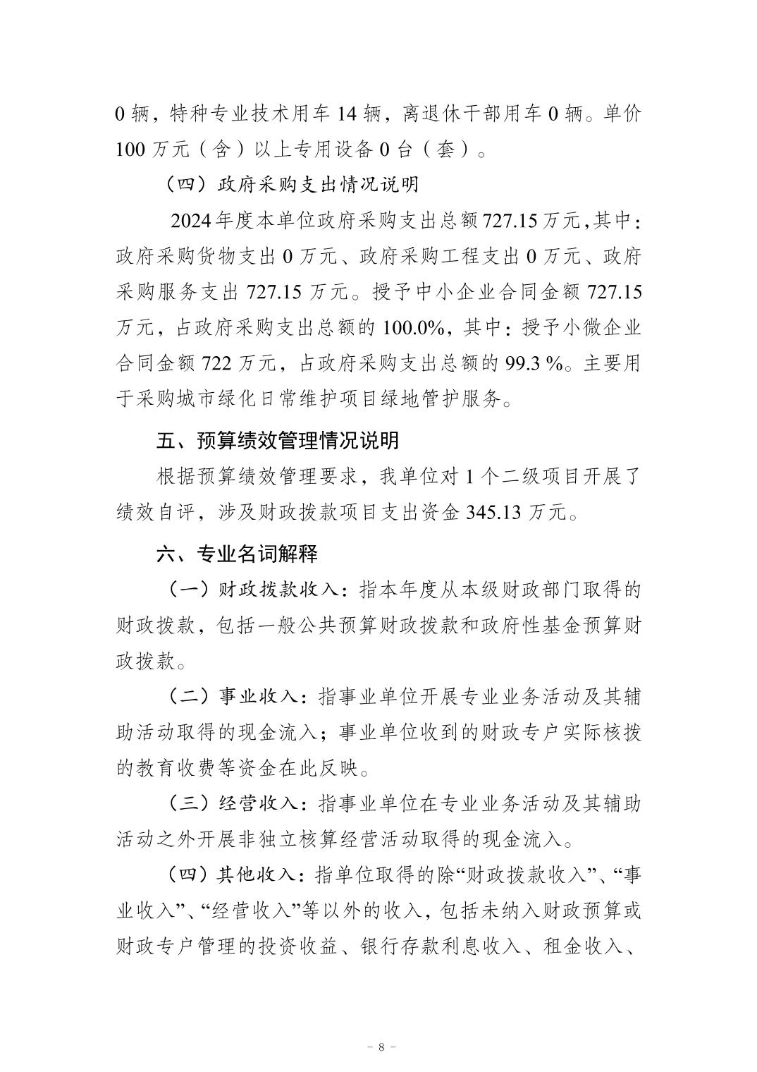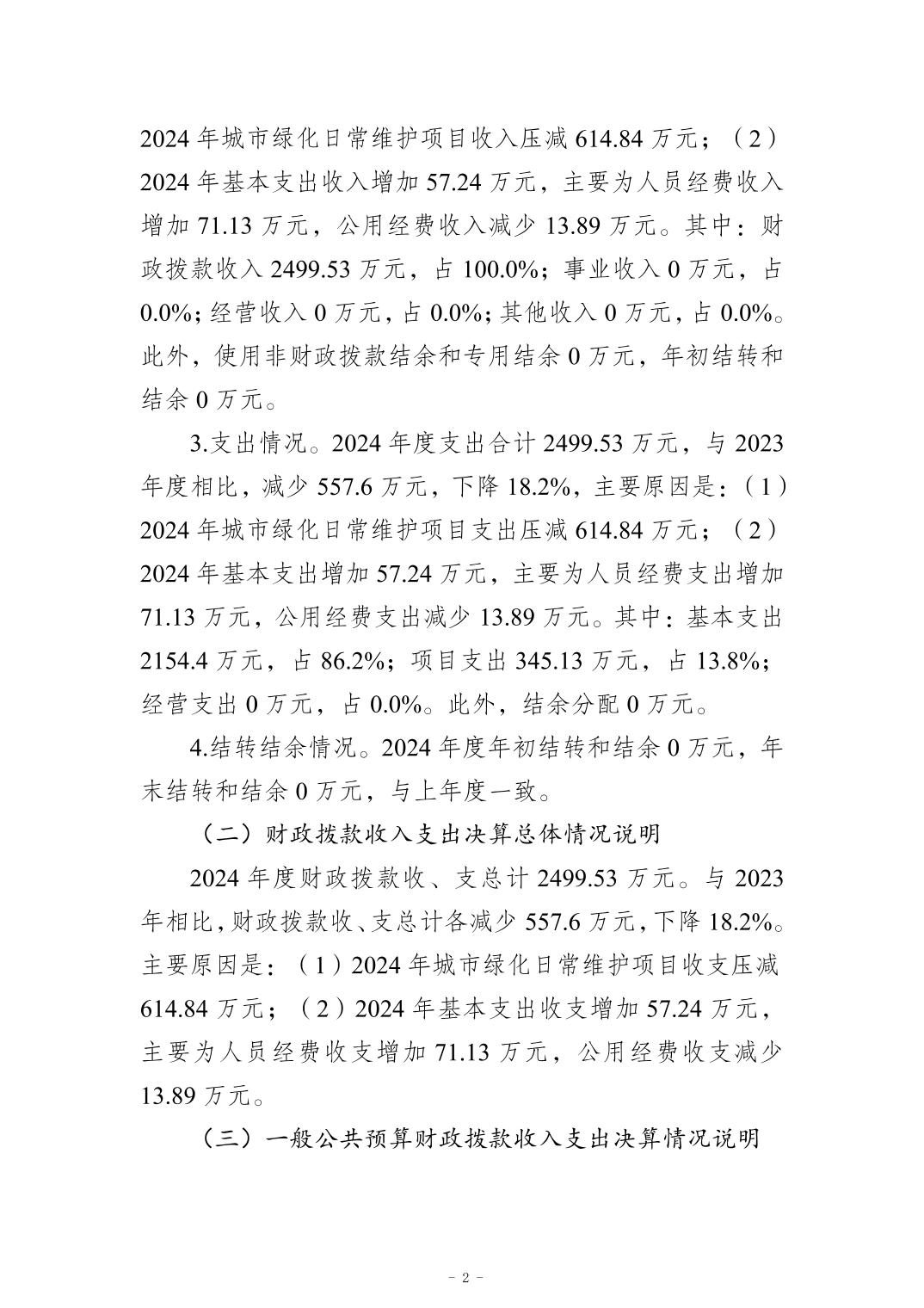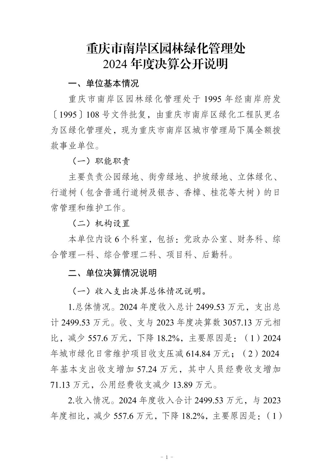 重庆市南岸区园林绿化管理处2024年度决算公开说明