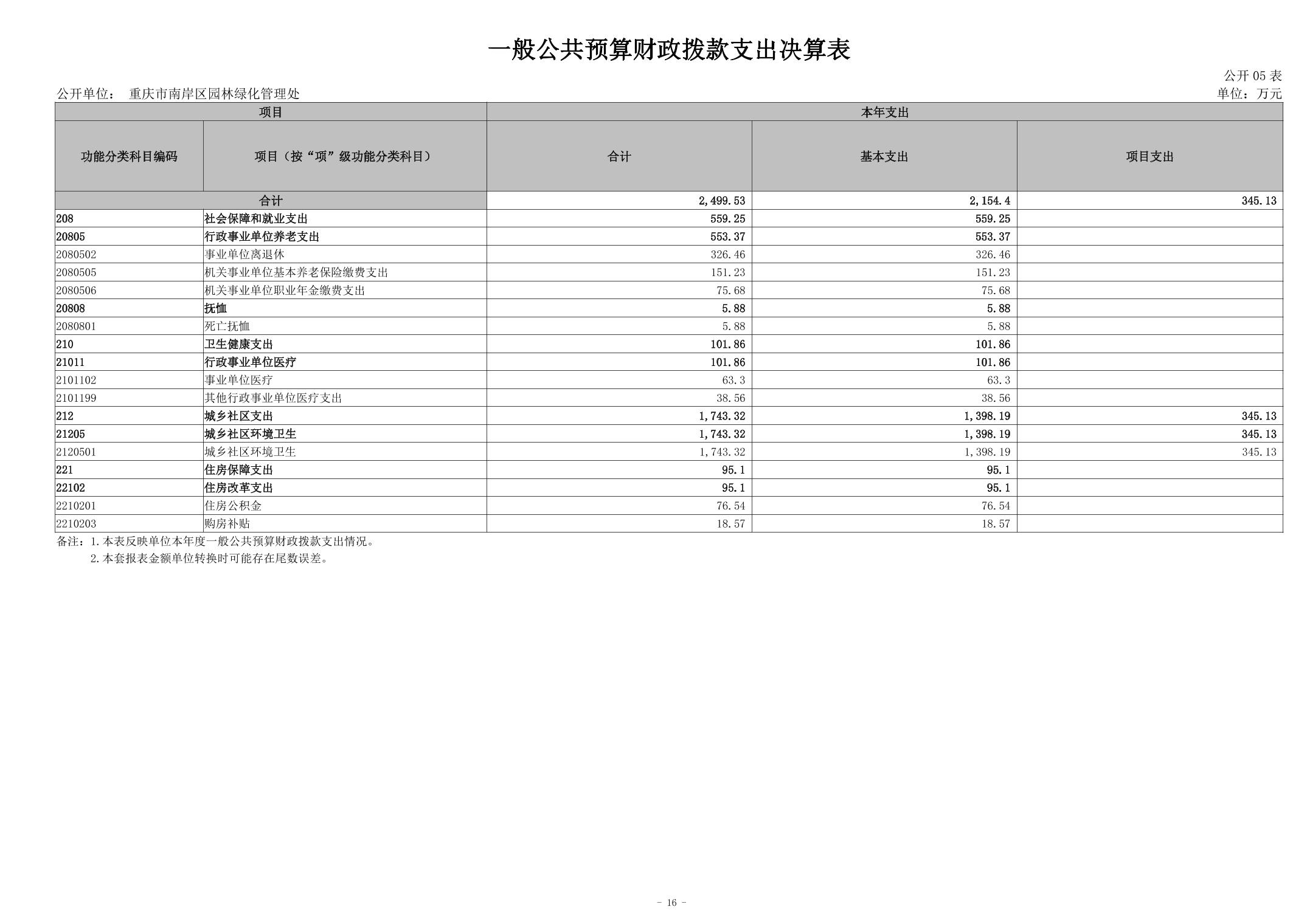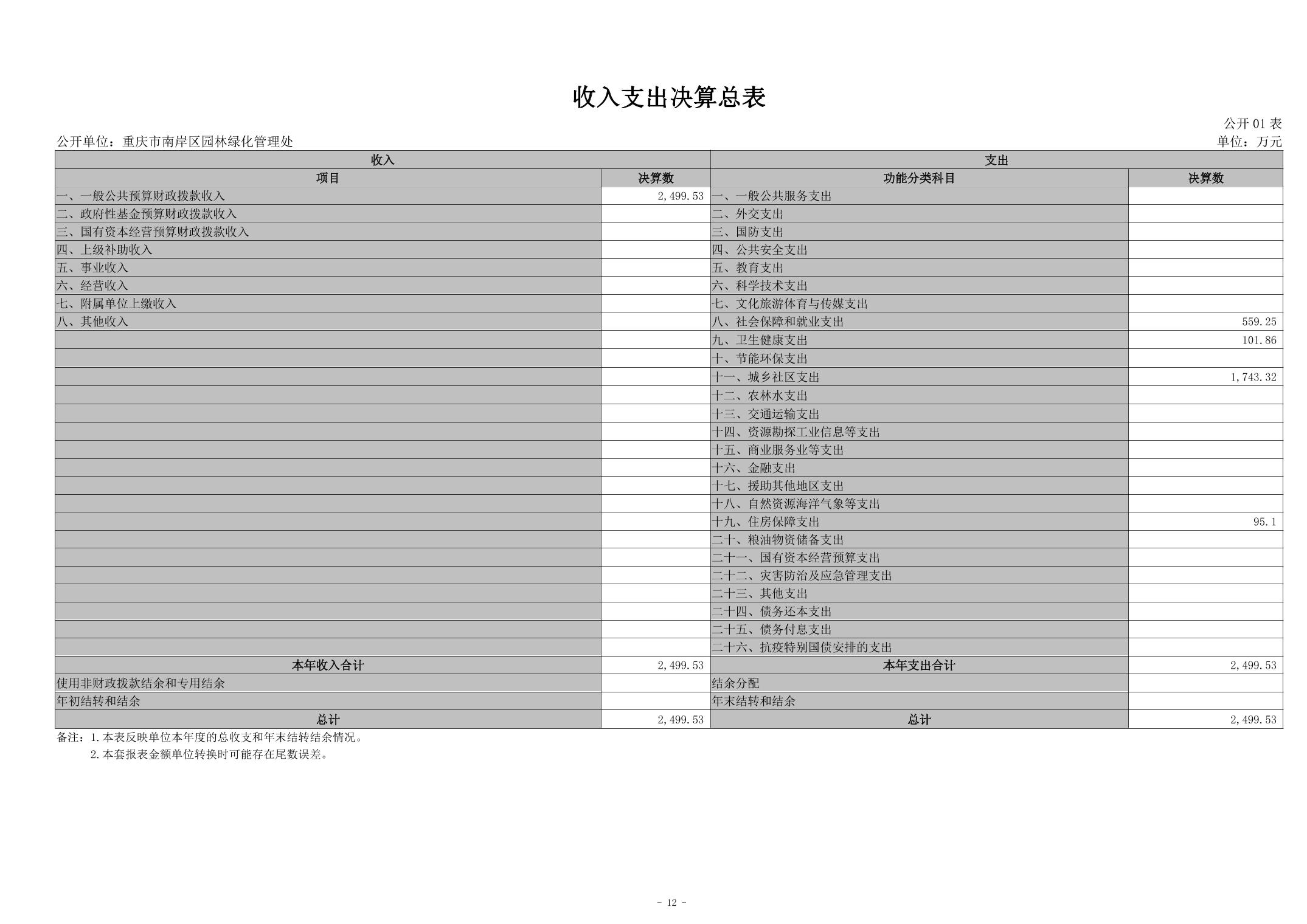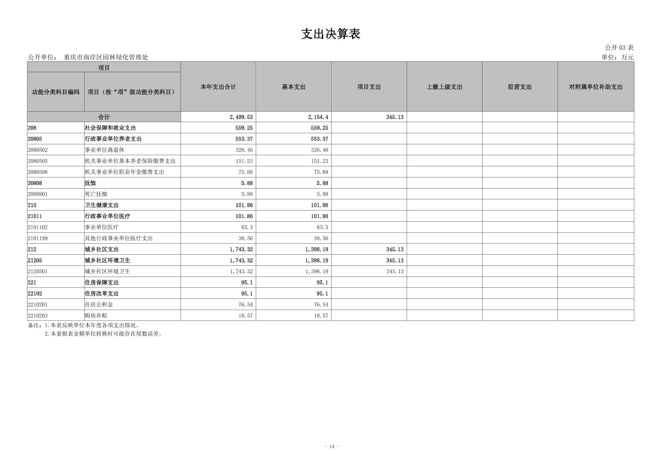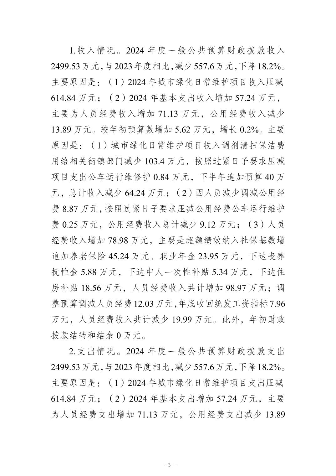 重庆市南岸区园林绿化管理处2024年度决算公开说明