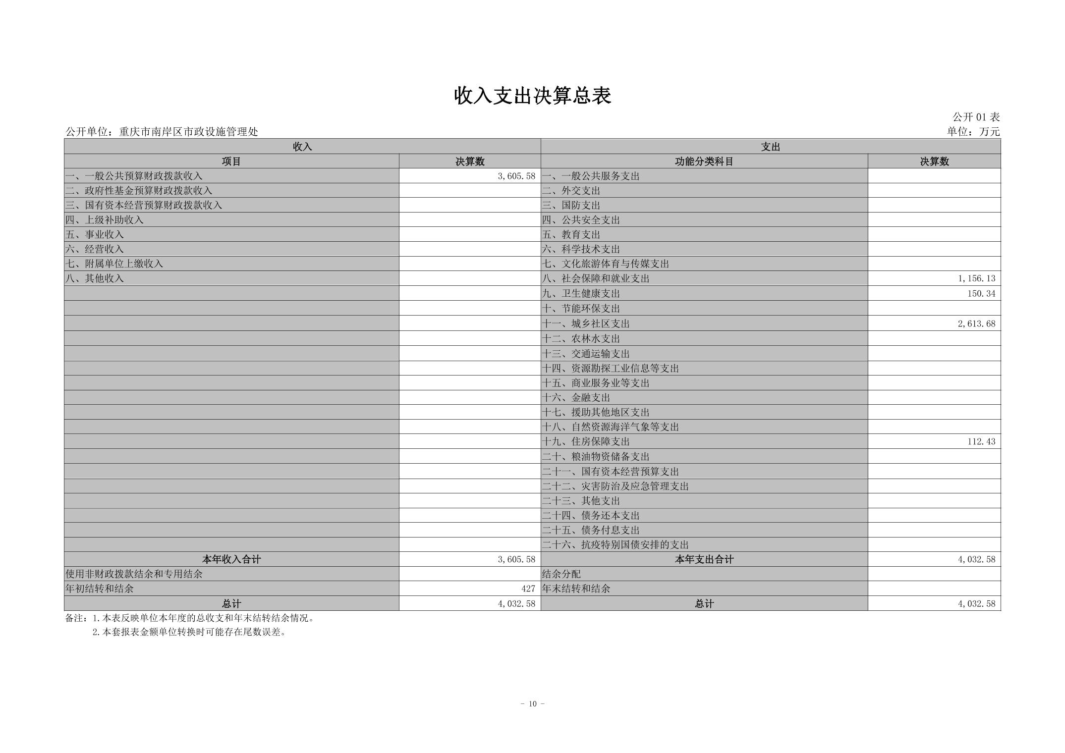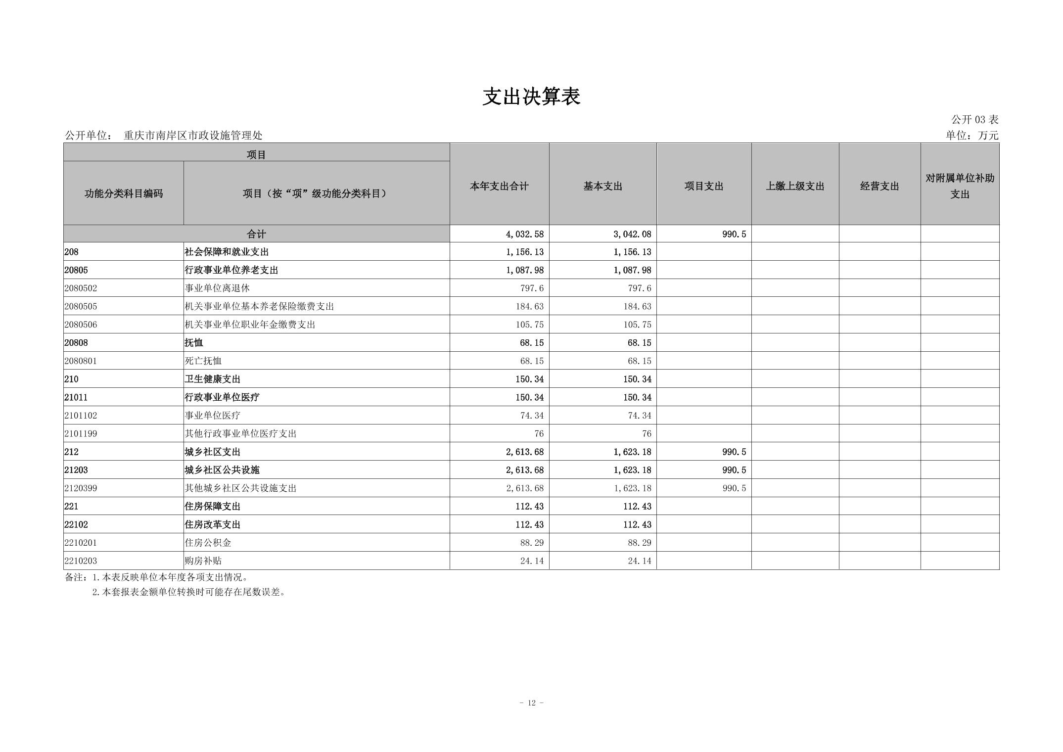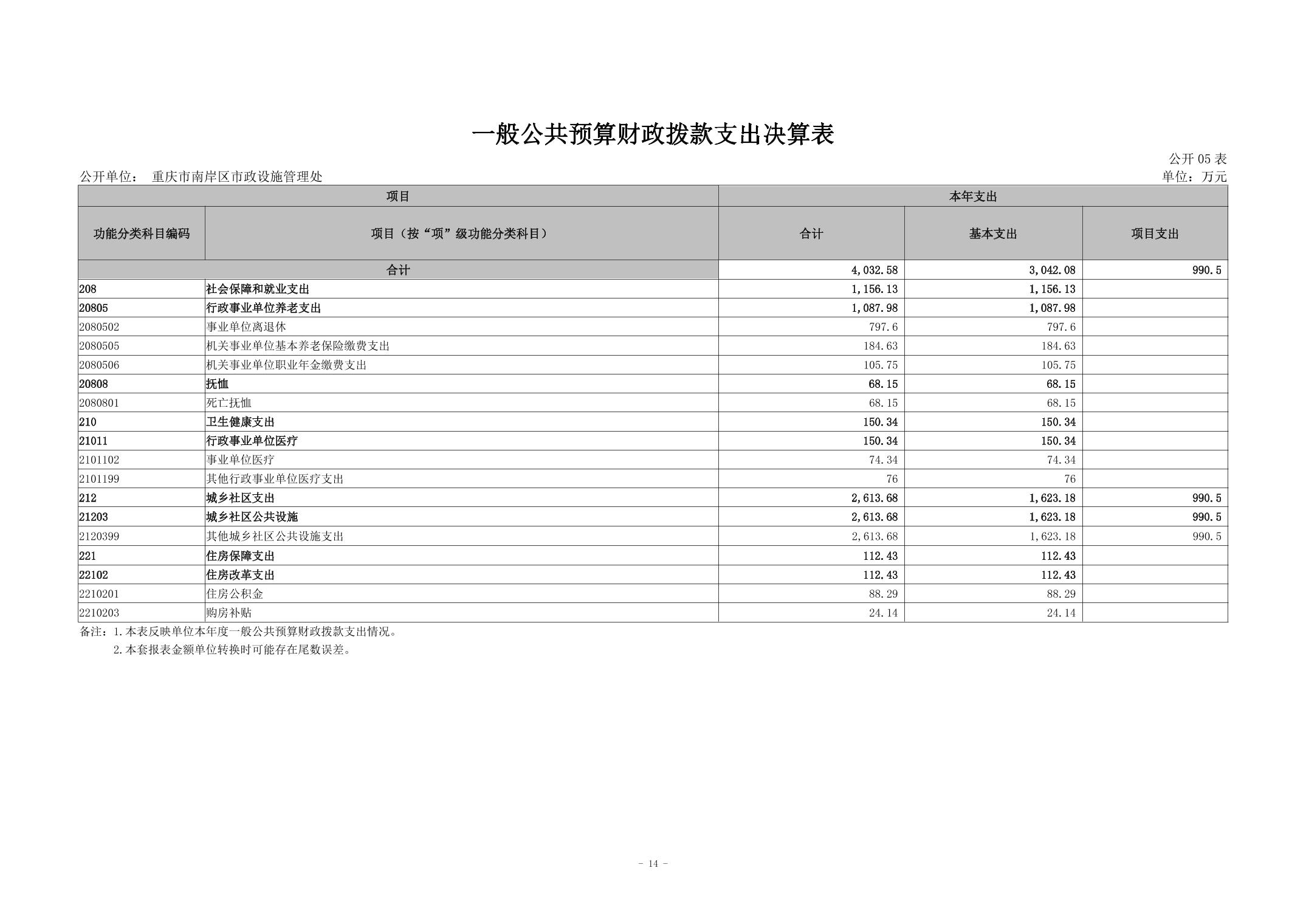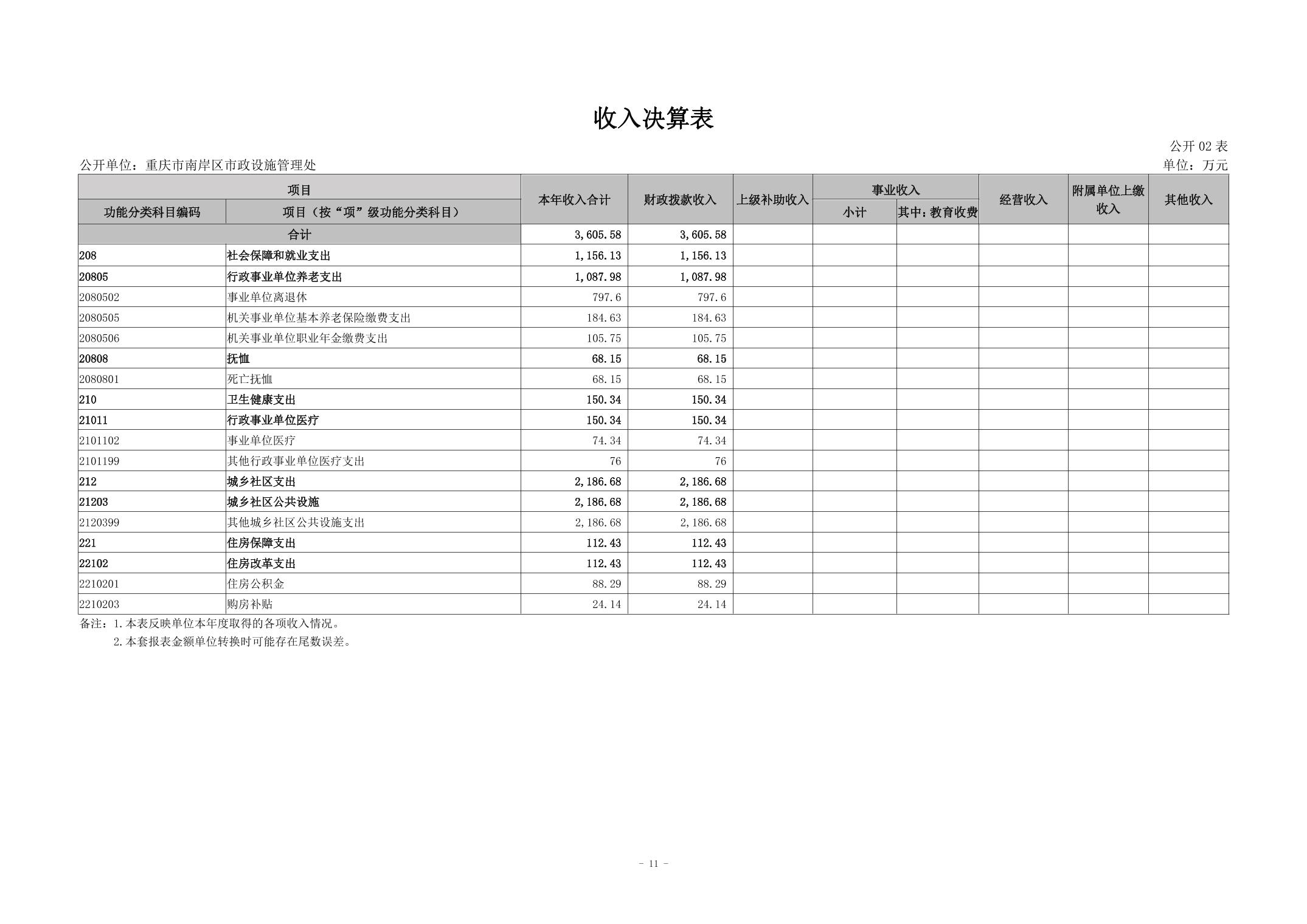 重庆市南岸区市政设施管理处2024年度决算公开说明
