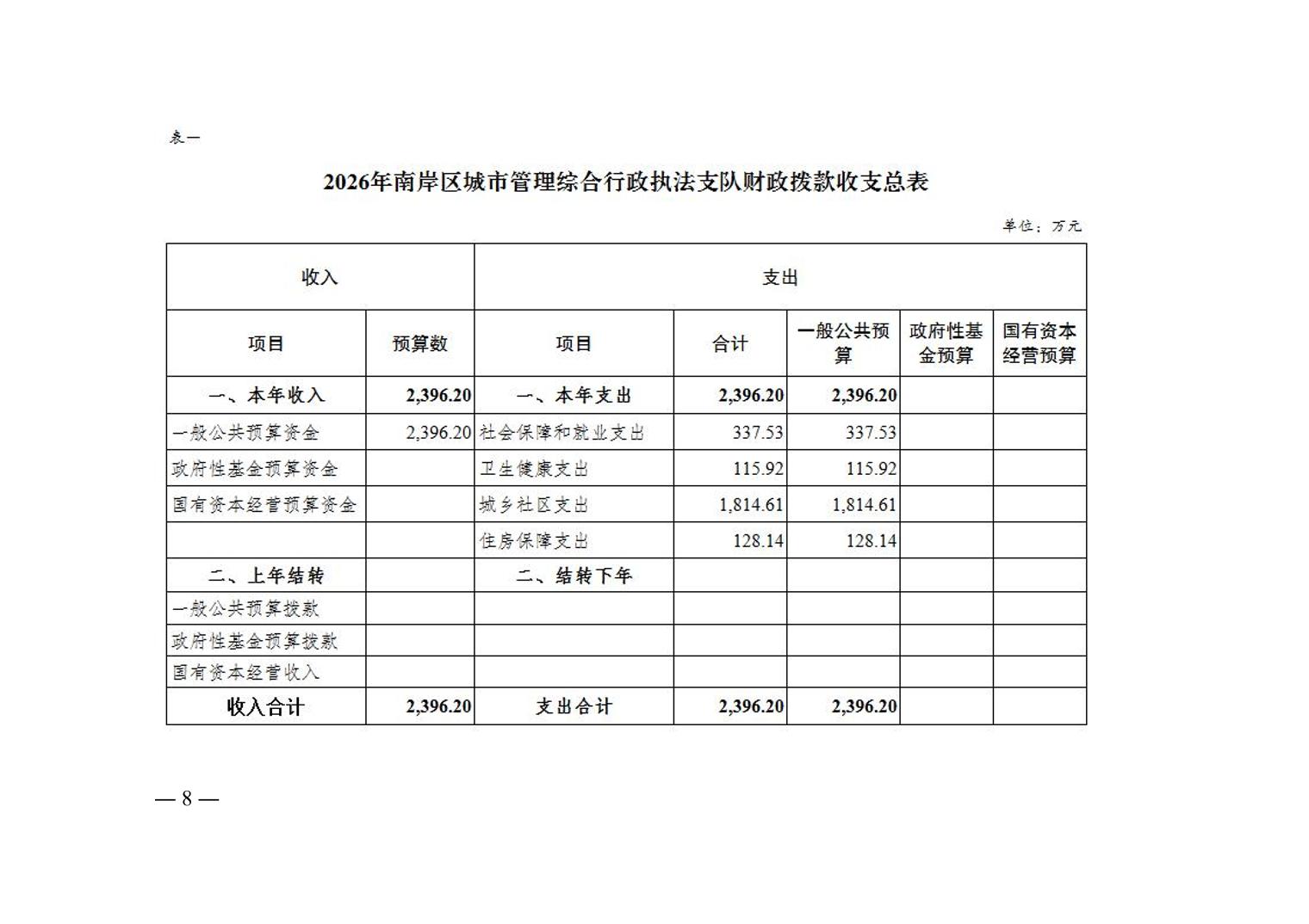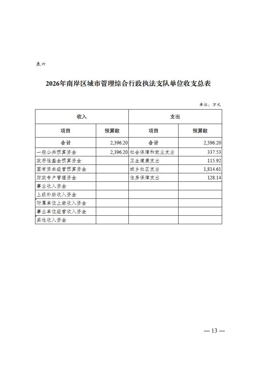 重庆市南岸区城市管理综合行政执法支队2026年单位预算情况说明