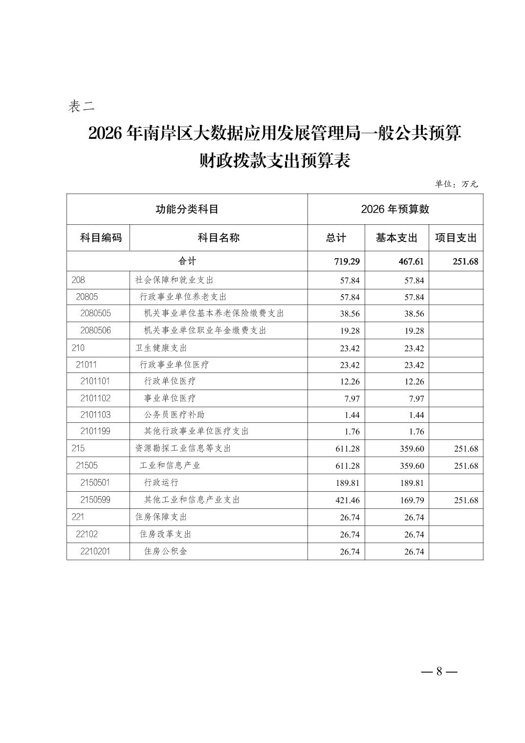 重庆市南岸区大数据应用发展管理局2026年部门预算情况说明