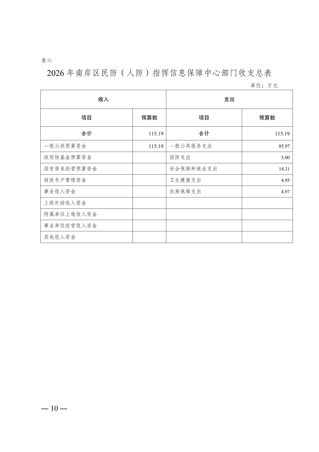 重庆市南岸区民防(人防)指挥信息保障中心 2026 年部门预算情