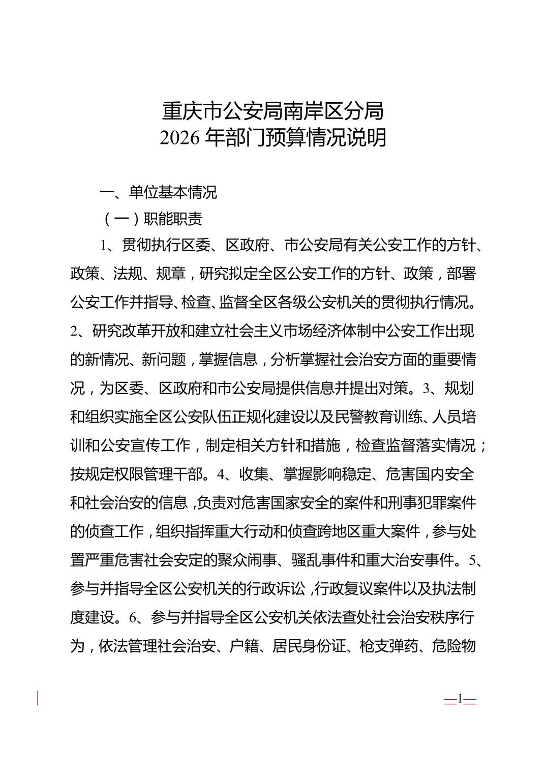 重庆市公安局南岸区分局2026年部门预算情况说明