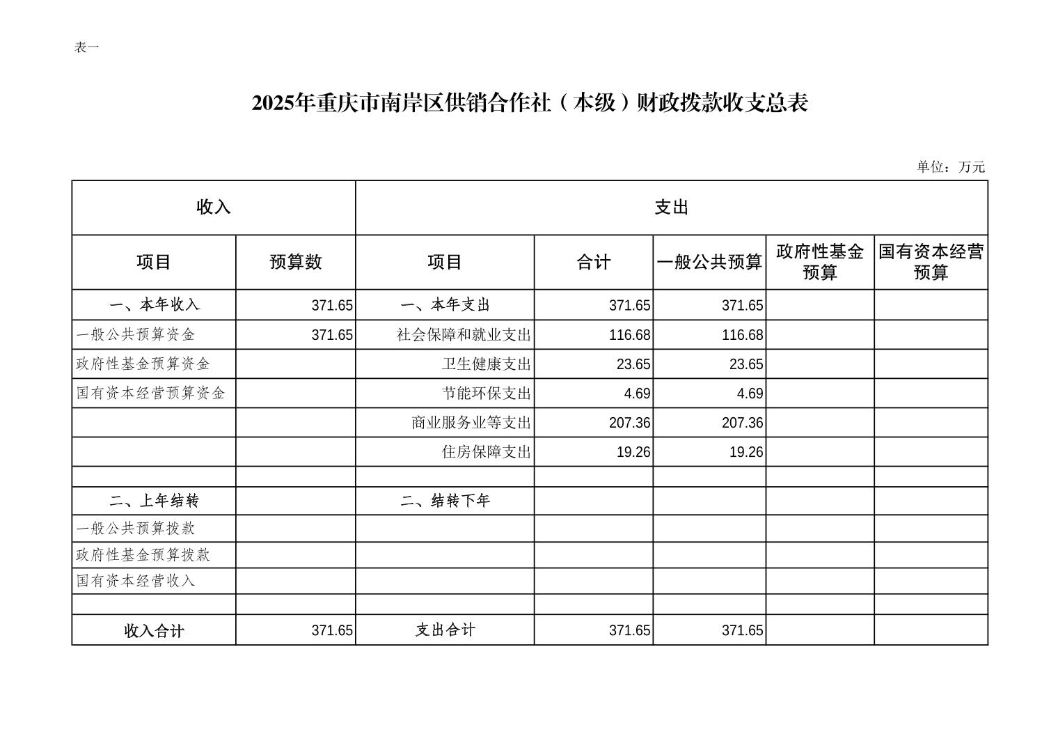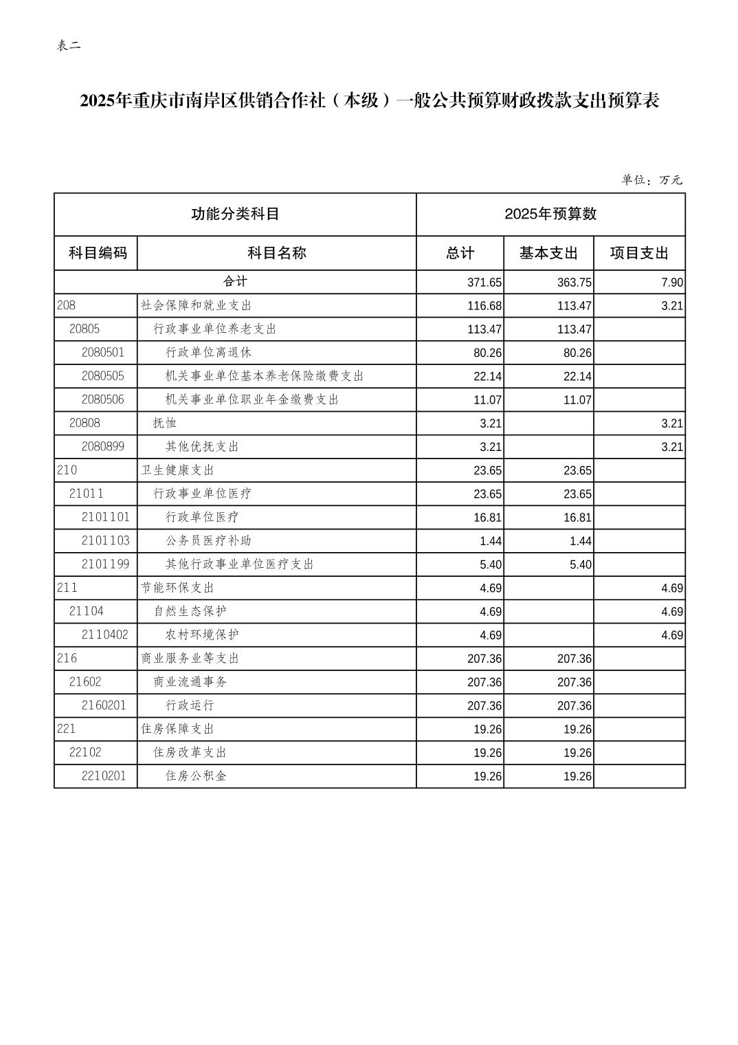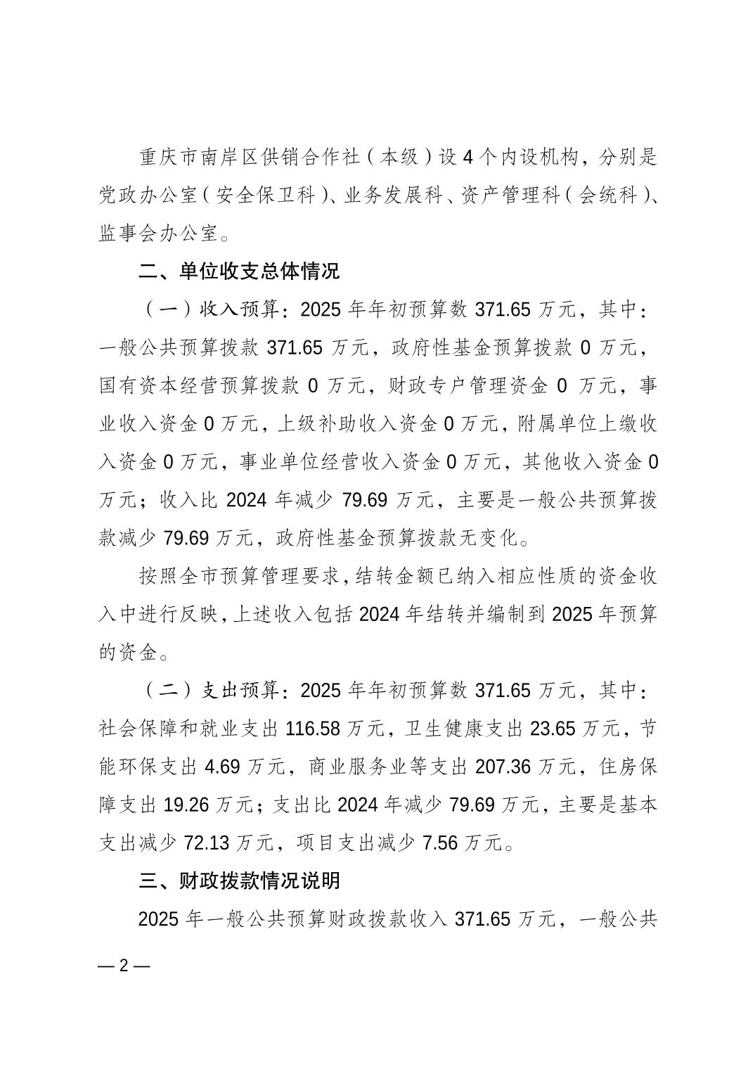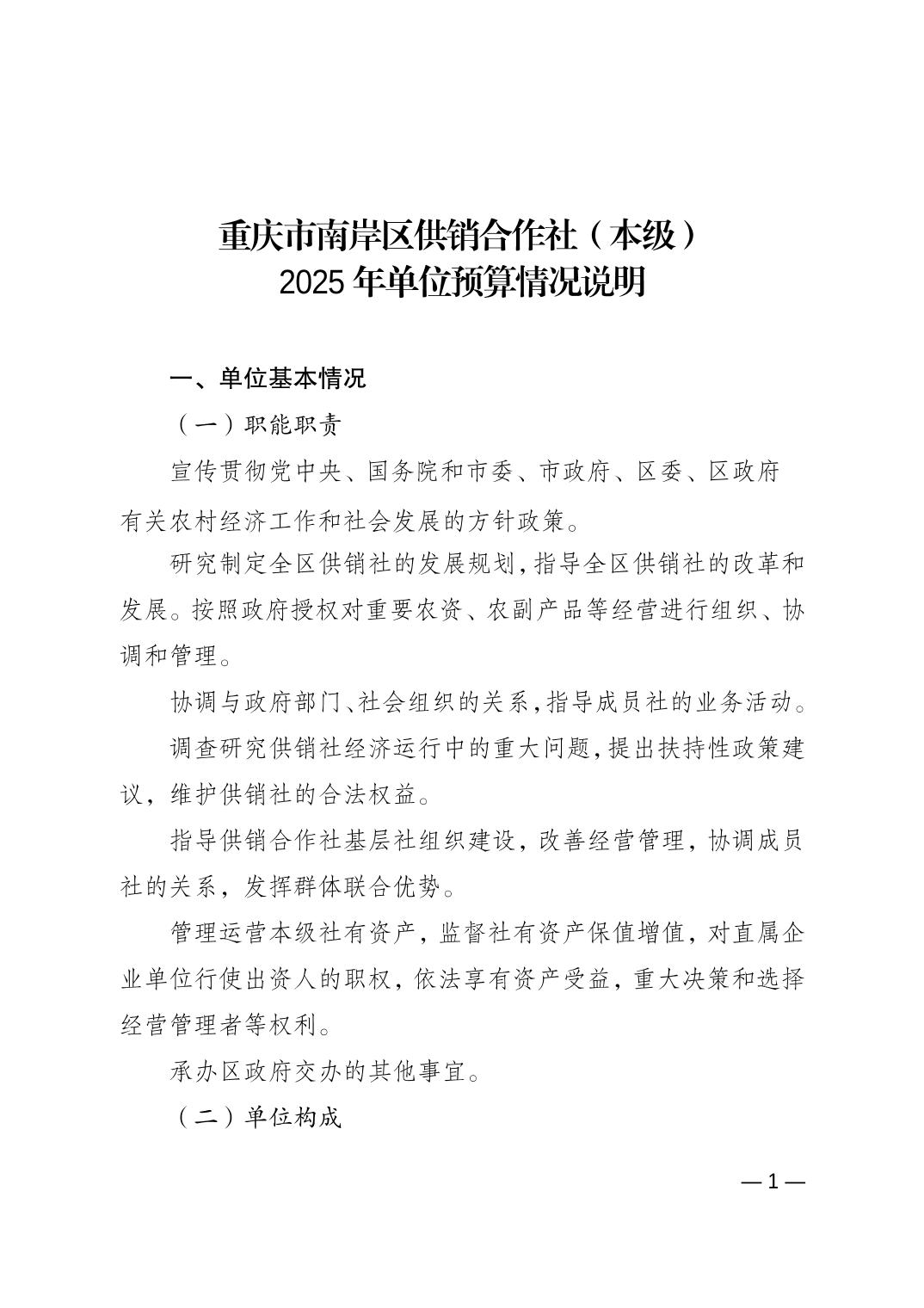 重庆市南岸区供销合作社(本级)2025年单位预算情况说明