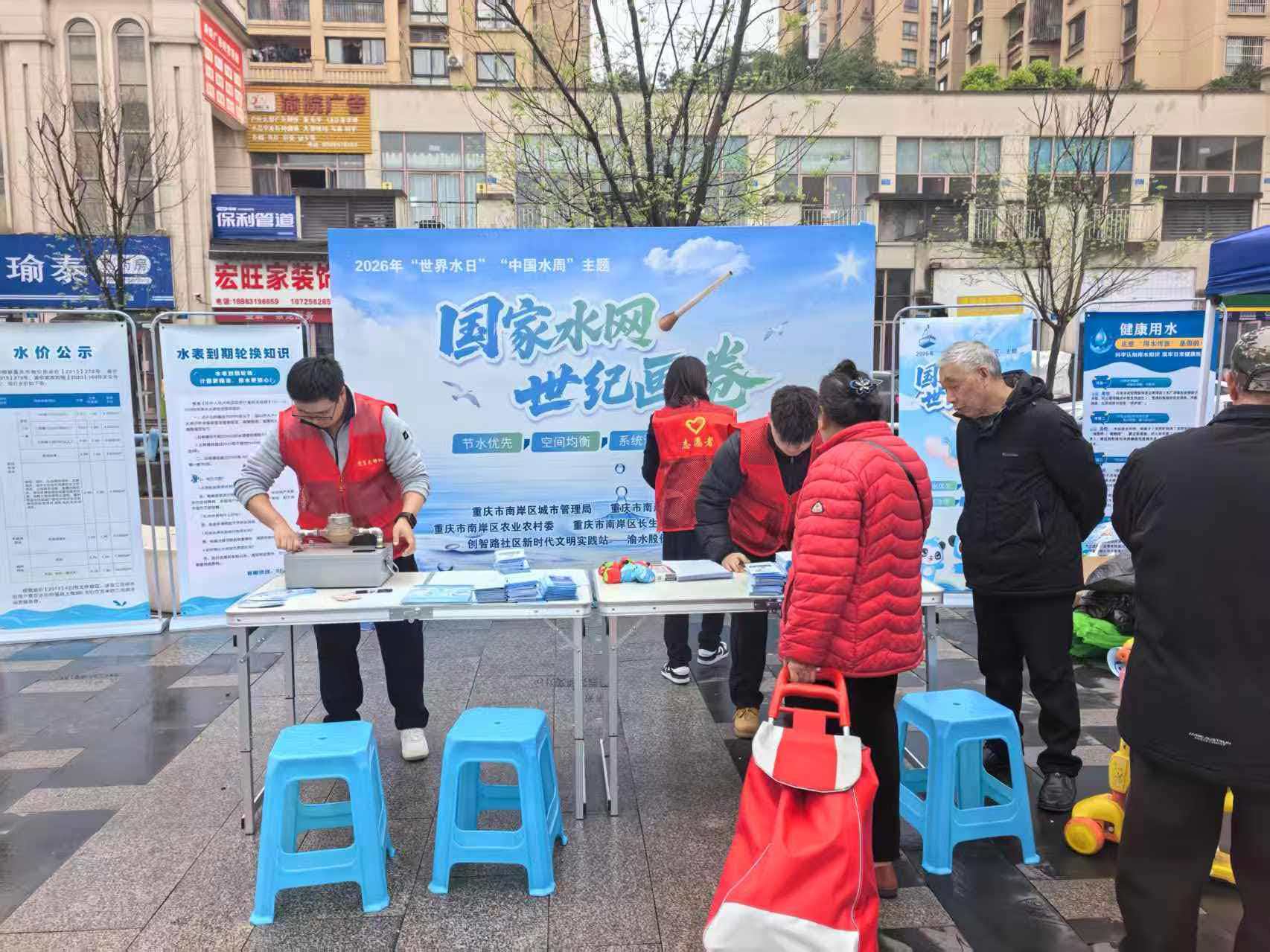 2026年“世界水日”“中国水周”期间,区机关事务局联合多部门走进长生桥镇创智路社区,开展以“国家水网世纪画卷”为主题的集中宣传活动。