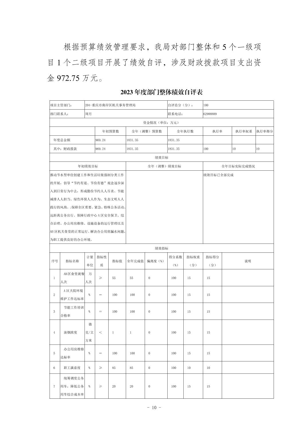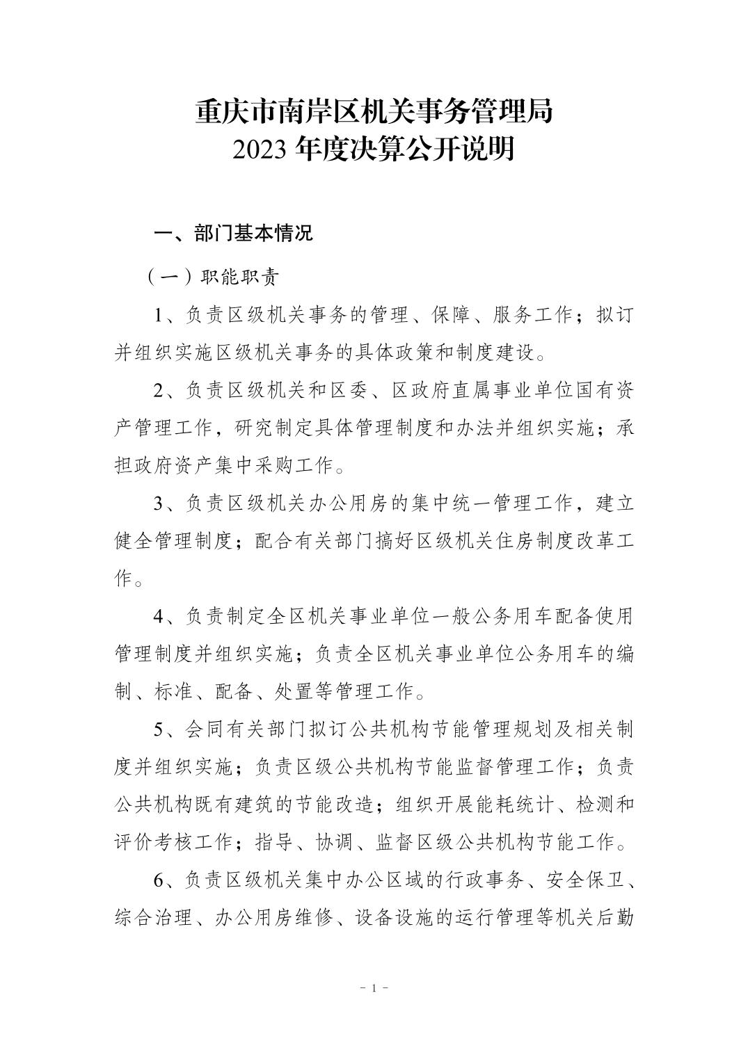 重庆市南岸区机关事务管理局2023年度决算公开说明