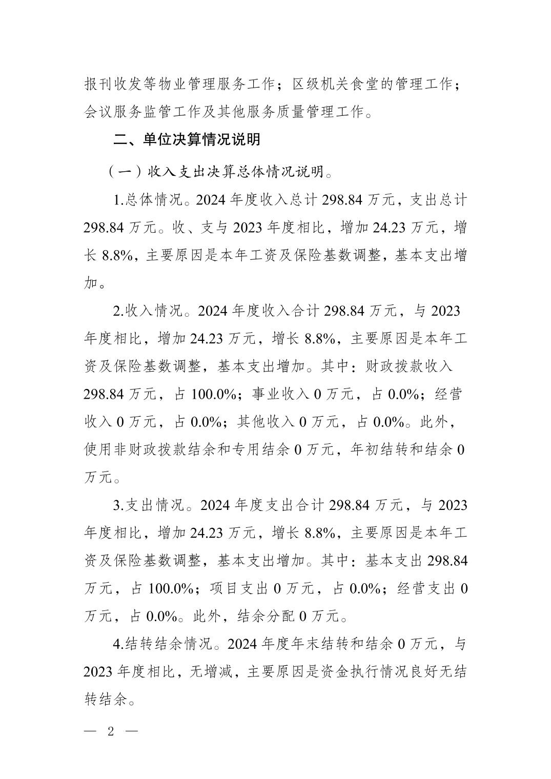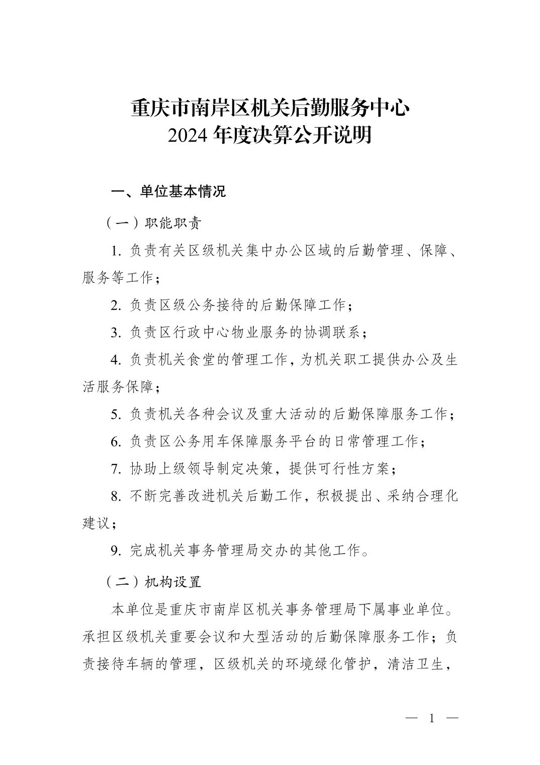 重庆市南岸区机关后勤服务中心2024年度决算公开说明