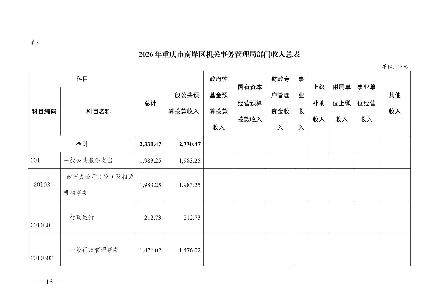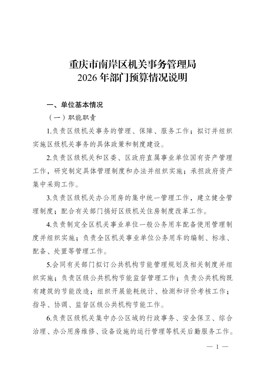 重庆市南岸区机关事务管理局2026年部门预算情况说明
