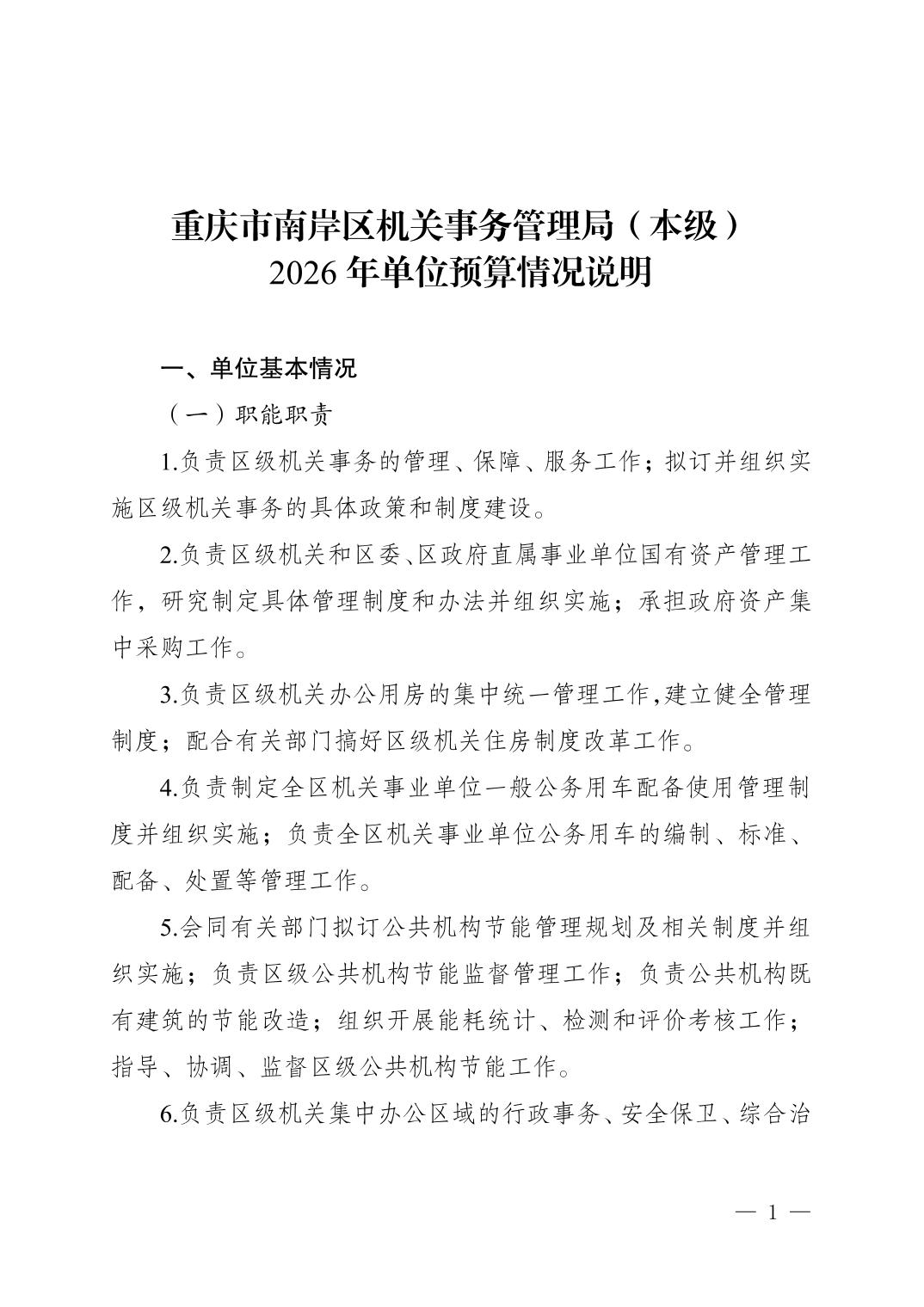 重庆市南岸区机关事务管理局(本级)2026年单位预算情况说明