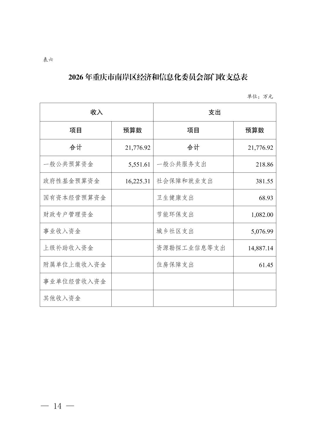 重庆市南岸区经济和信息化委员会2026年部门预算情况说明