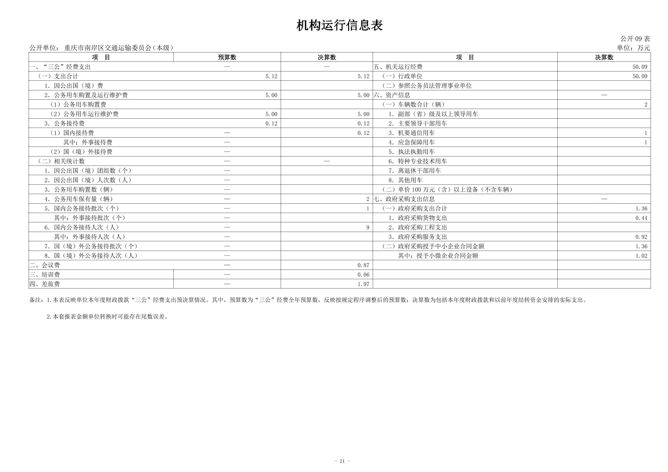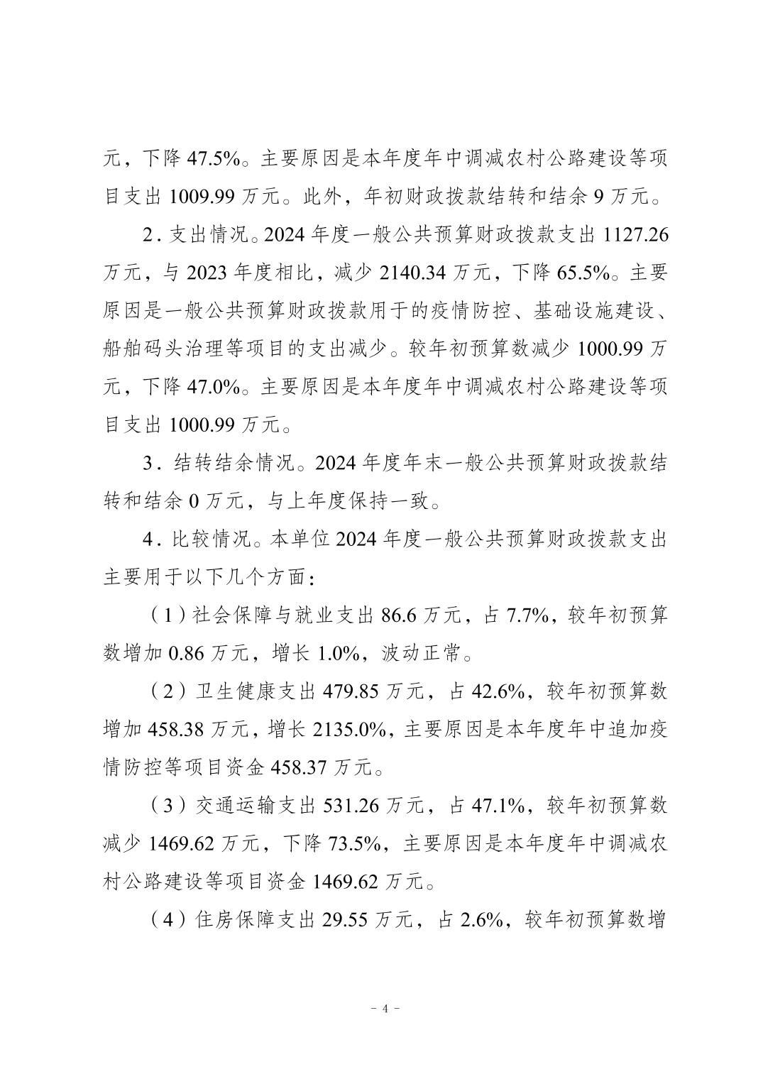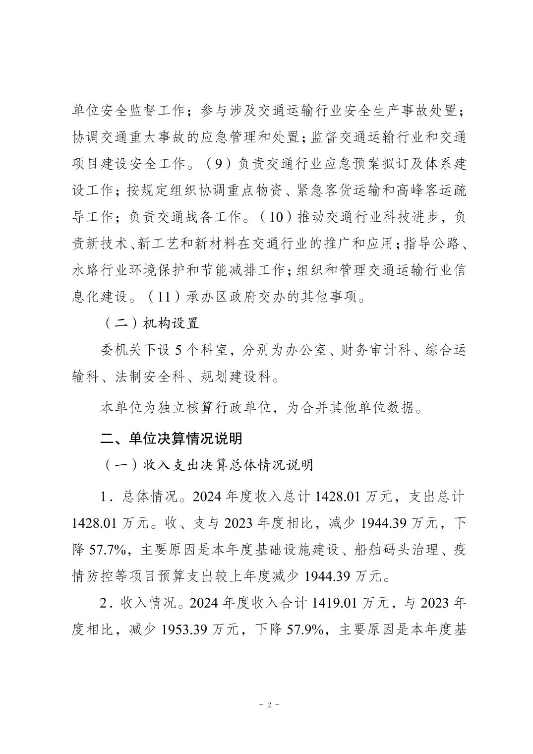 重庆市南岸区交通运输委员会(本级)2024年度单位决算情况说明