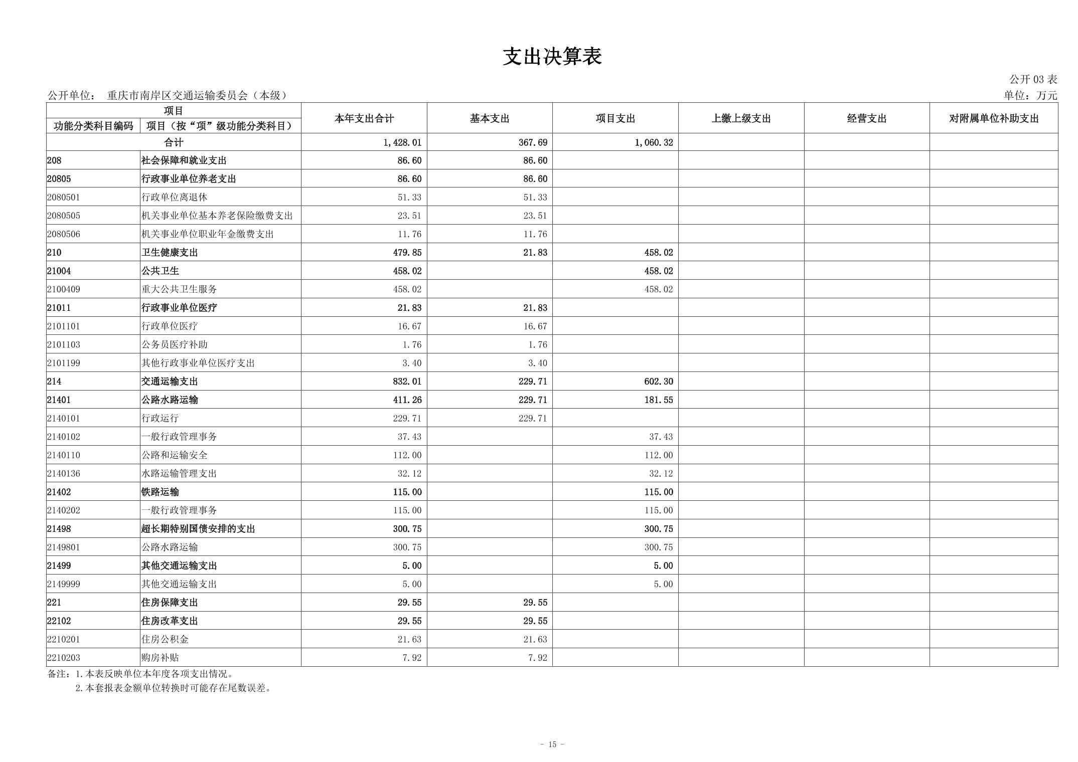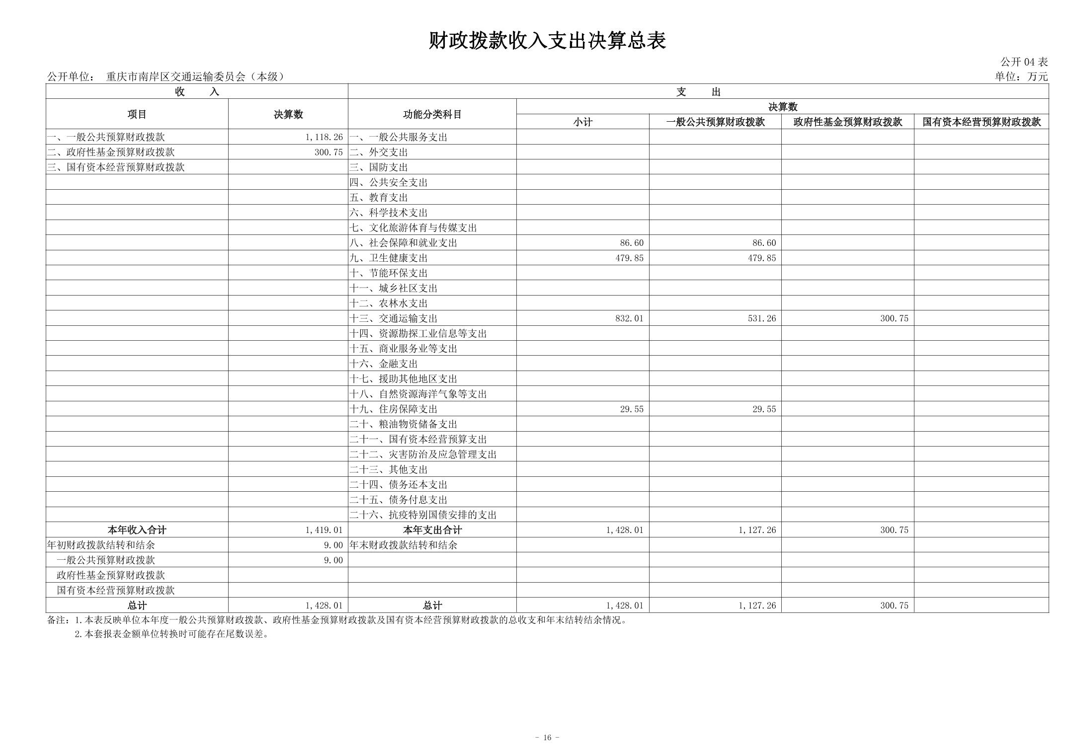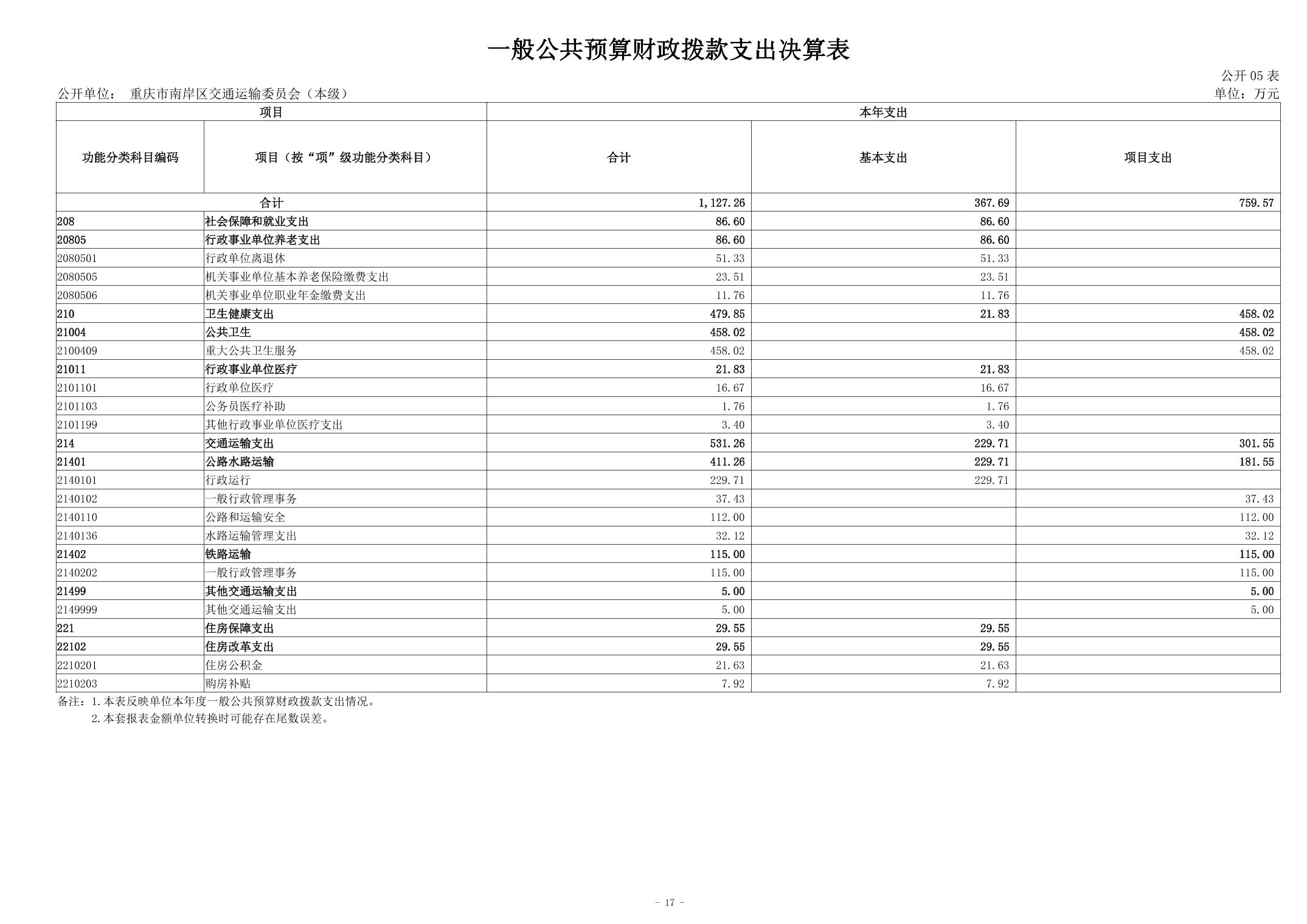 区交通运输委>政务公开>法定主动公开内容>预算/决算>财政决算