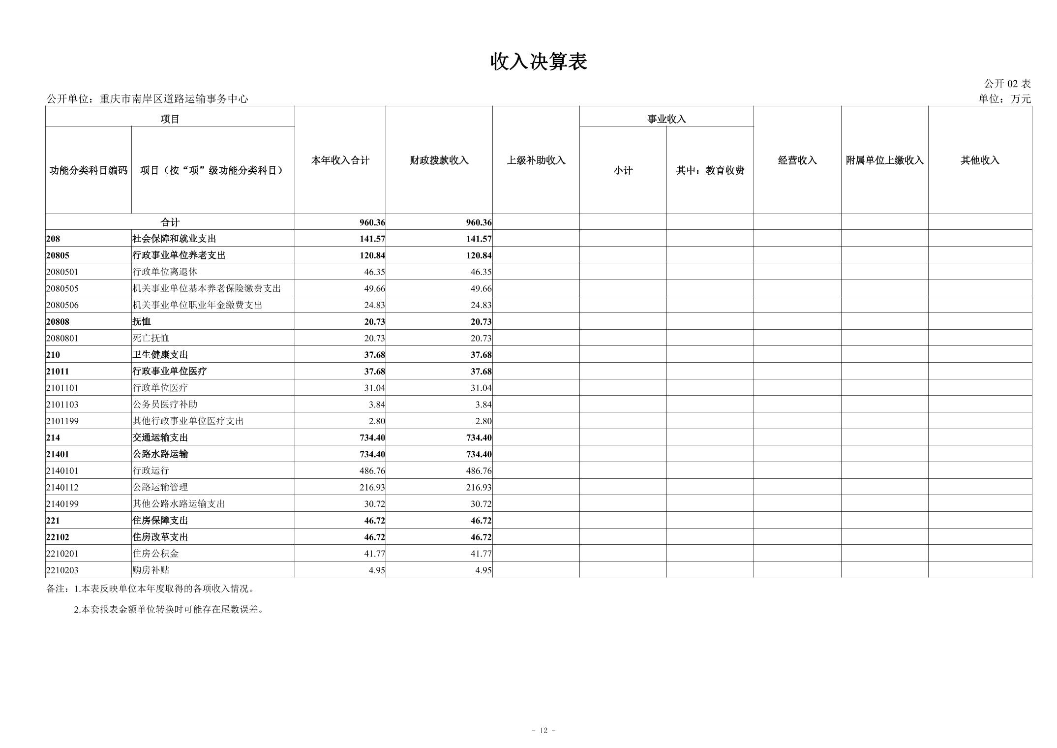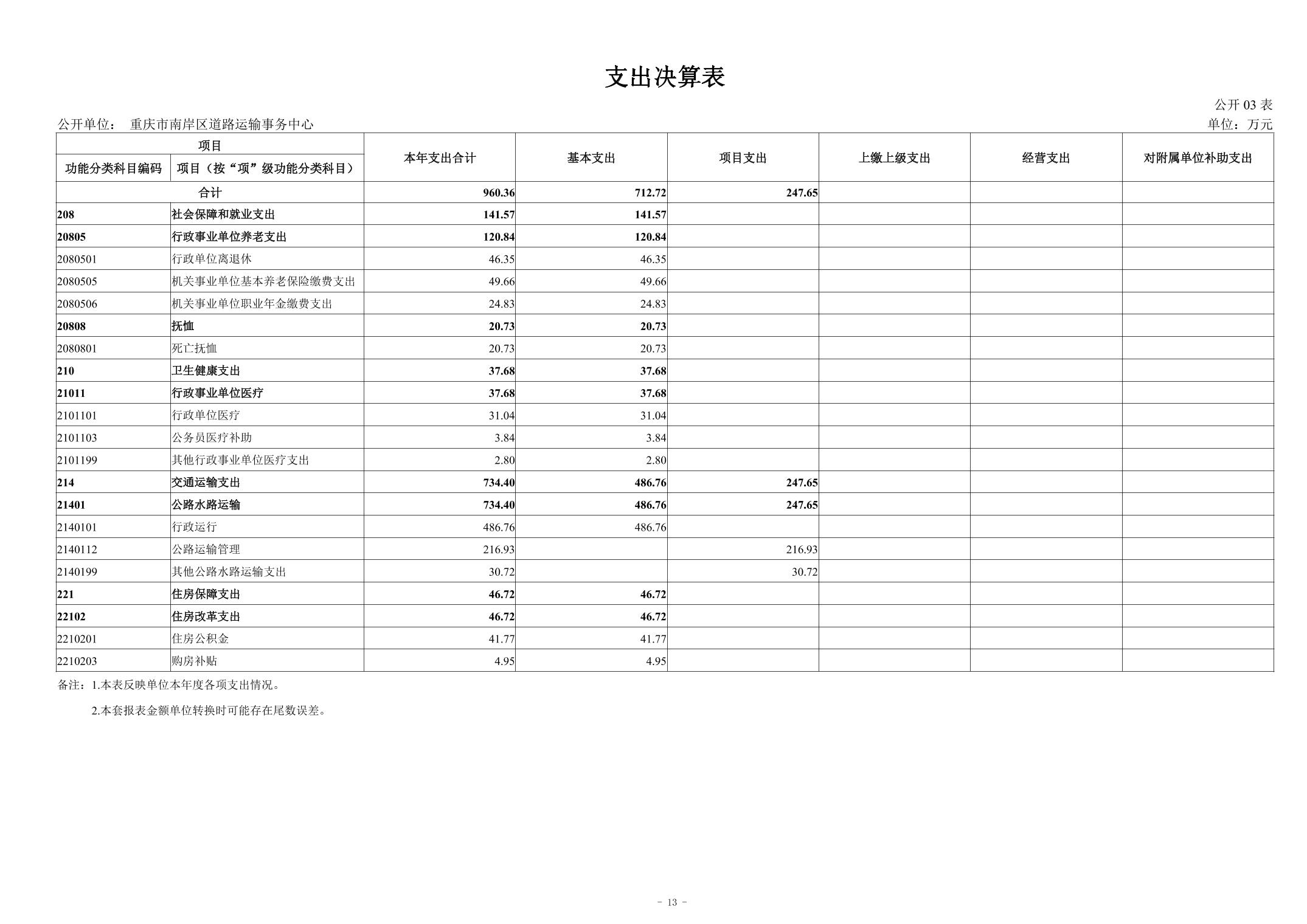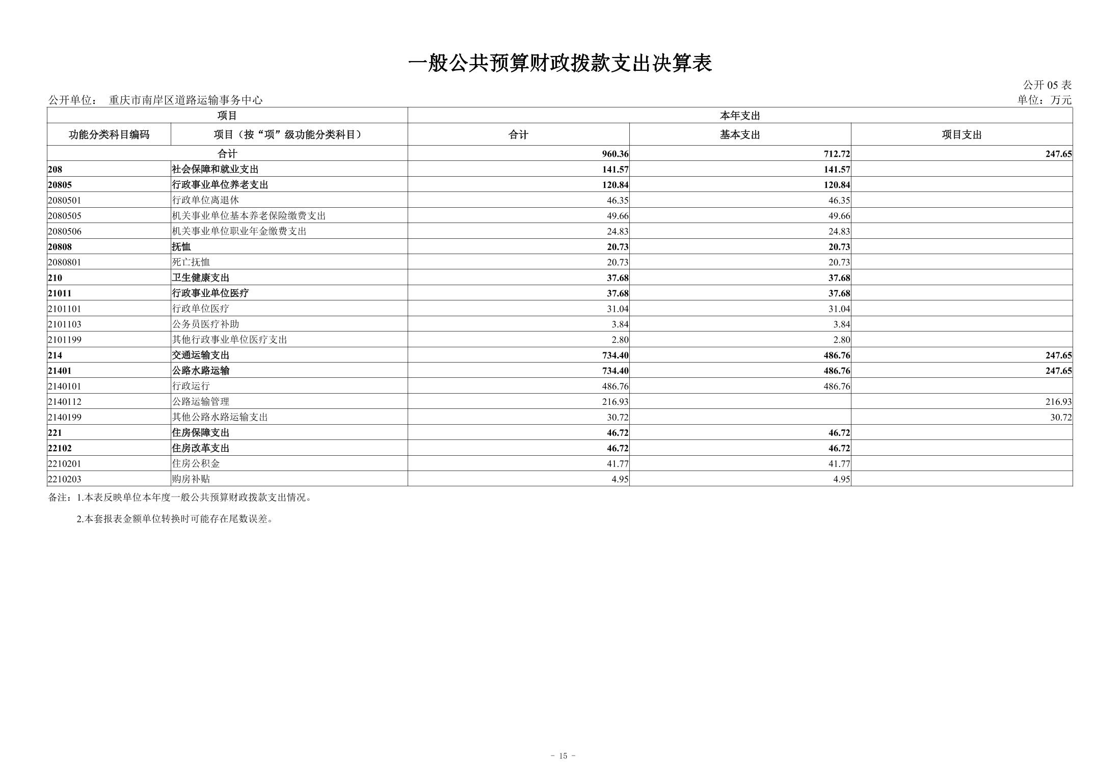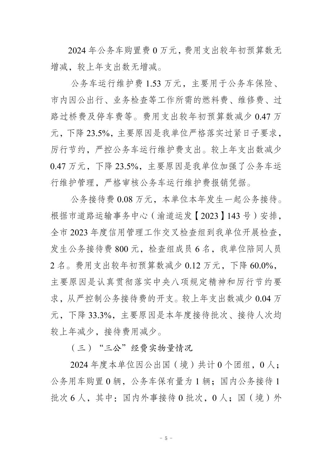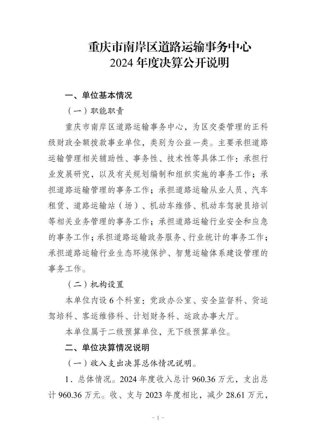 重庆市南岸区道路运输事务中心2024年度单位决算情况说明