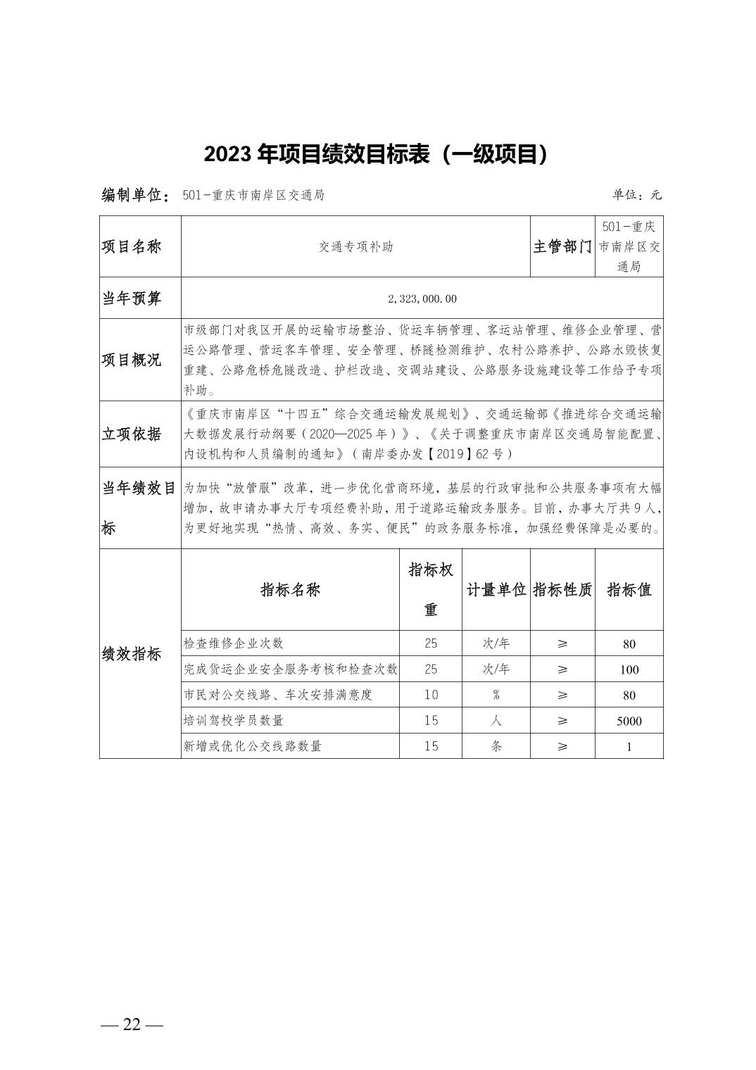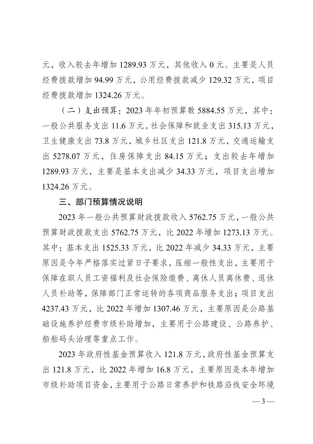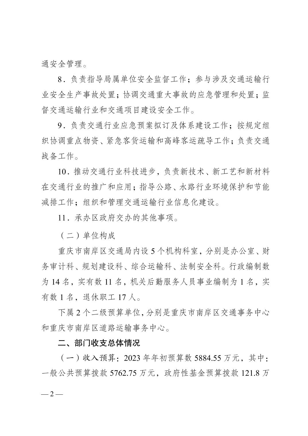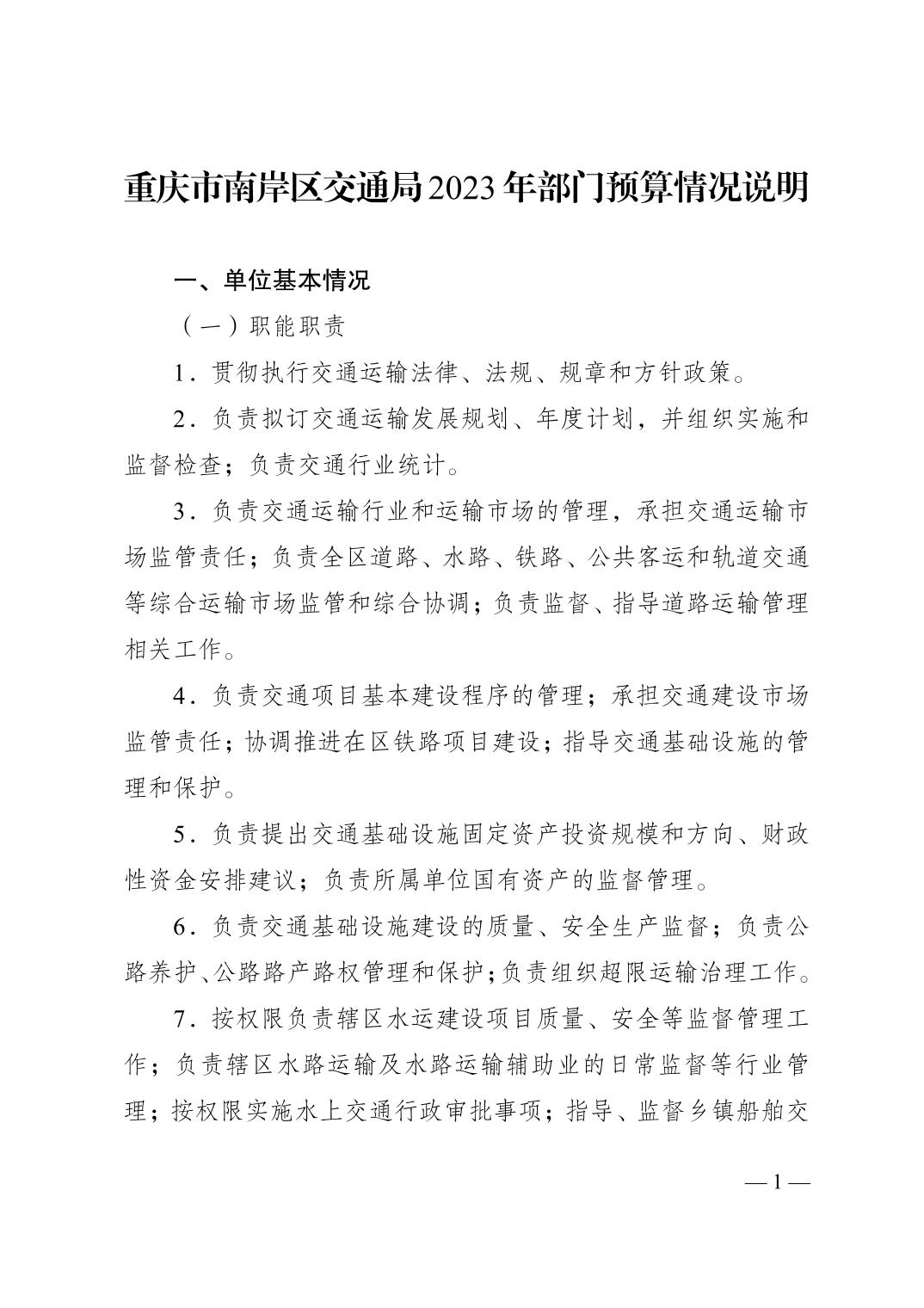 重庆市南岸区交通局2023年部门预算情况说明