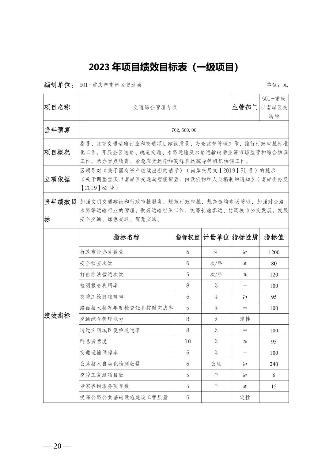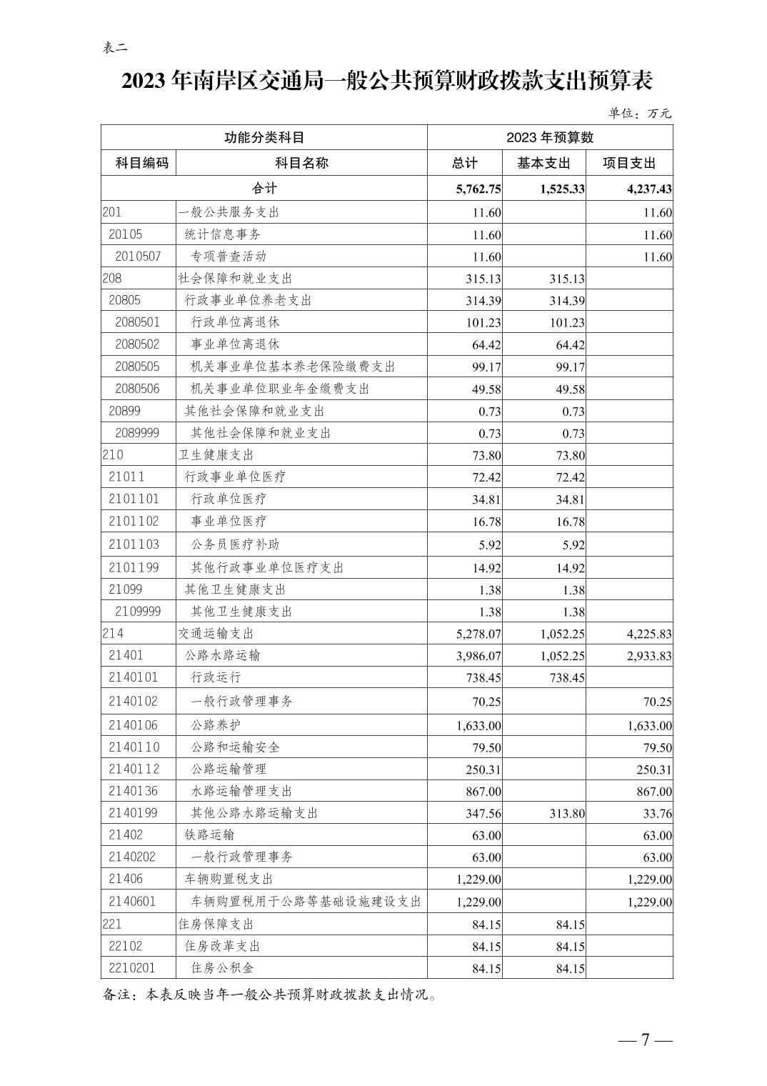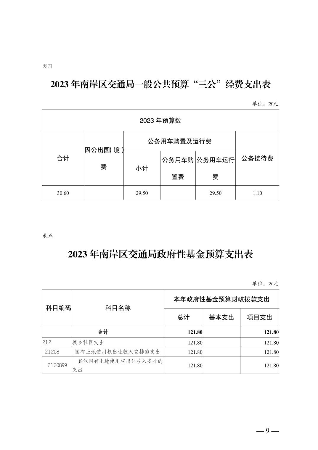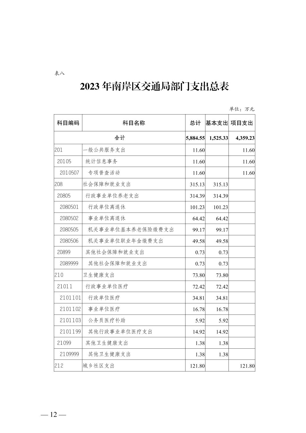 重庆市南岸区交通局2023年部门预算情况说明