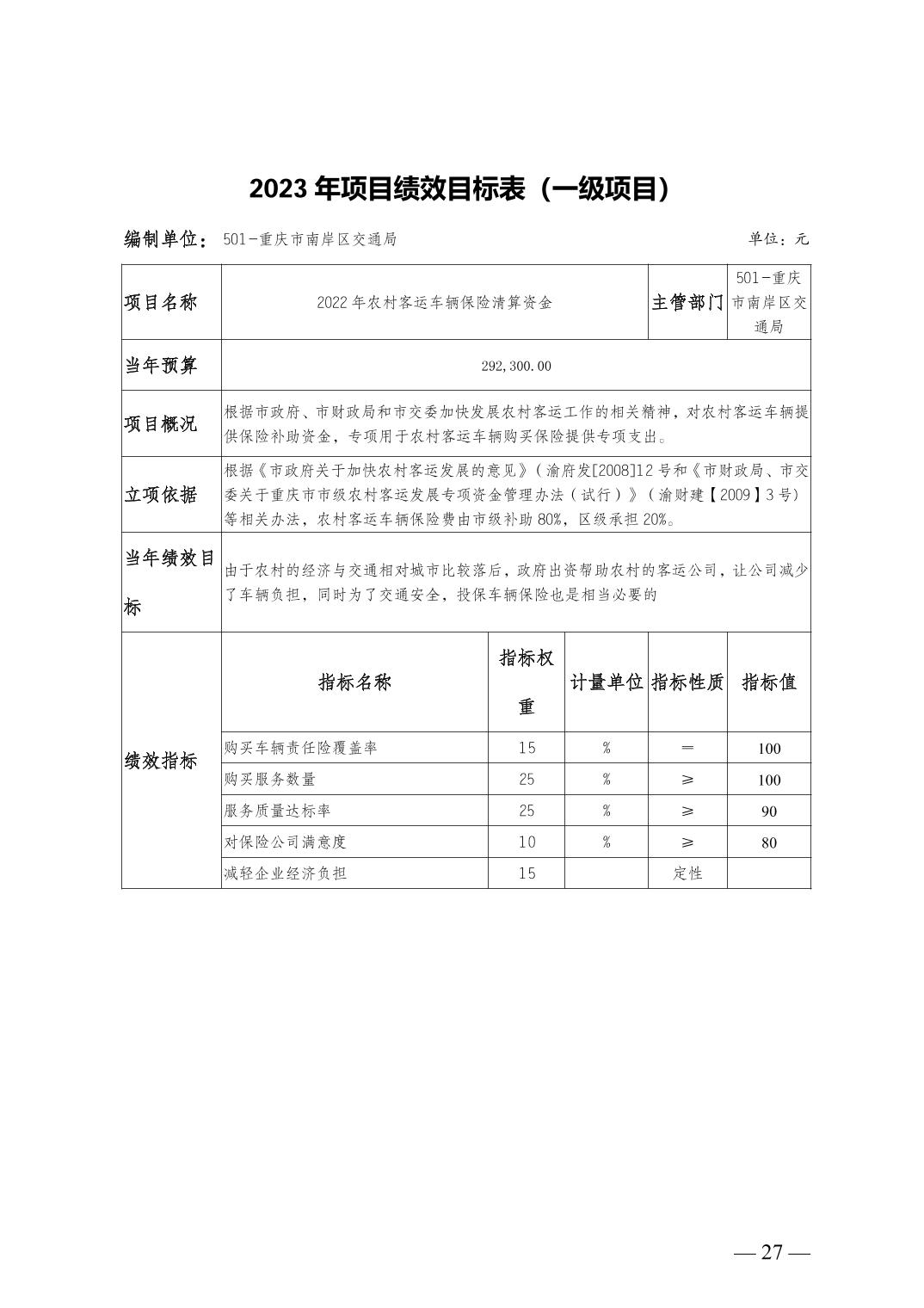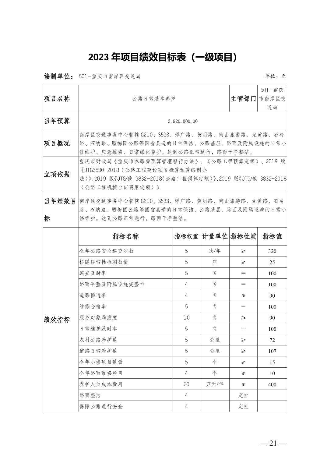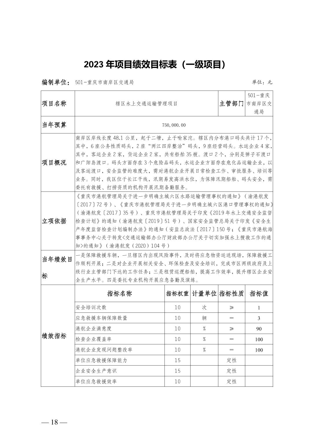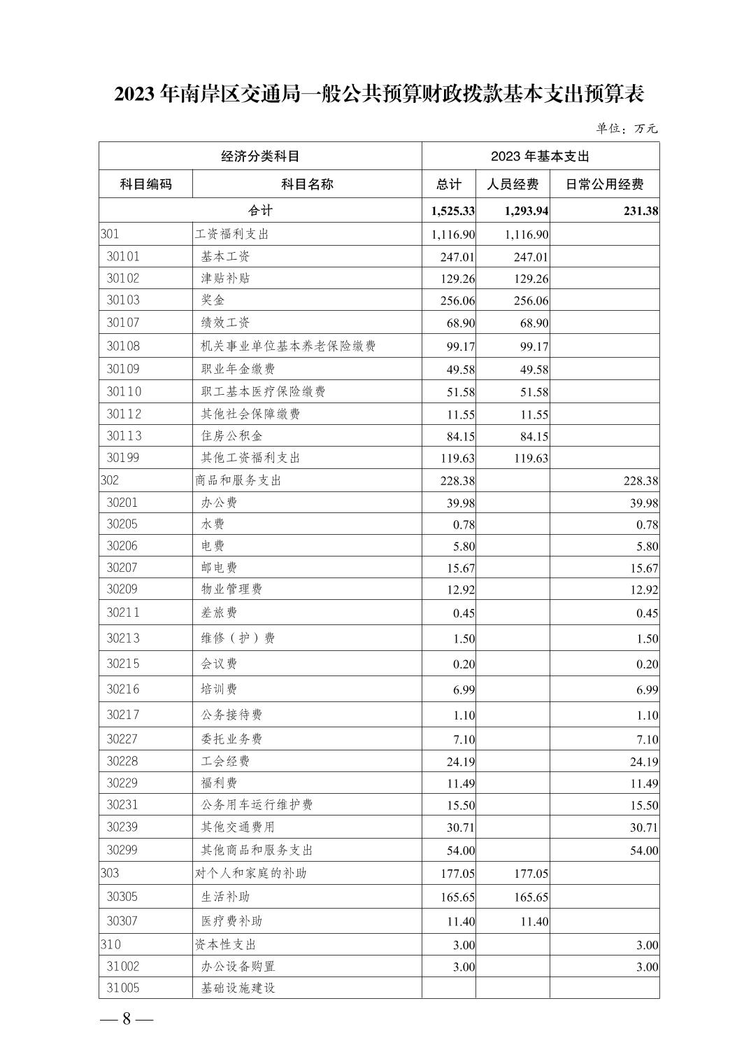 重庆市南岸区交通局2023年部门预算情况说明