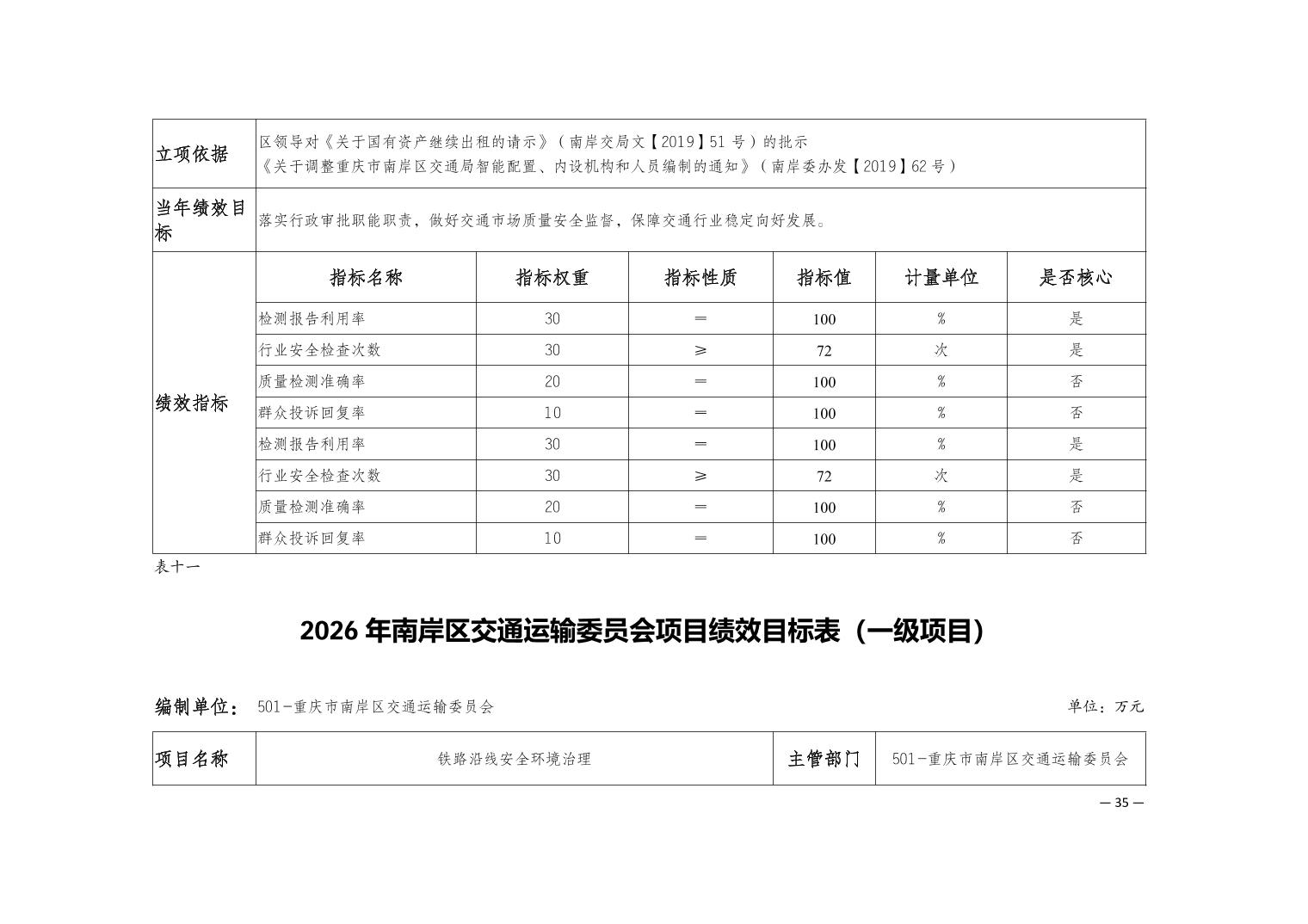 重庆市南岸区交通运输委员会2026年部门预算情况说明