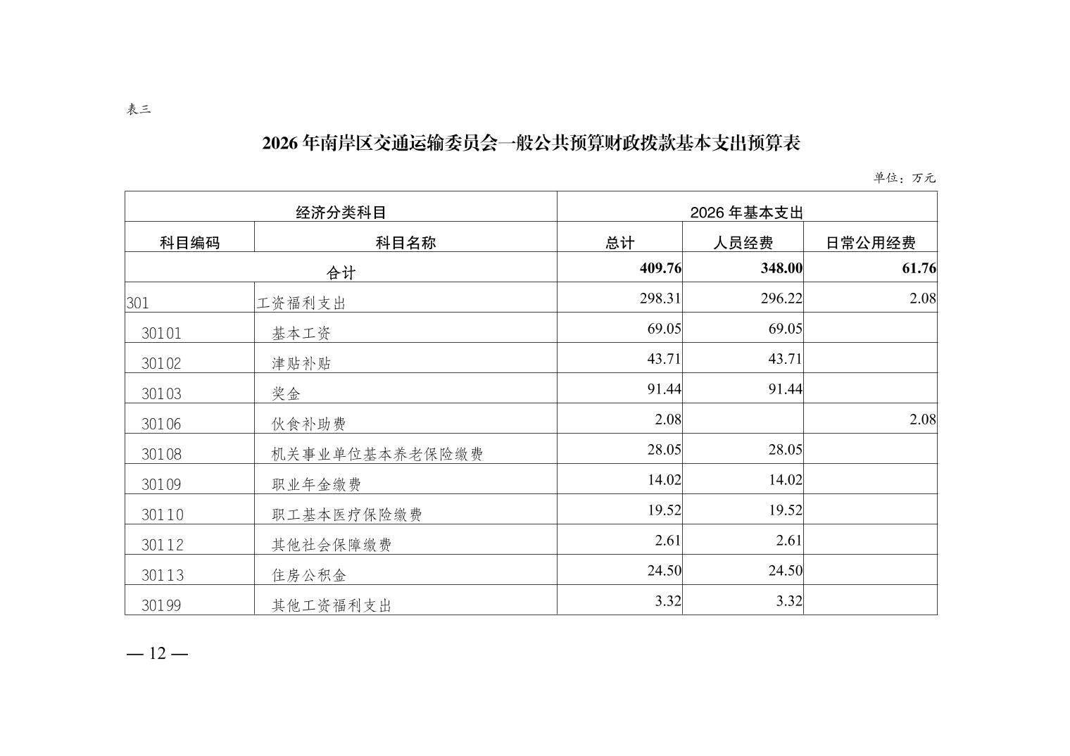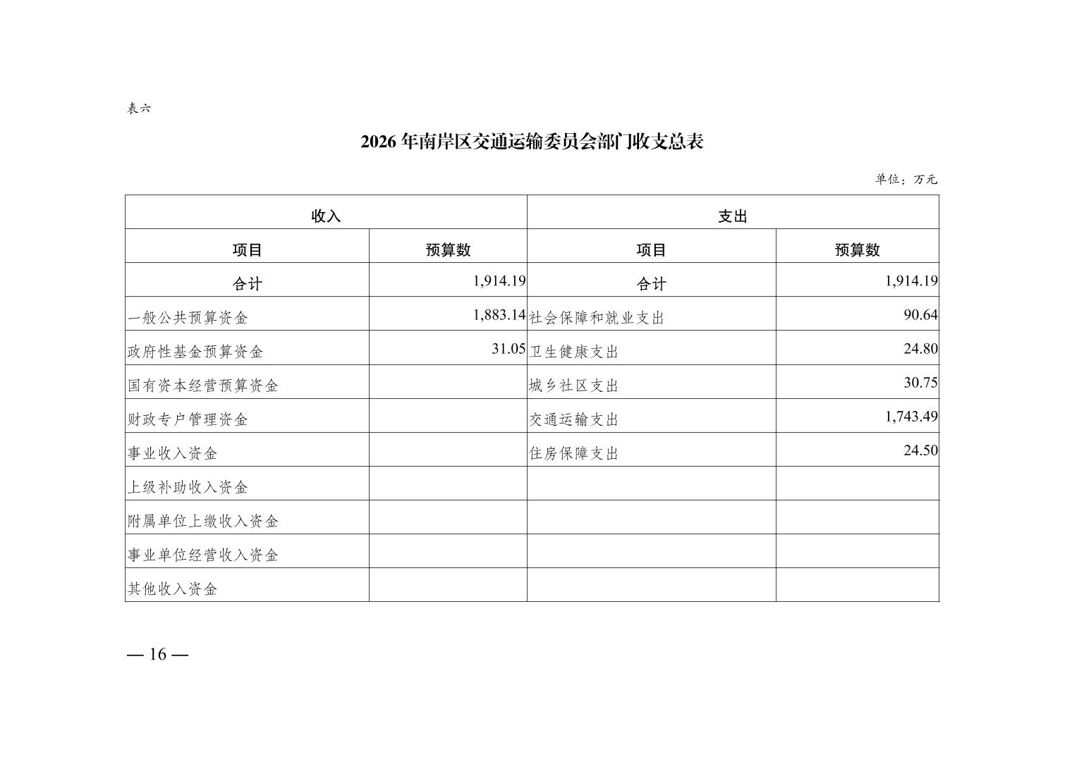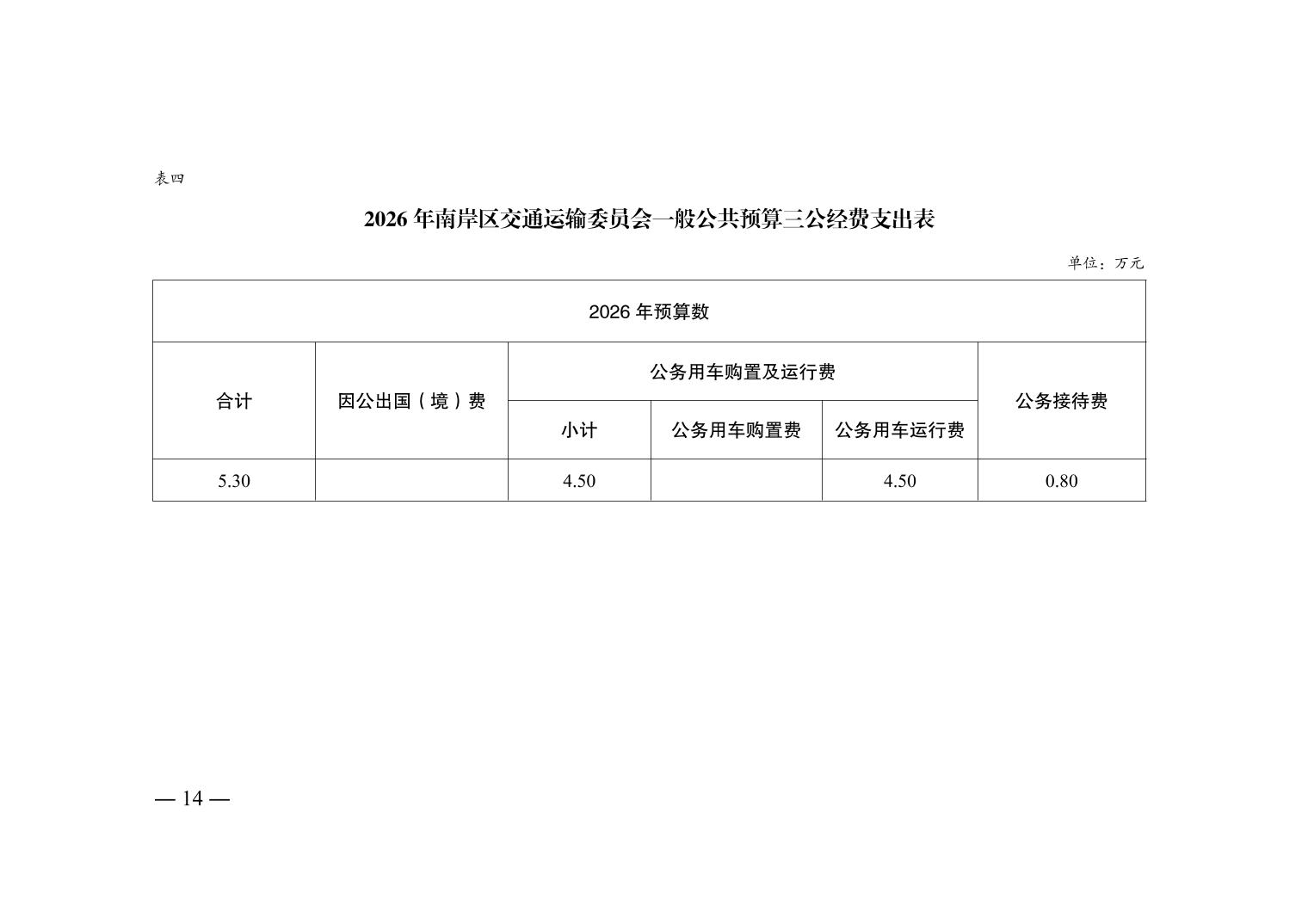 重庆市南岸区交通运输委员会(本级)2026年单位预算情况说明