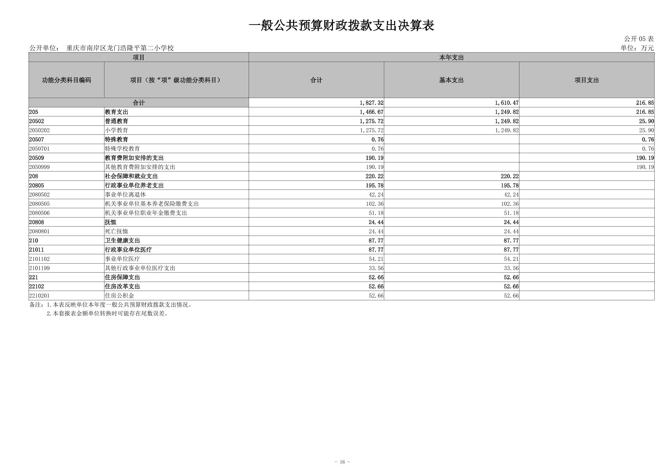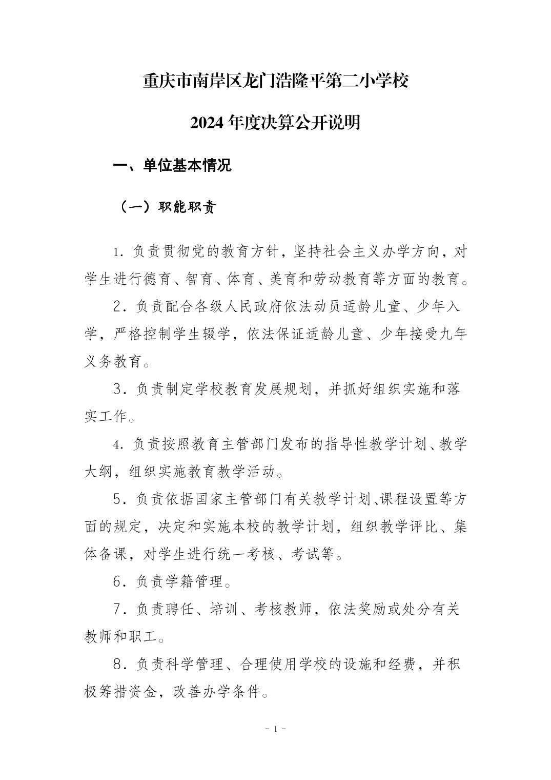 重庆市南岸区龙门浩隆平第二小学校2024年度决算公开说明