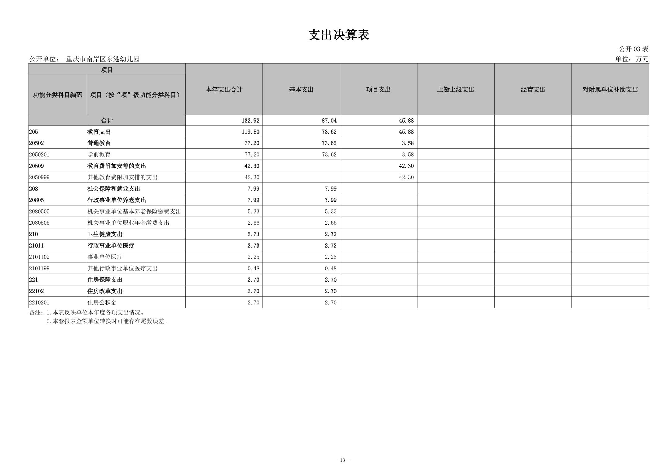 重庆市南岸区东港幼儿园2024年度决算公开说明