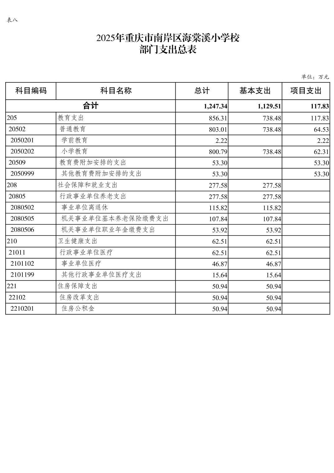 重庆市南岸区海棠溪小学校2025年单位预算情况说明