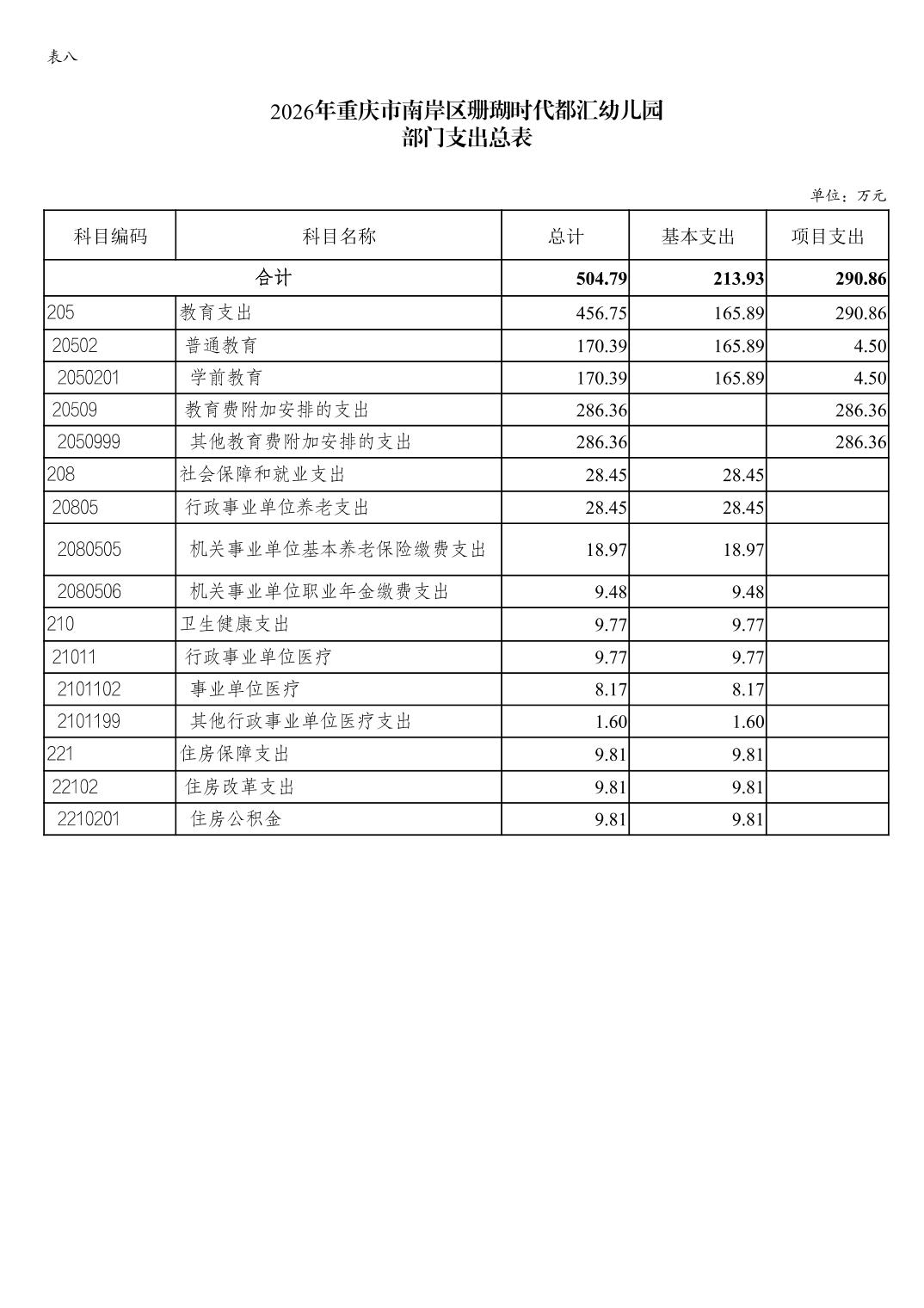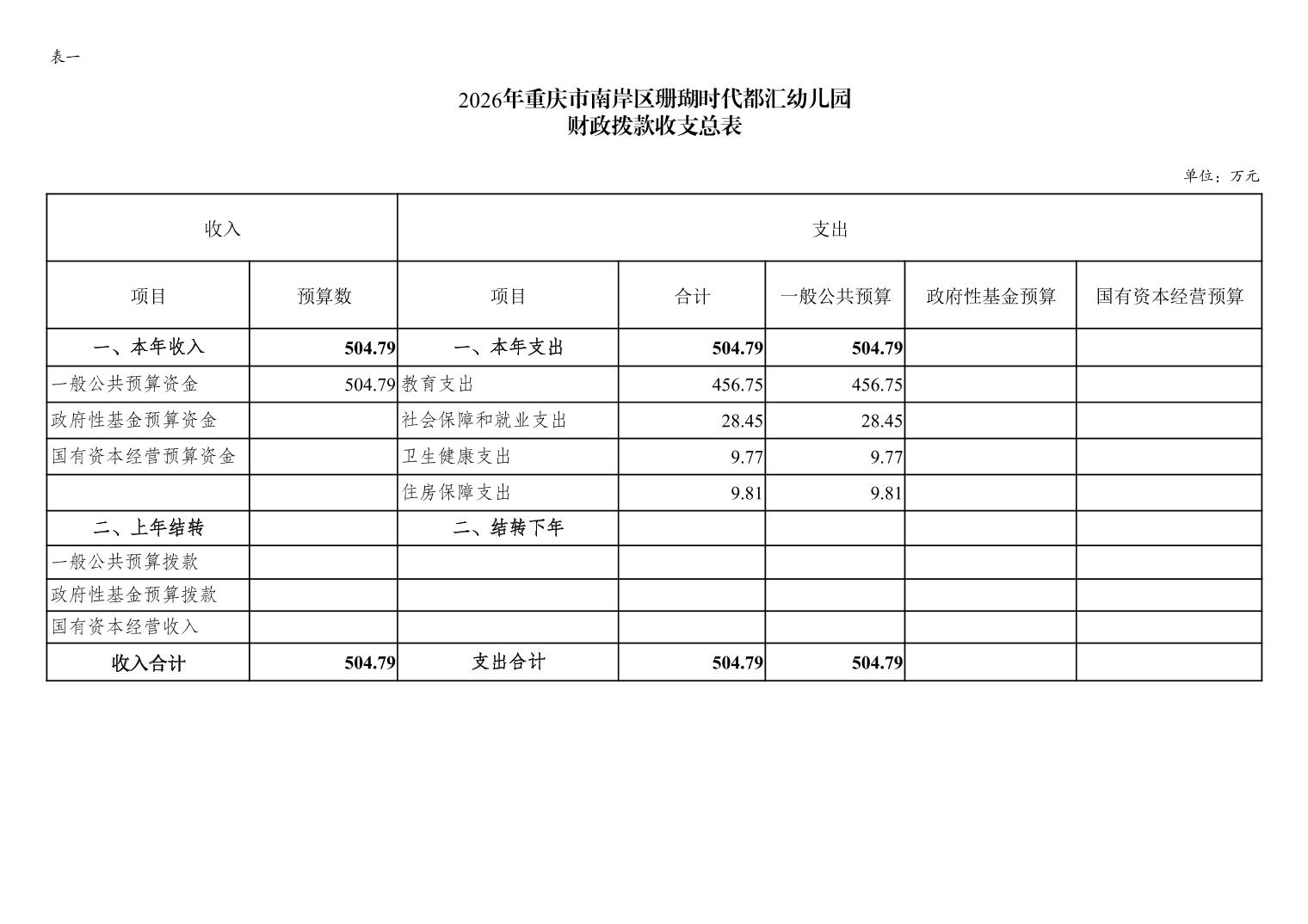 重庆市南岸区珊瑚时代都汇幼儿园2026年单位预算情况说明