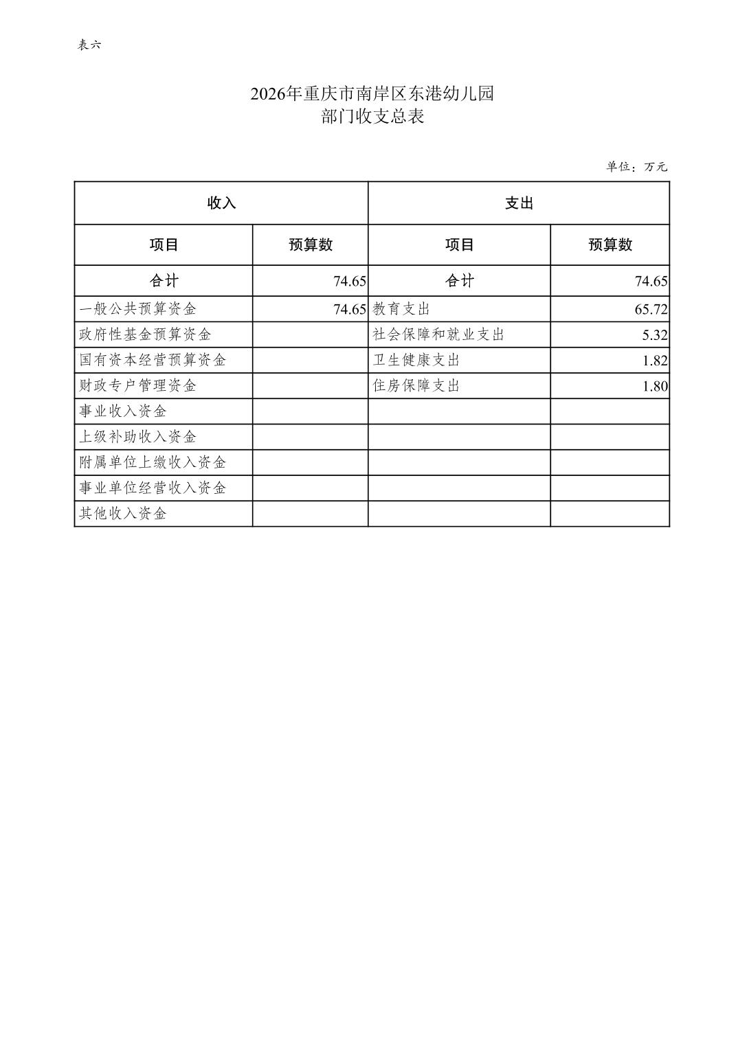 重庆市南岸区东港幼儿园2026年单位预算情况说明