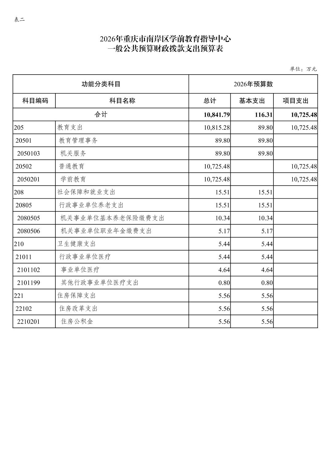 重庆市南岸区学前教育指导中心2026年单位预算情况说明