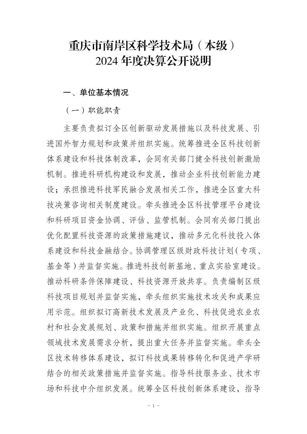 重庆市南岸区科学技术局(本级)2024年度决算公开说明