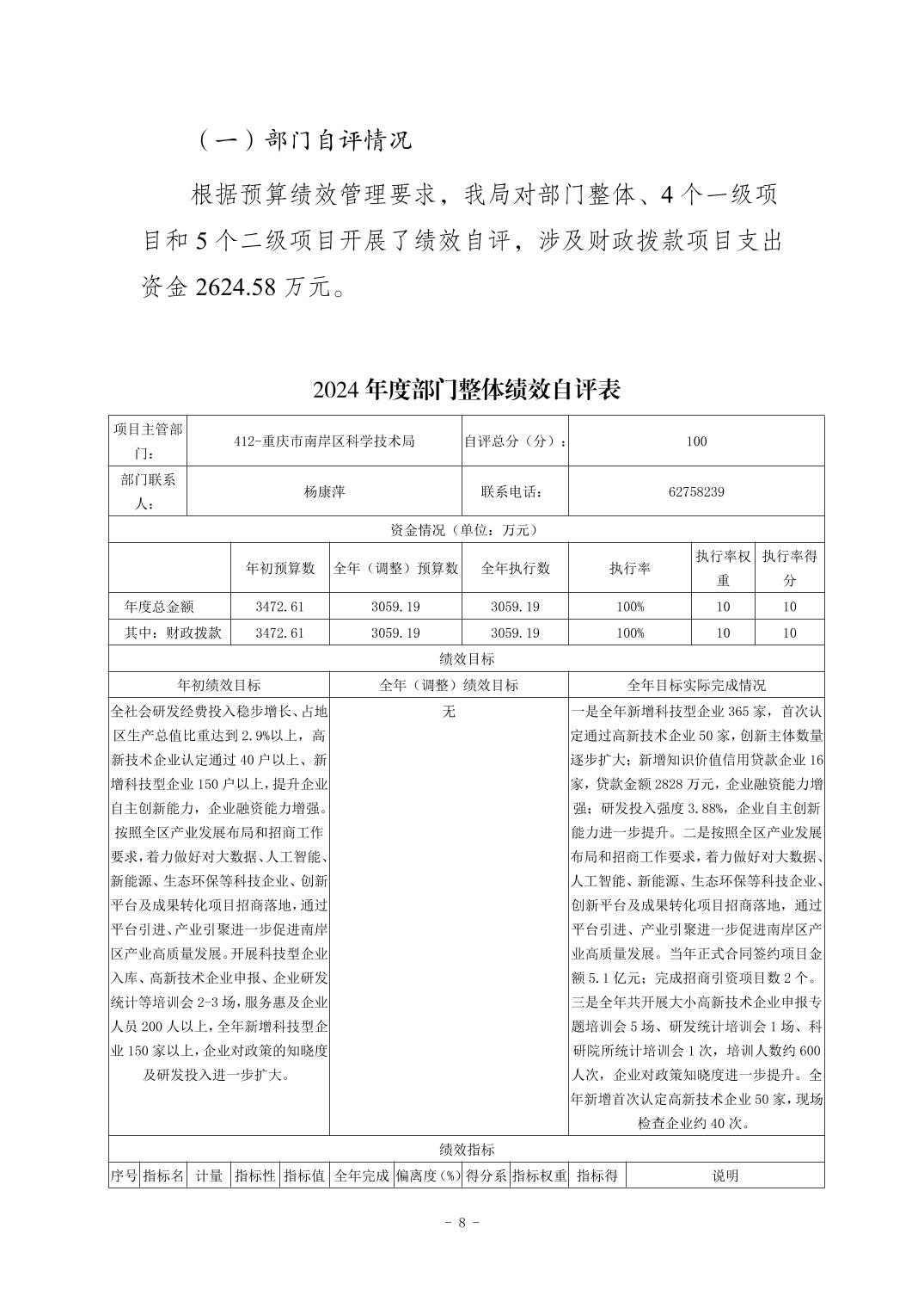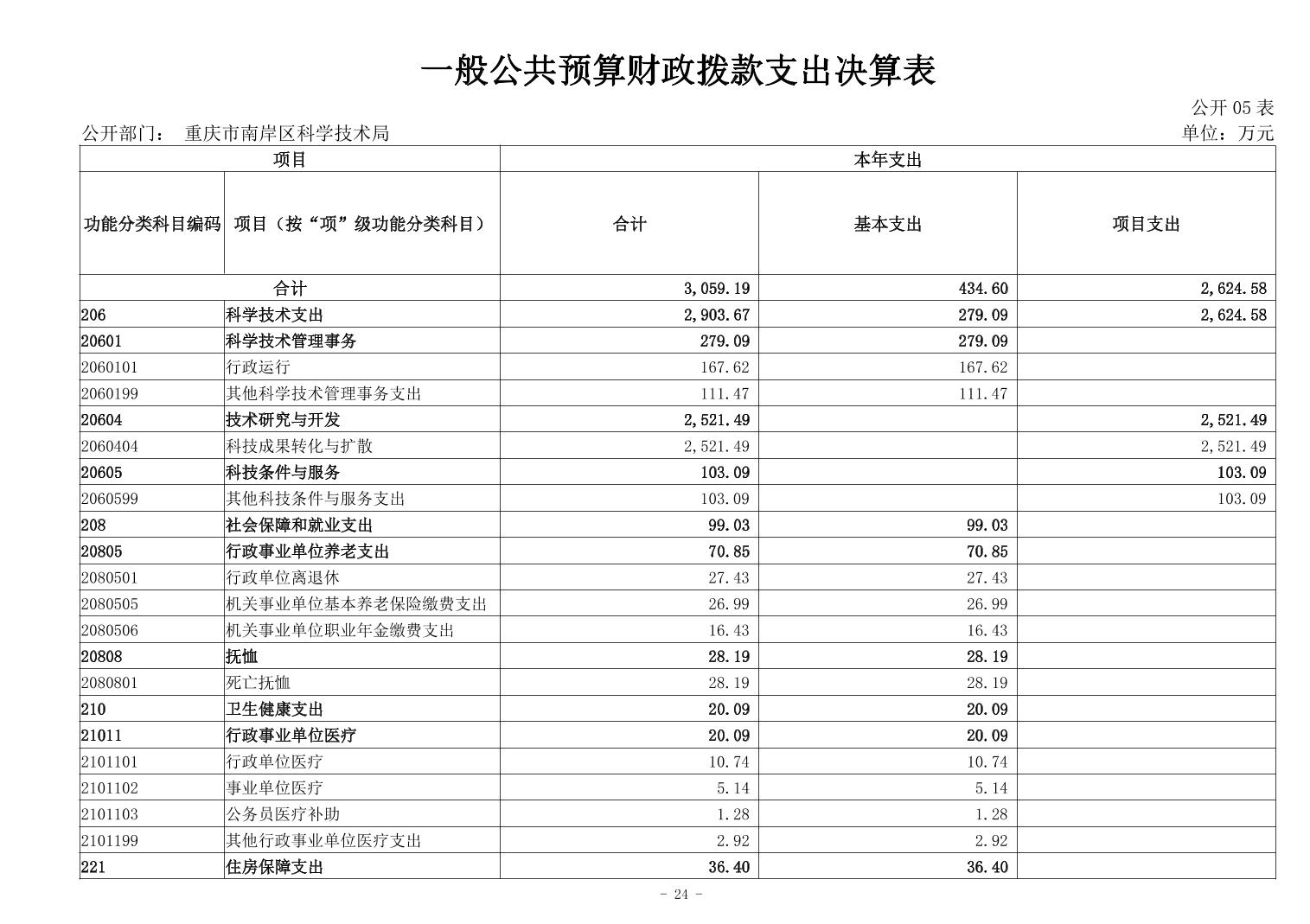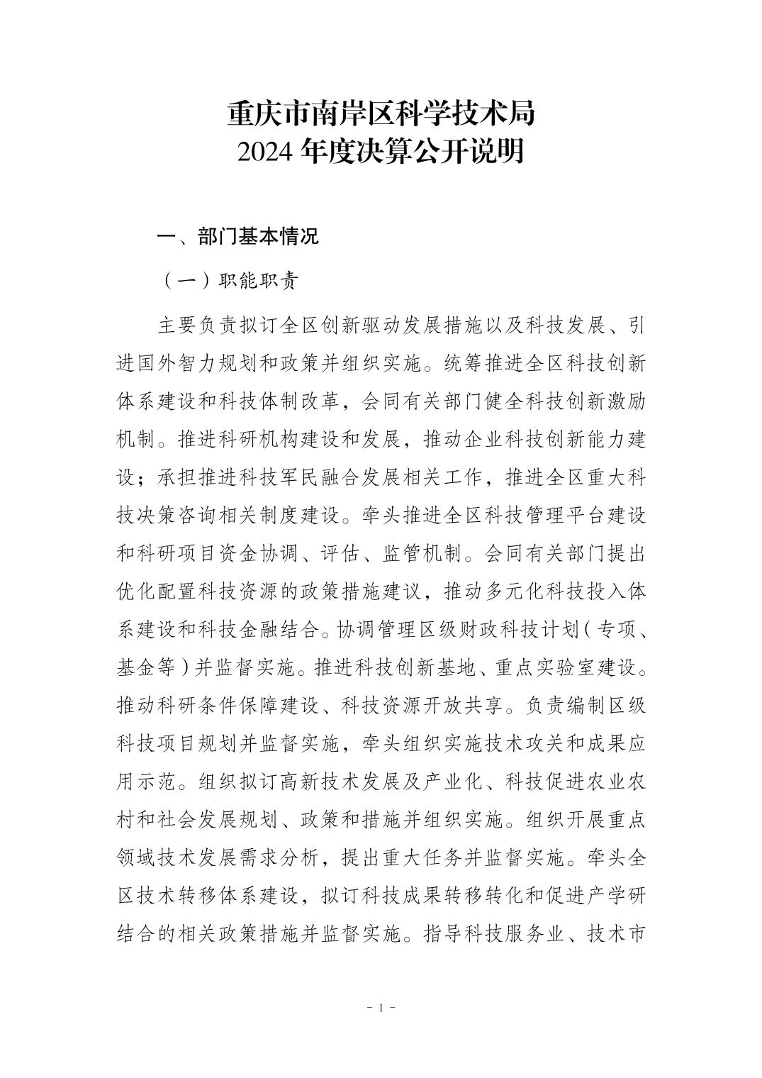 重庆市南岸区科学技术局2024年度决算公开说明