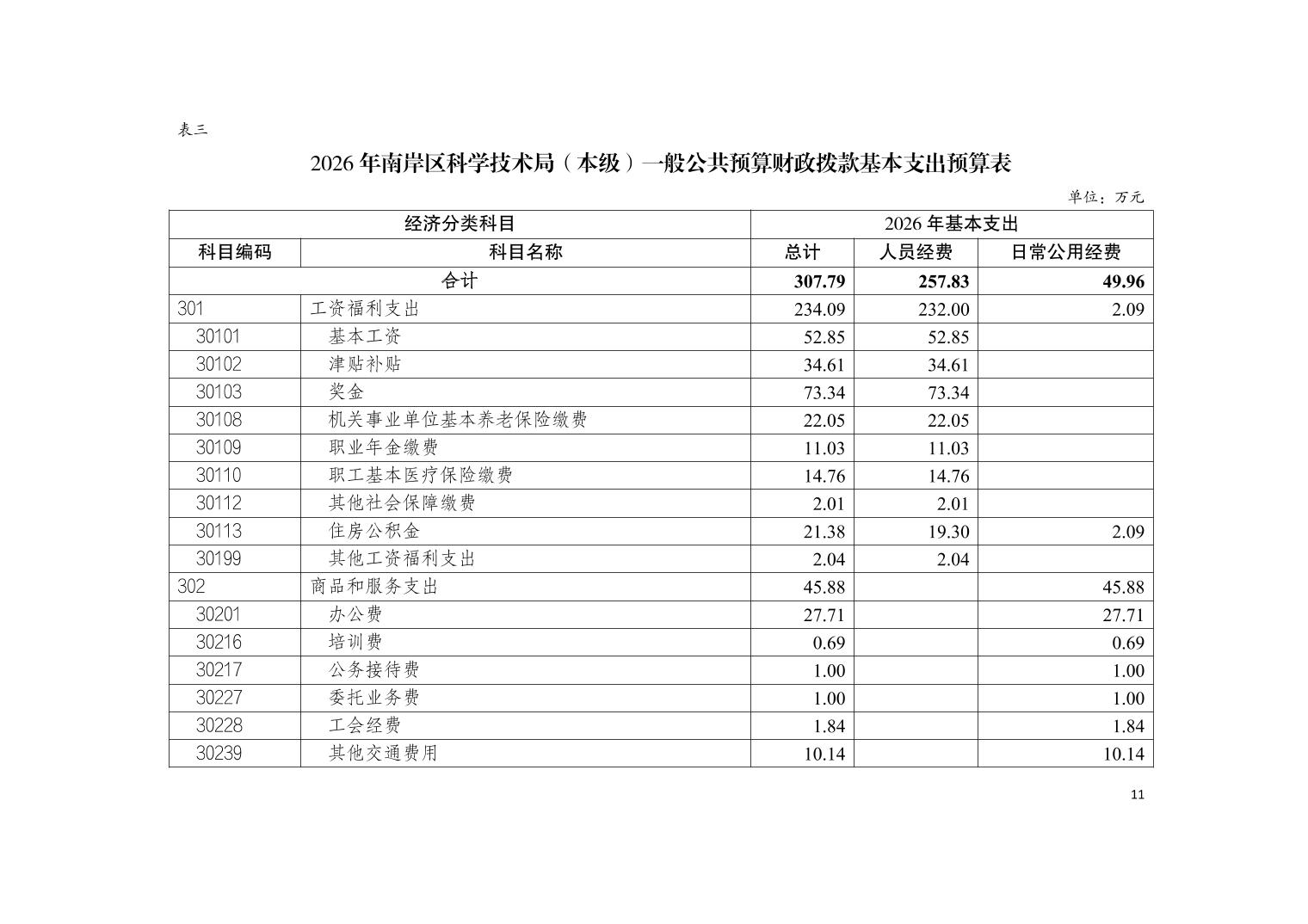 重庆市南岸区科学技术局(本级)2026年单位预算情况说明
