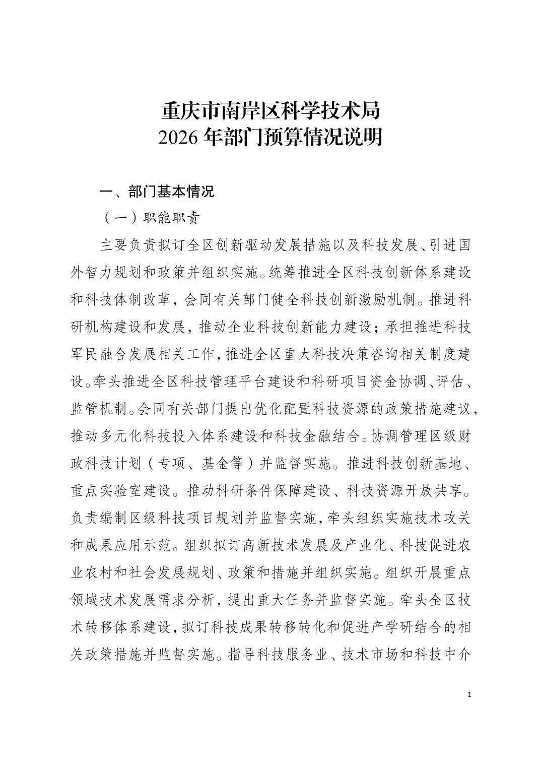 重庆市南岸区科学技术局2026年部门预算情况说明