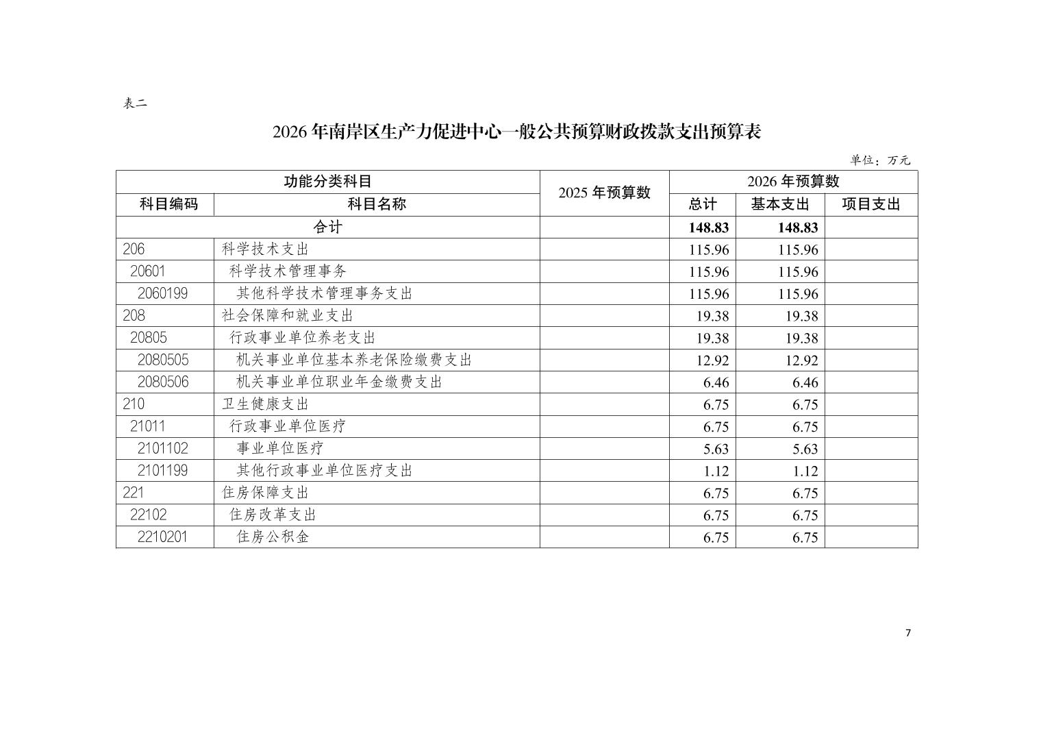 重庆市南岸区生产力促进中心2026年单位预算情况说明