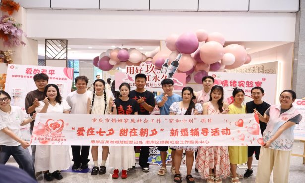 8 月 29 日,区民政局在婚姻登记处开展“爱在七夕 甜在朝 夕”沉浸式婚辅活动。活动突破传统讲座模式,首次采用沉浸式 互动打卡体验,设置“情绪实验室”“爱的天平”“时光慢递”等多个情景模块,100 余对新人参与。(区民政局)