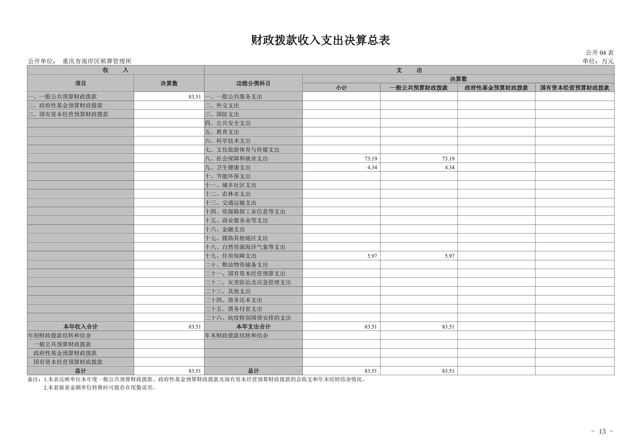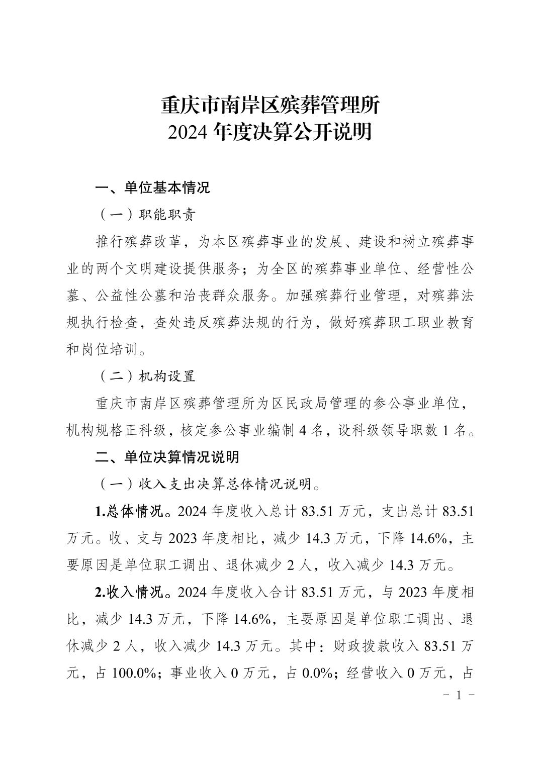 重庆市南岸区殡葬管理所2024年度决算公开说明
