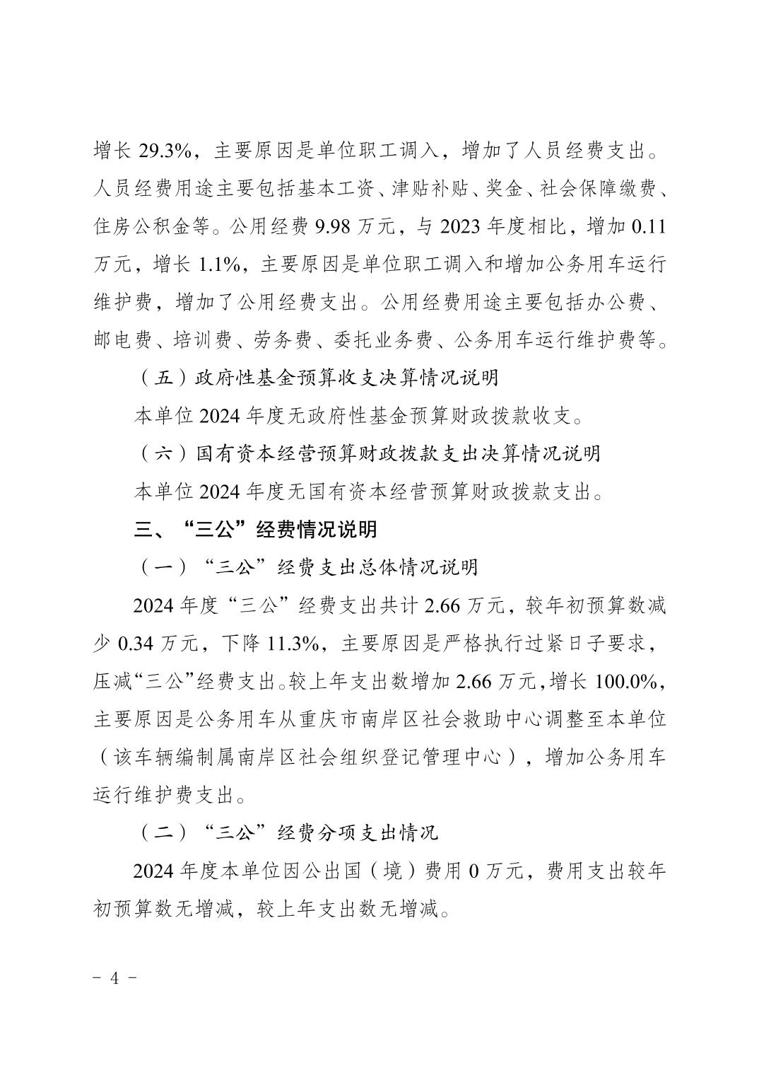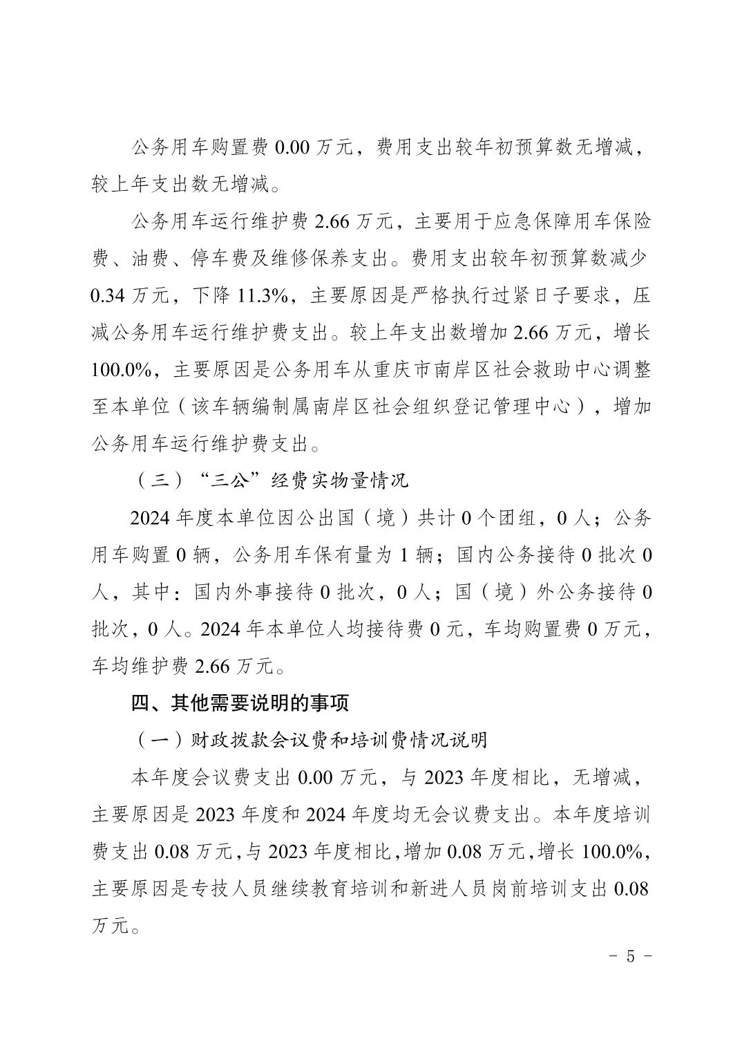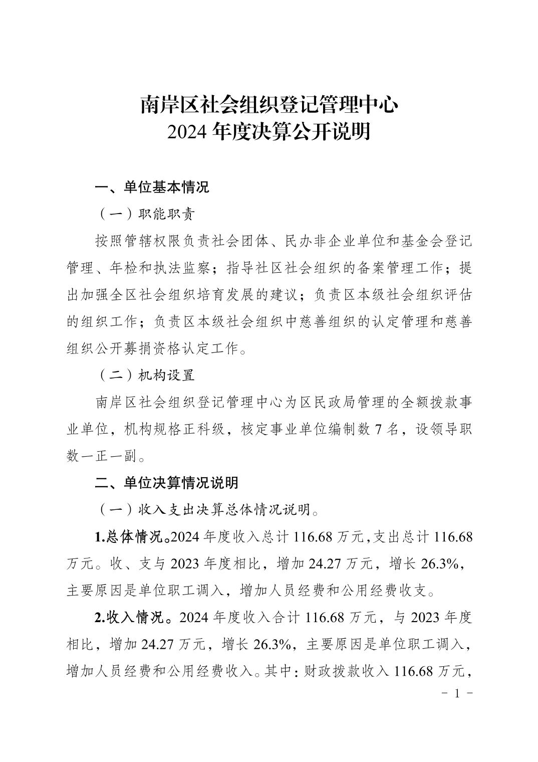 南岸区社会组织登记管理中心2024年度决算公开说明