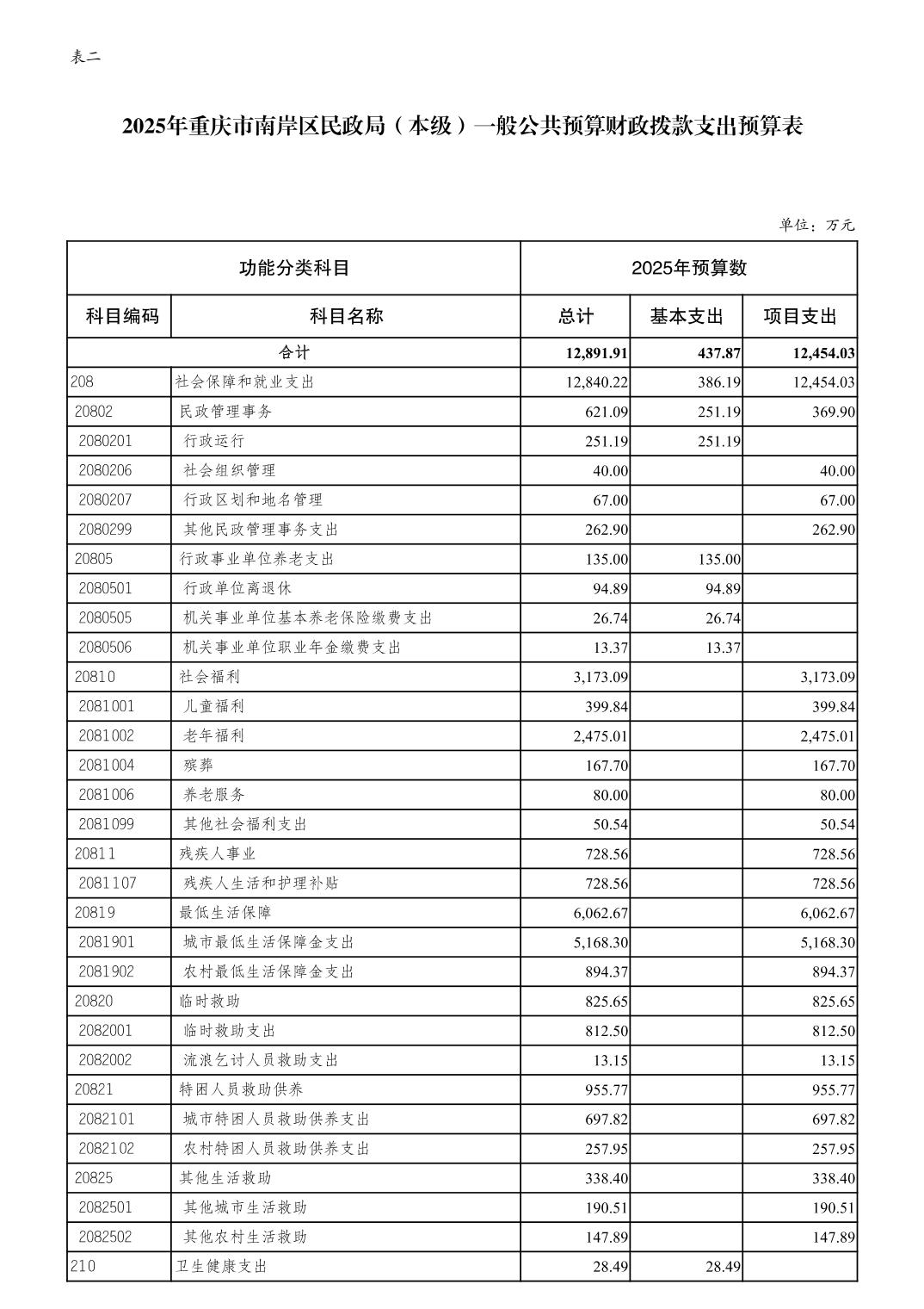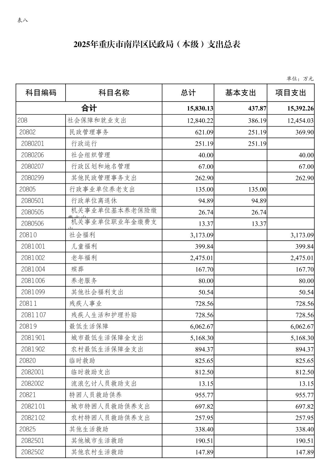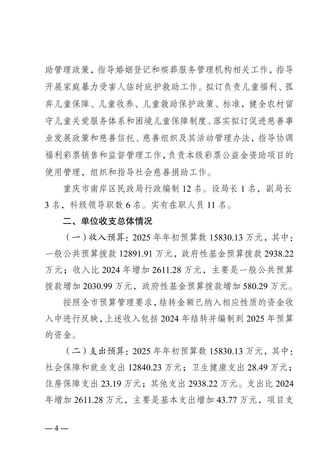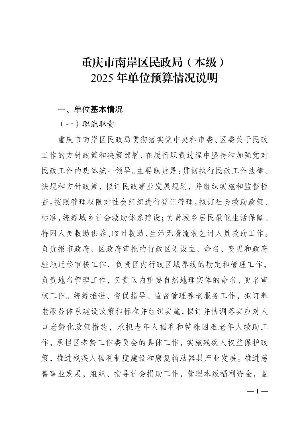 重庆市南岸区民政局(本级)2025年单位预算情况说明