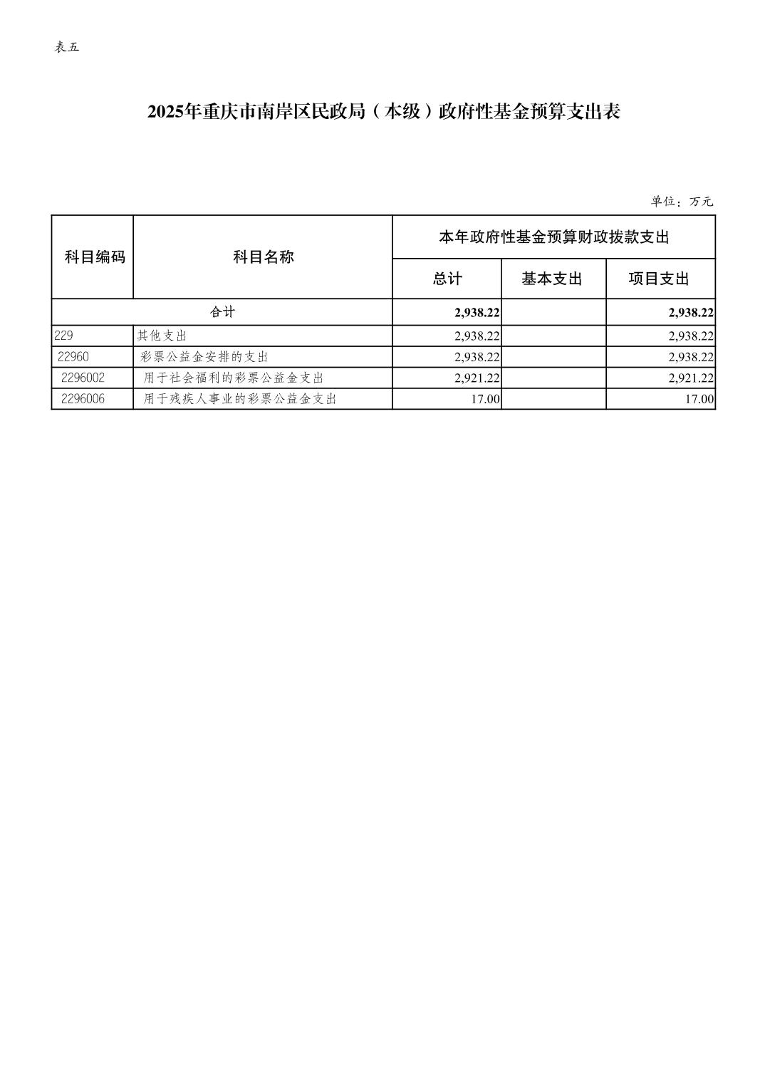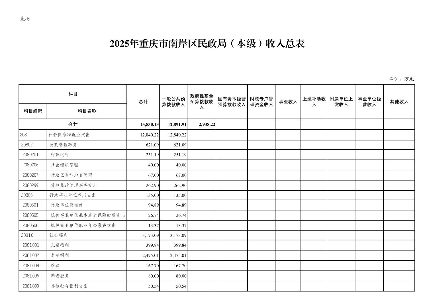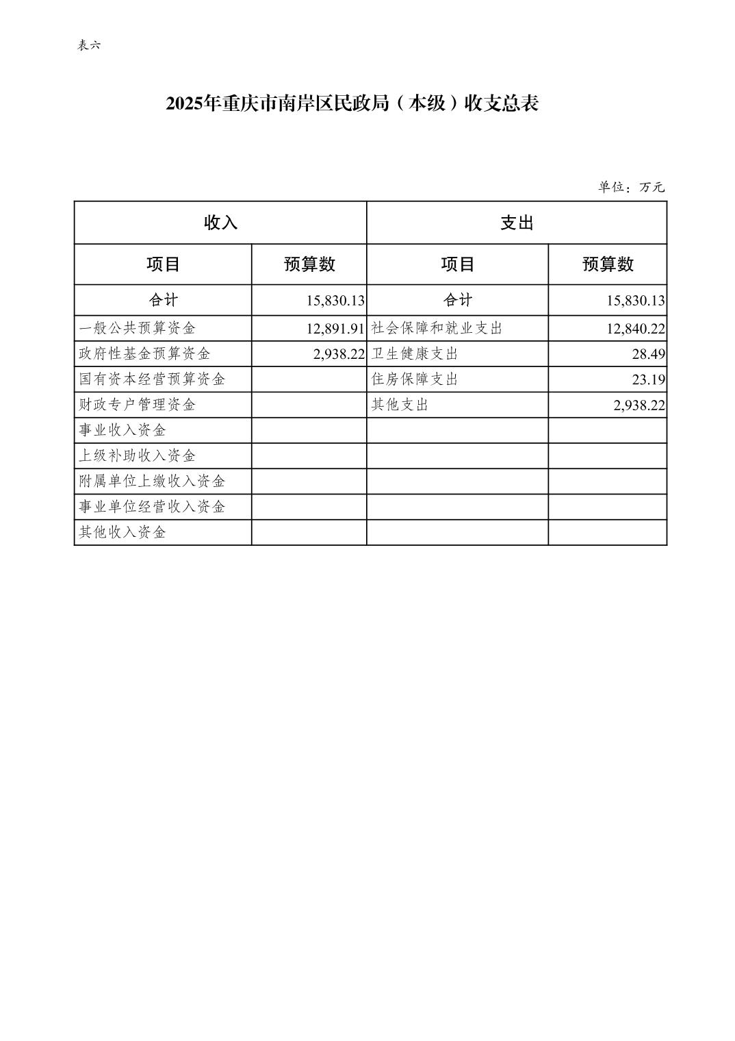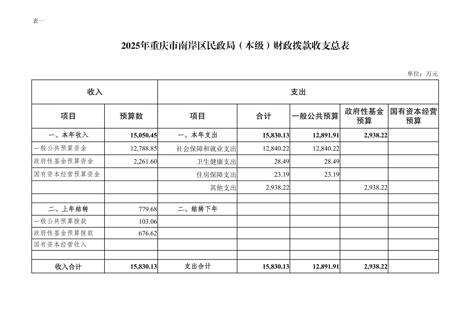 重庆市南岸区民政局(本级)2025年单位预算情况说明