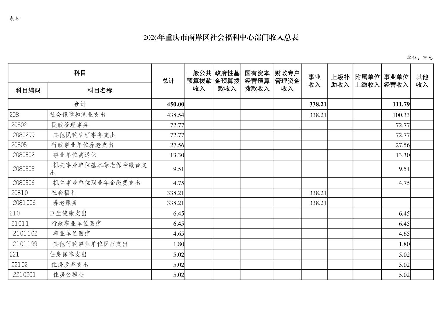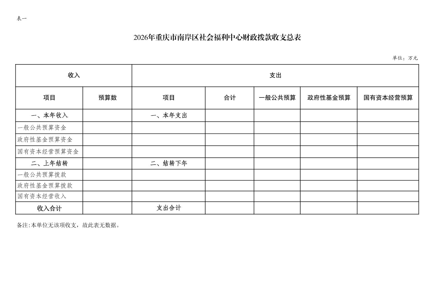 重庆市南岸区社会福利中心2026年单位预算情况说明
