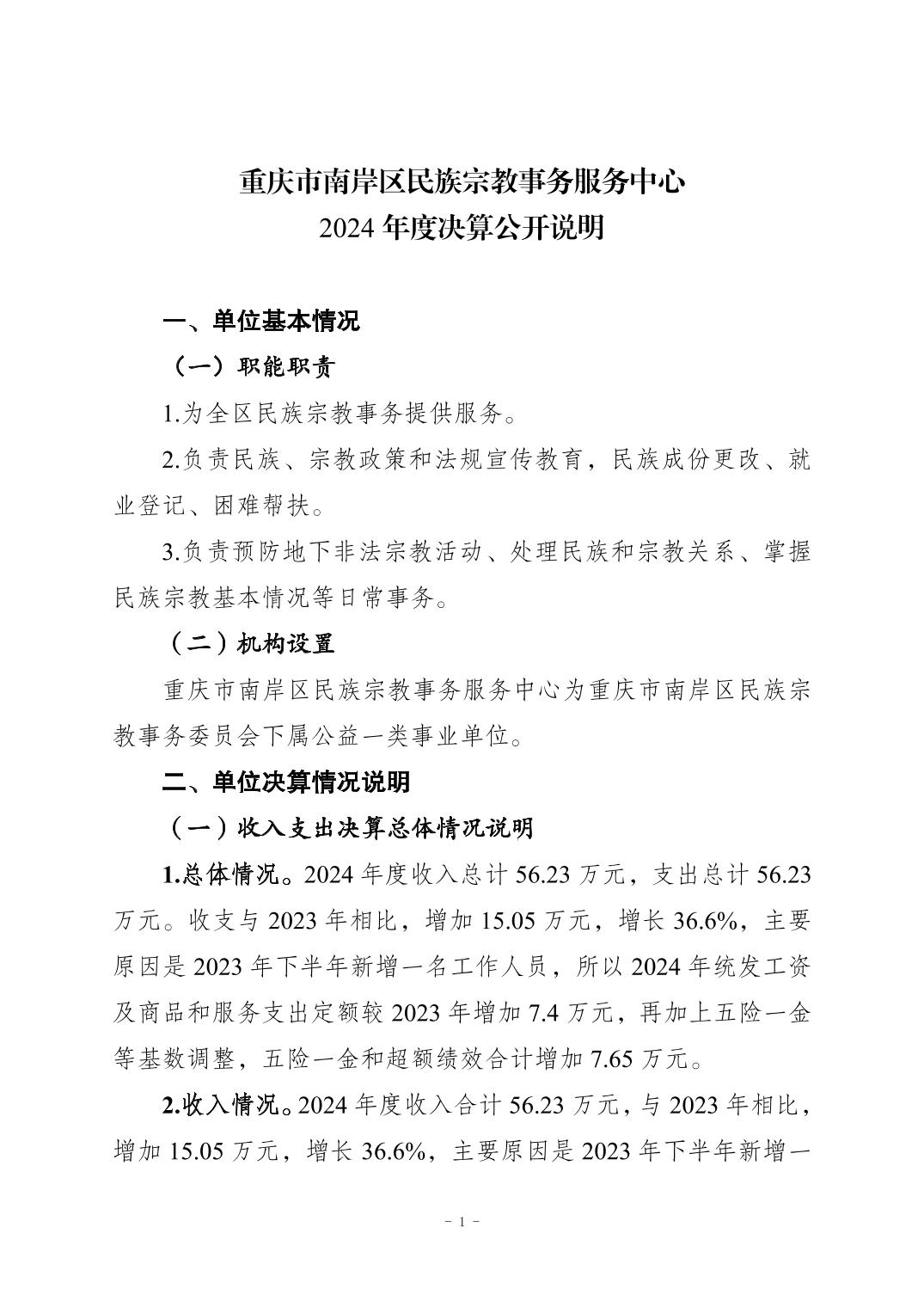 重庆市南岸区民族宗教事务服务中心2024年度决算公开说明