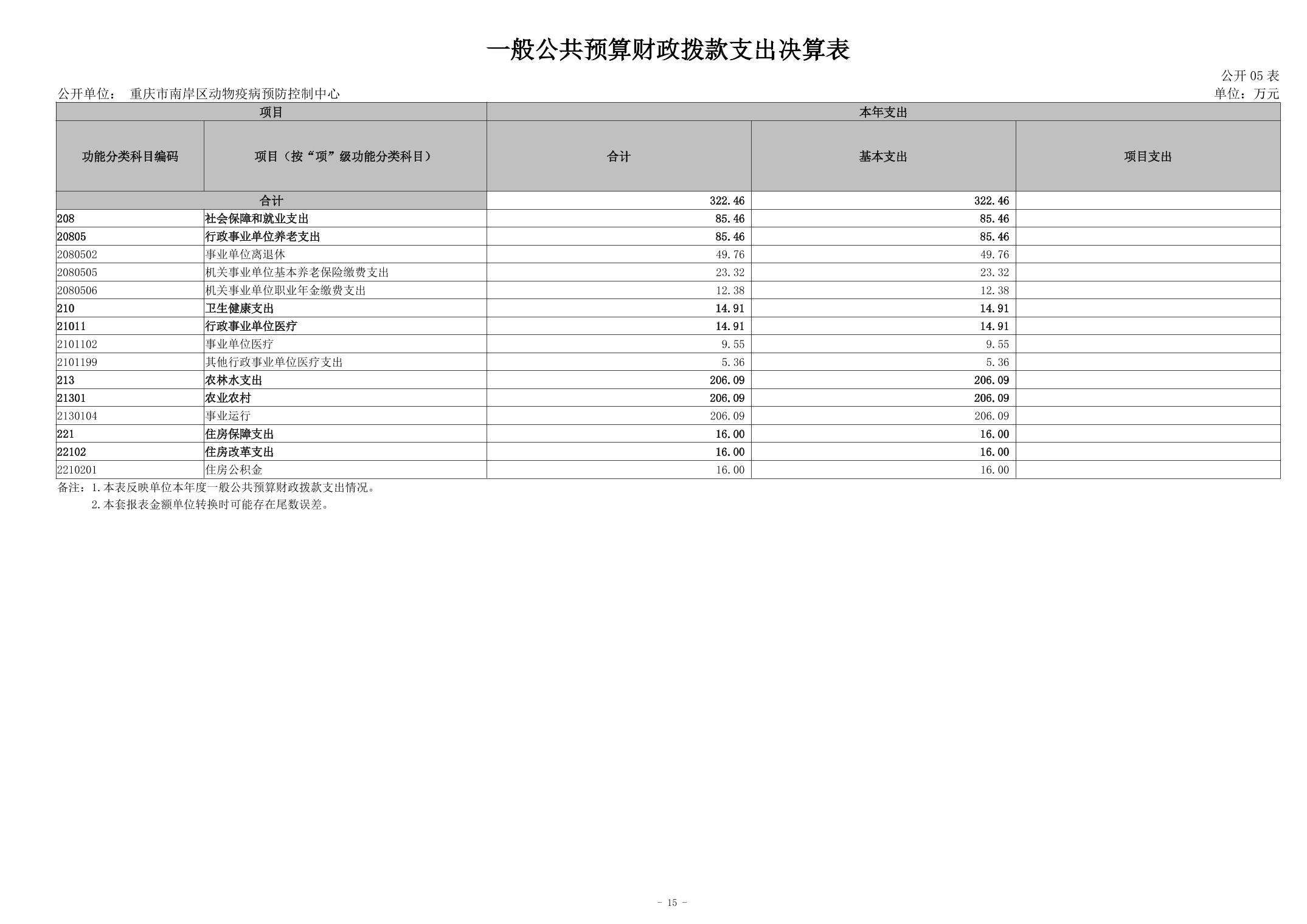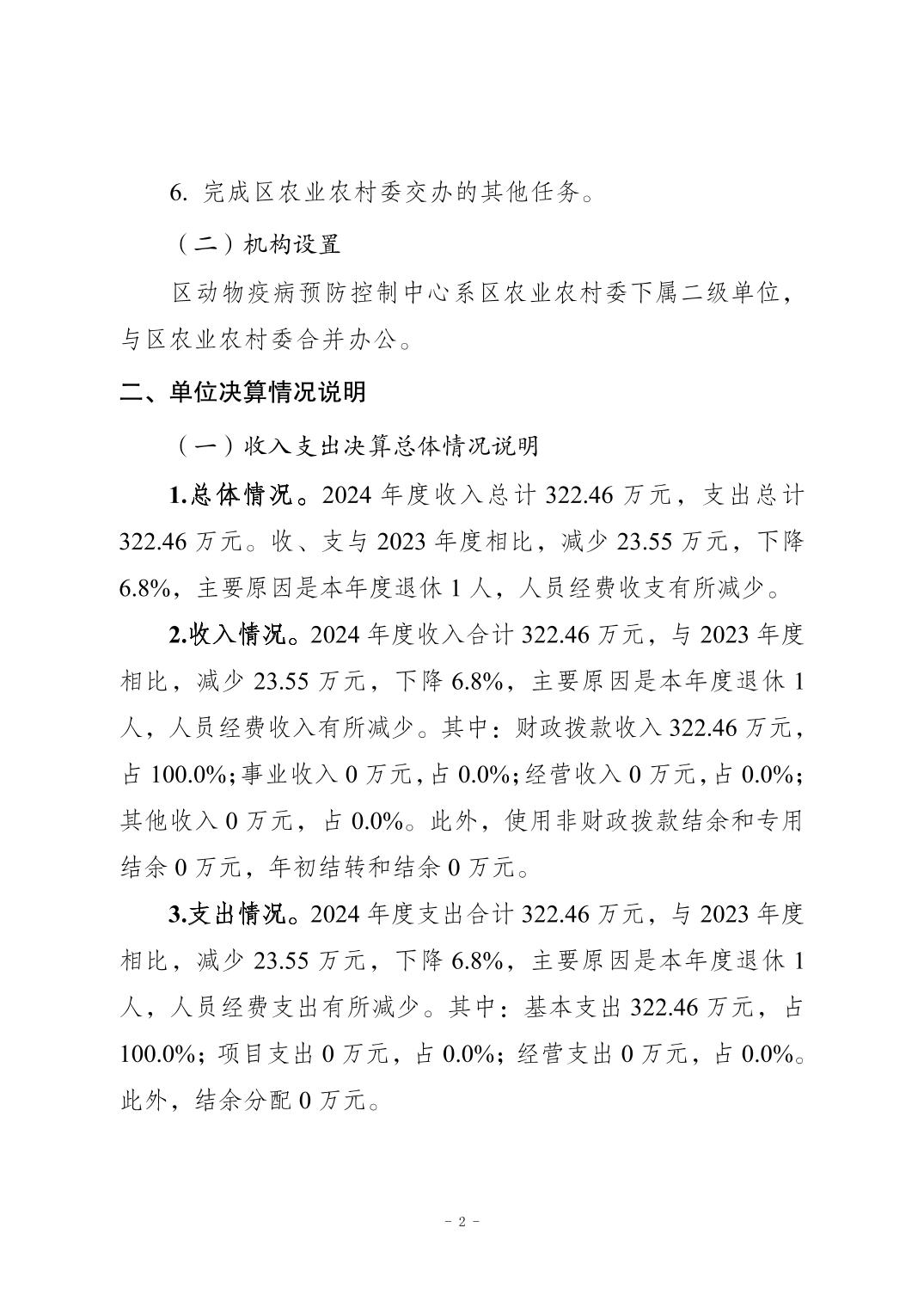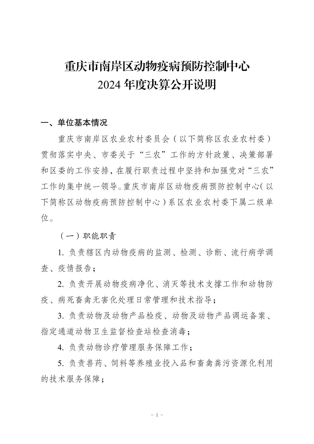 重庆市南岸区动物疫病预防控制中心2024年度决算公开说明