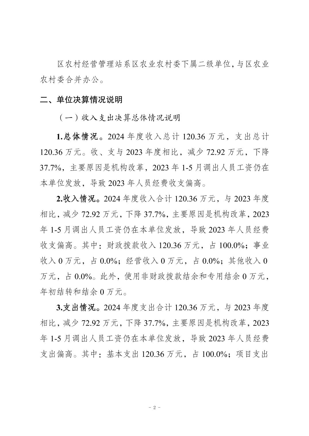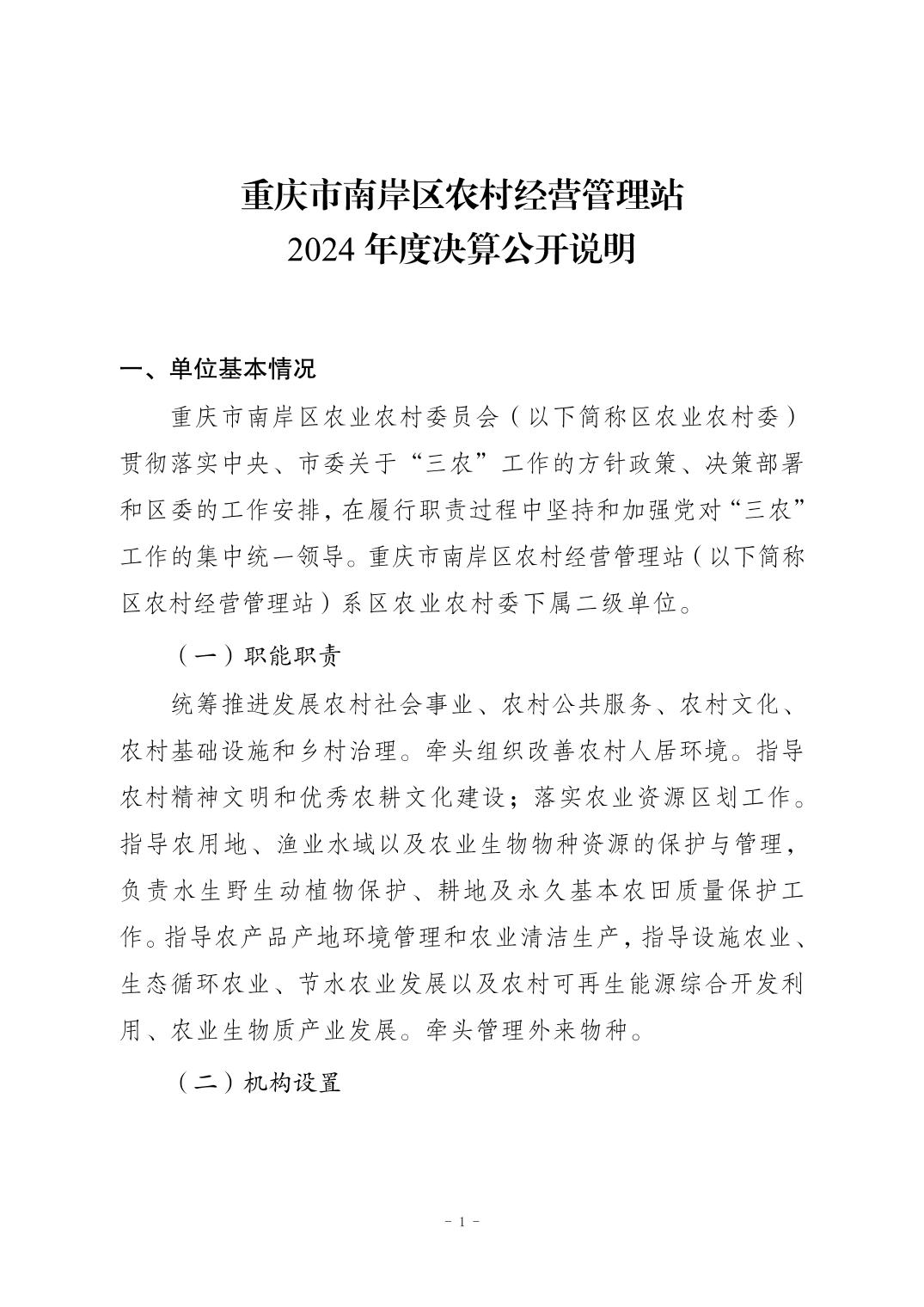 重庆市南岸区农村经营管理站2024年度决算公开说明