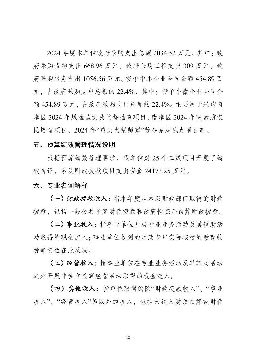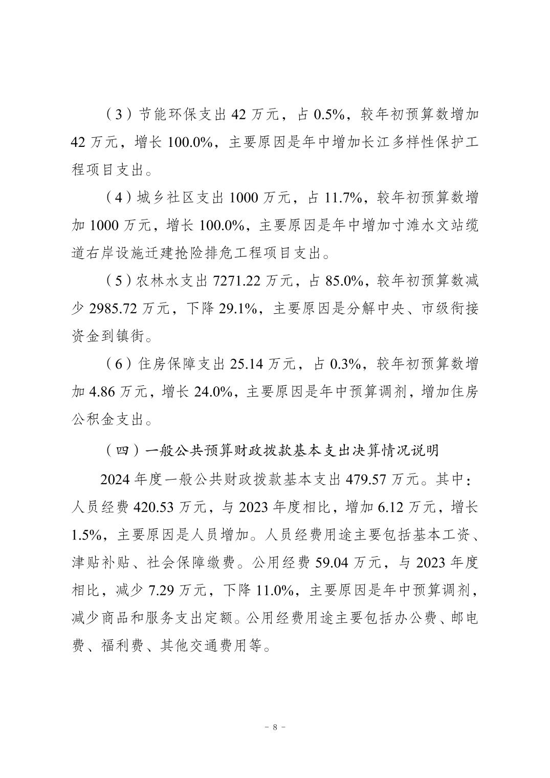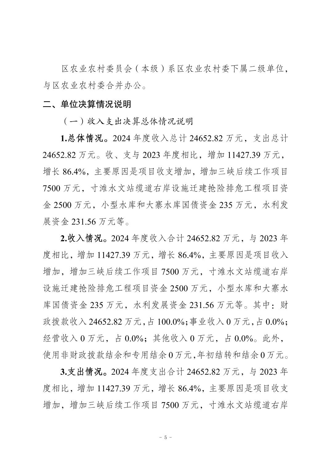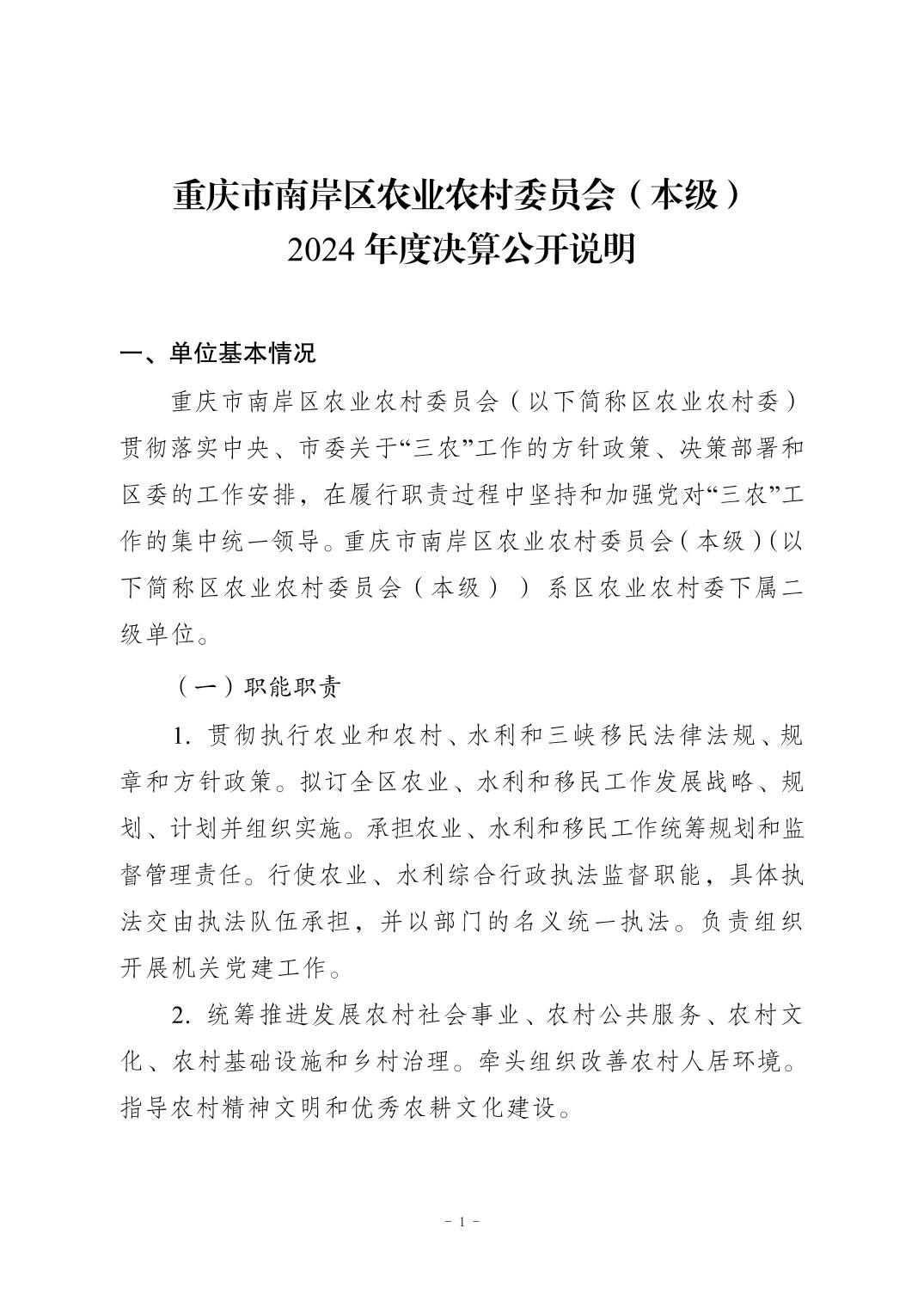 重庆市南岸区农业农村委员会(本级)2024年度决算公开说明