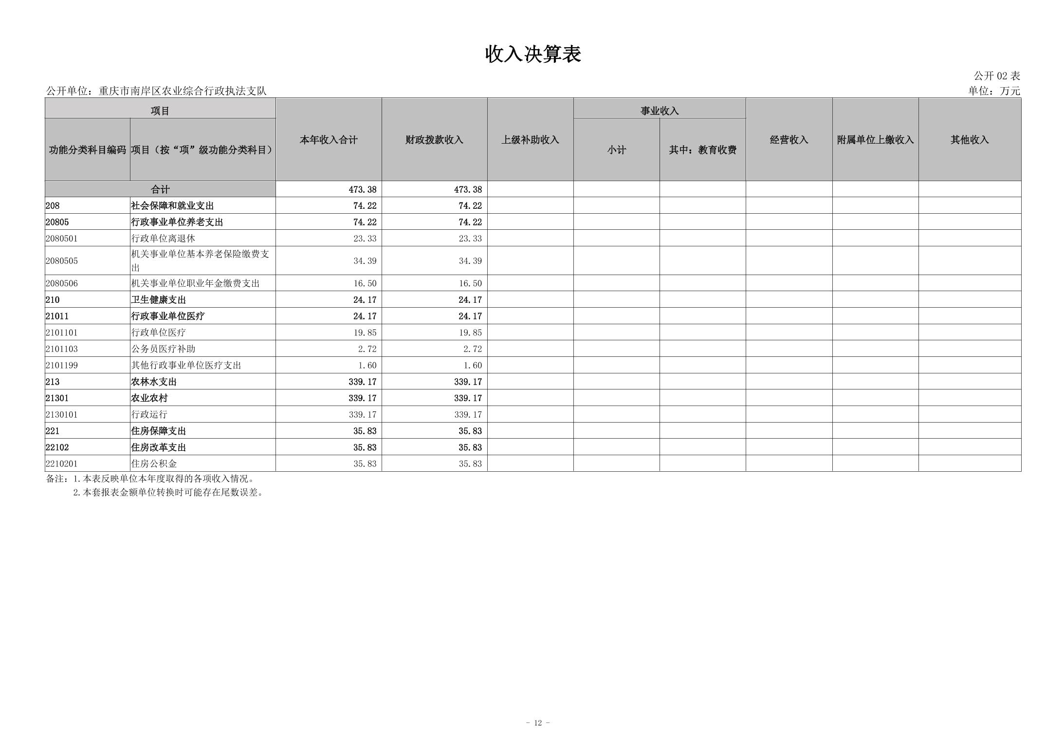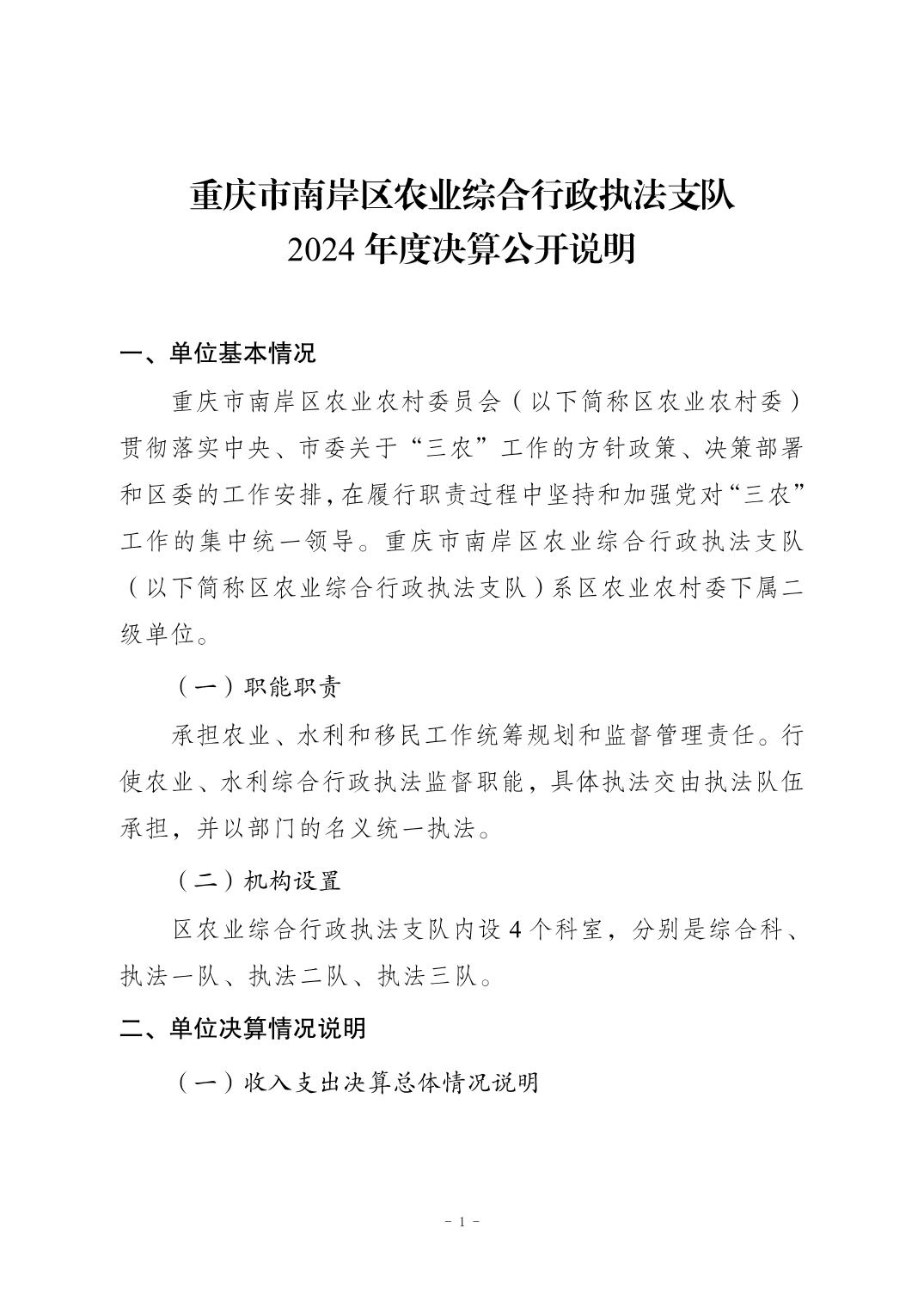重庆市南岸区农业综合行政执法支队2024年度决算公开说明