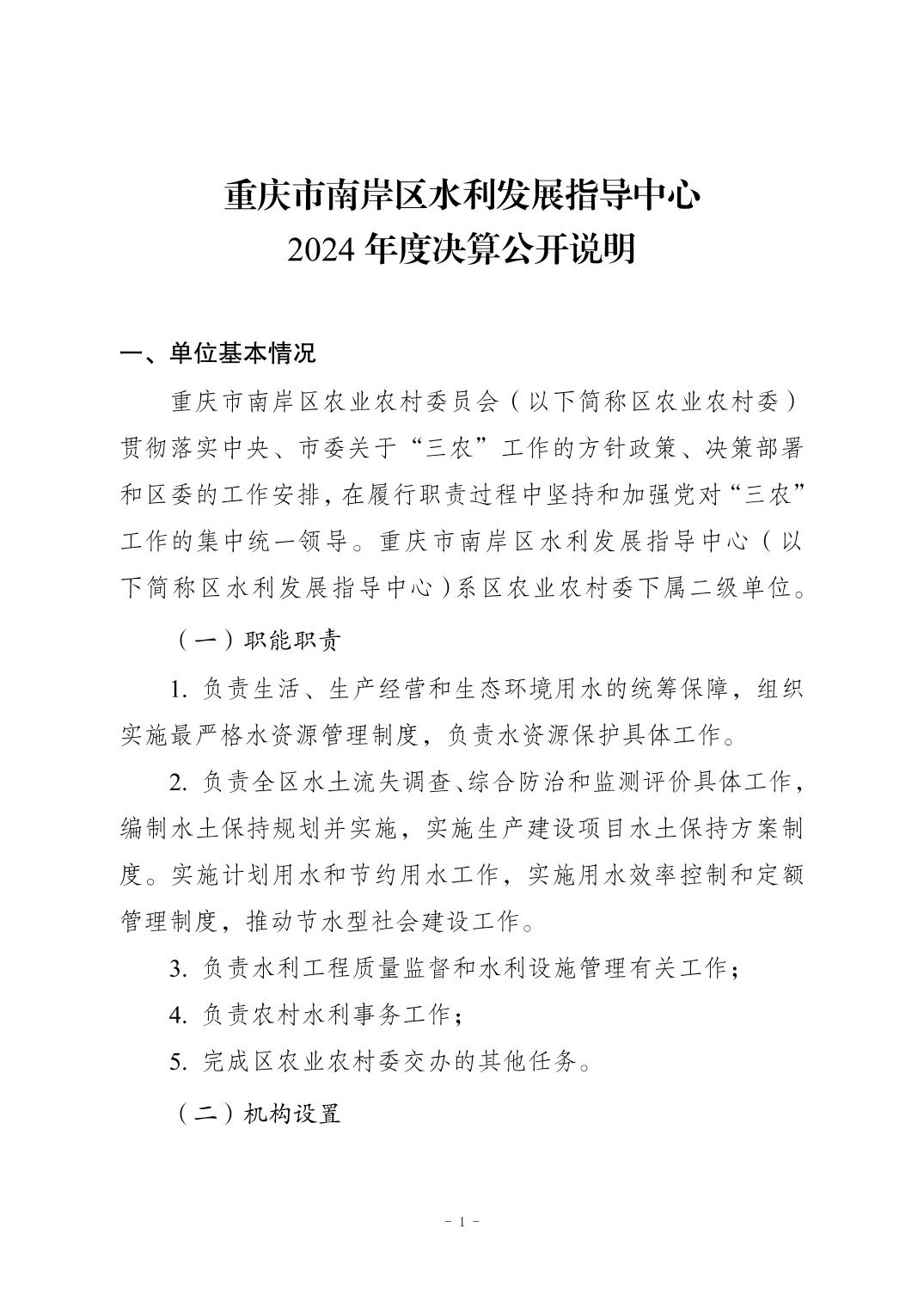 重庆市南岸区水利发展指导中心2024年度决算公开说明