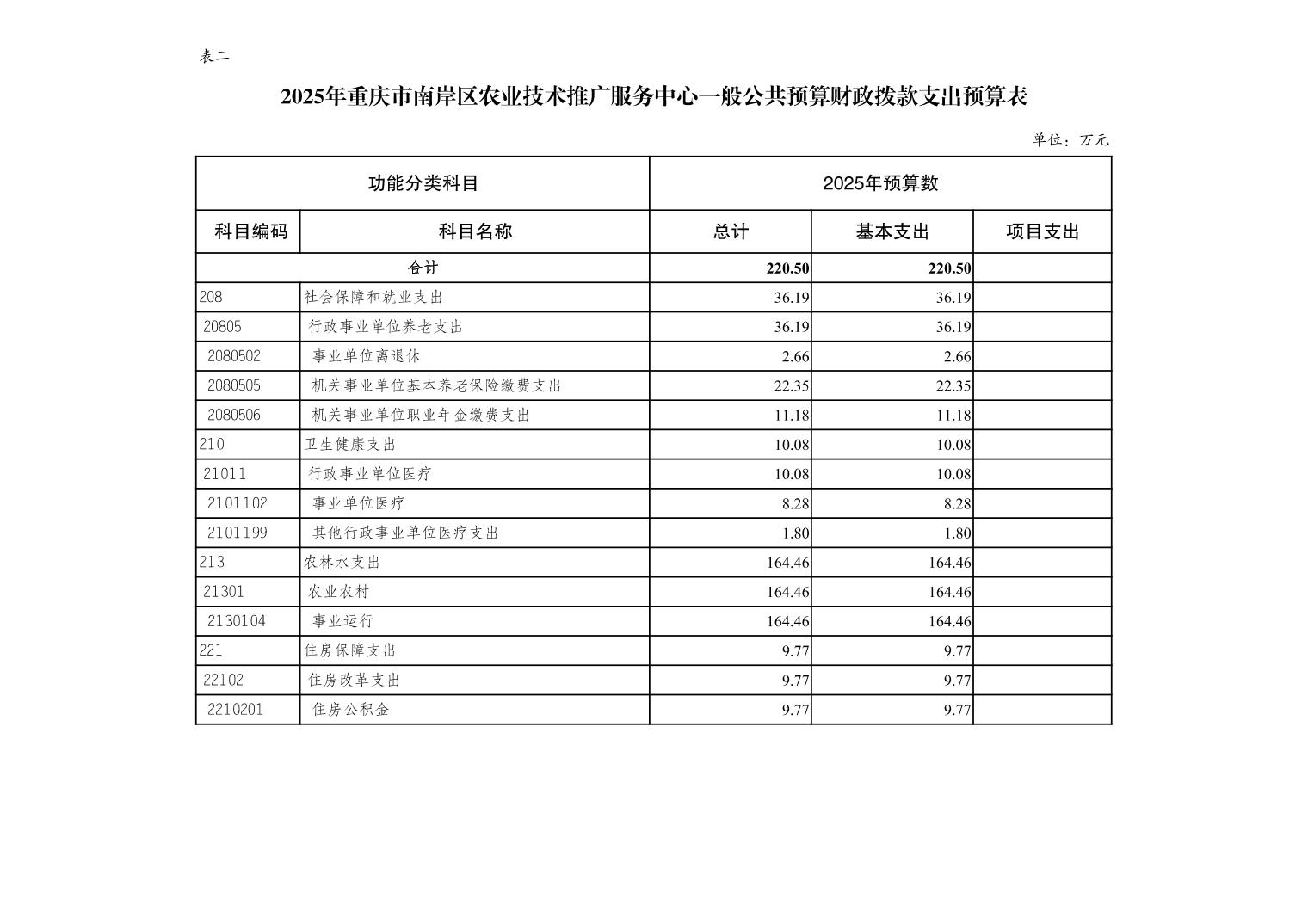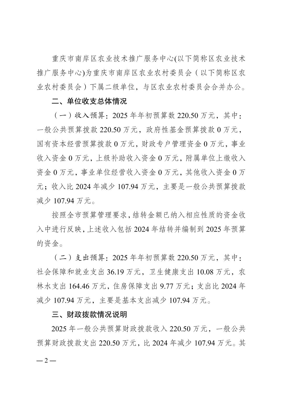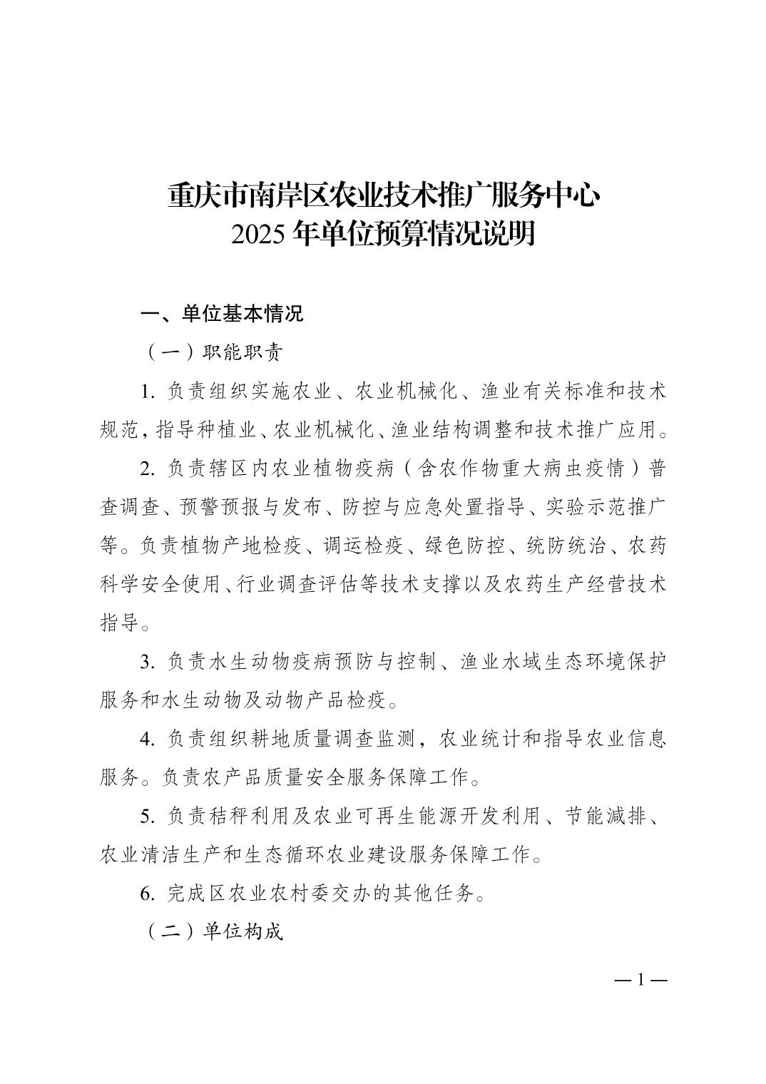 重庆市南岸区农业技术推广服务中心2025年单位预算情况说明