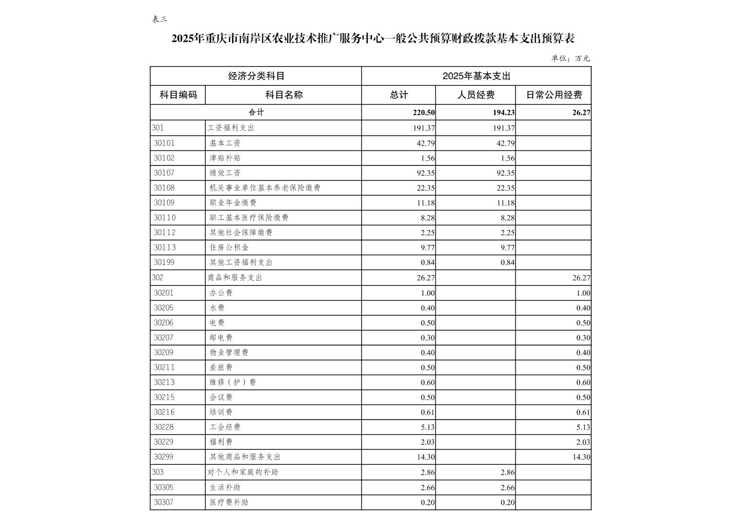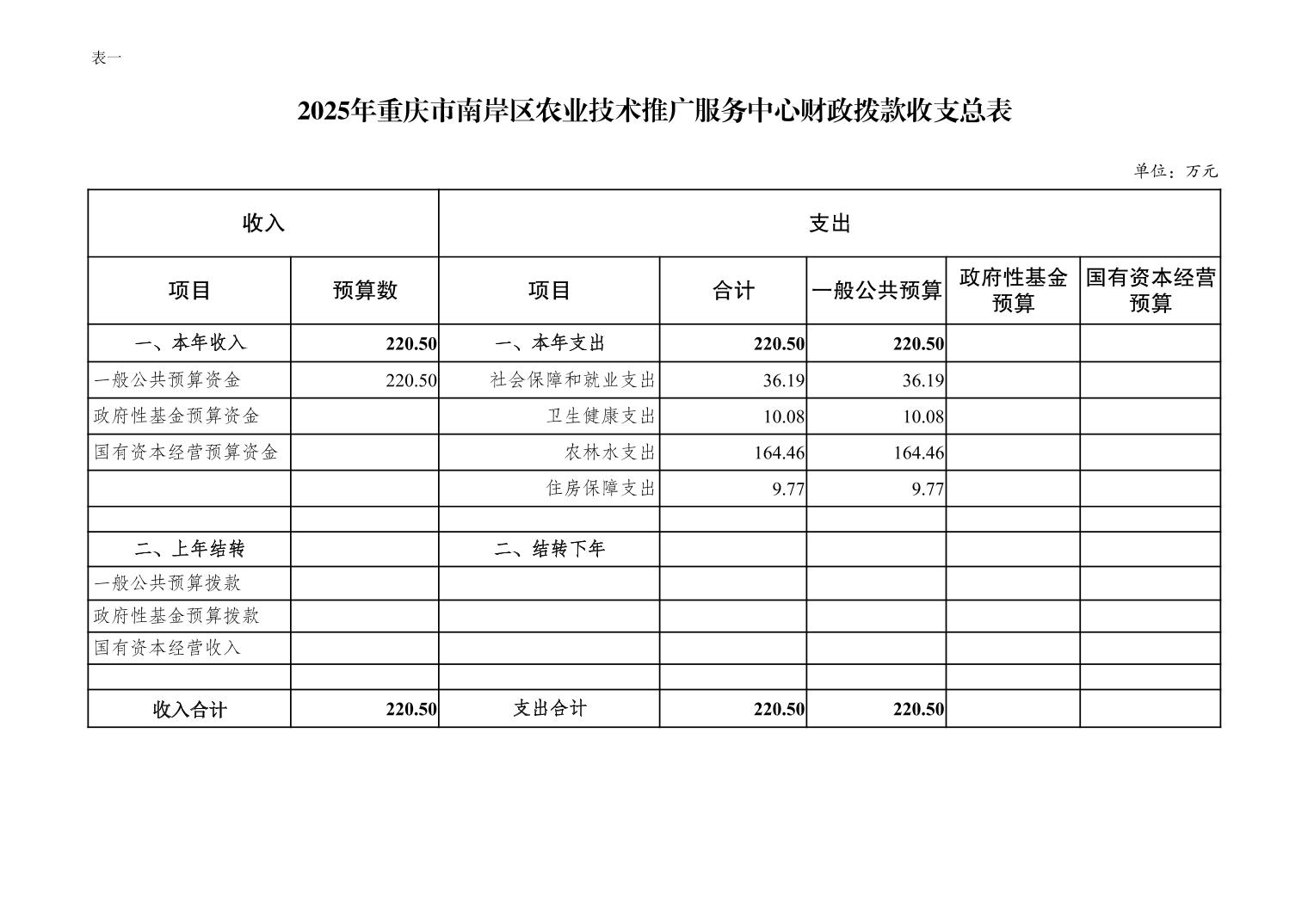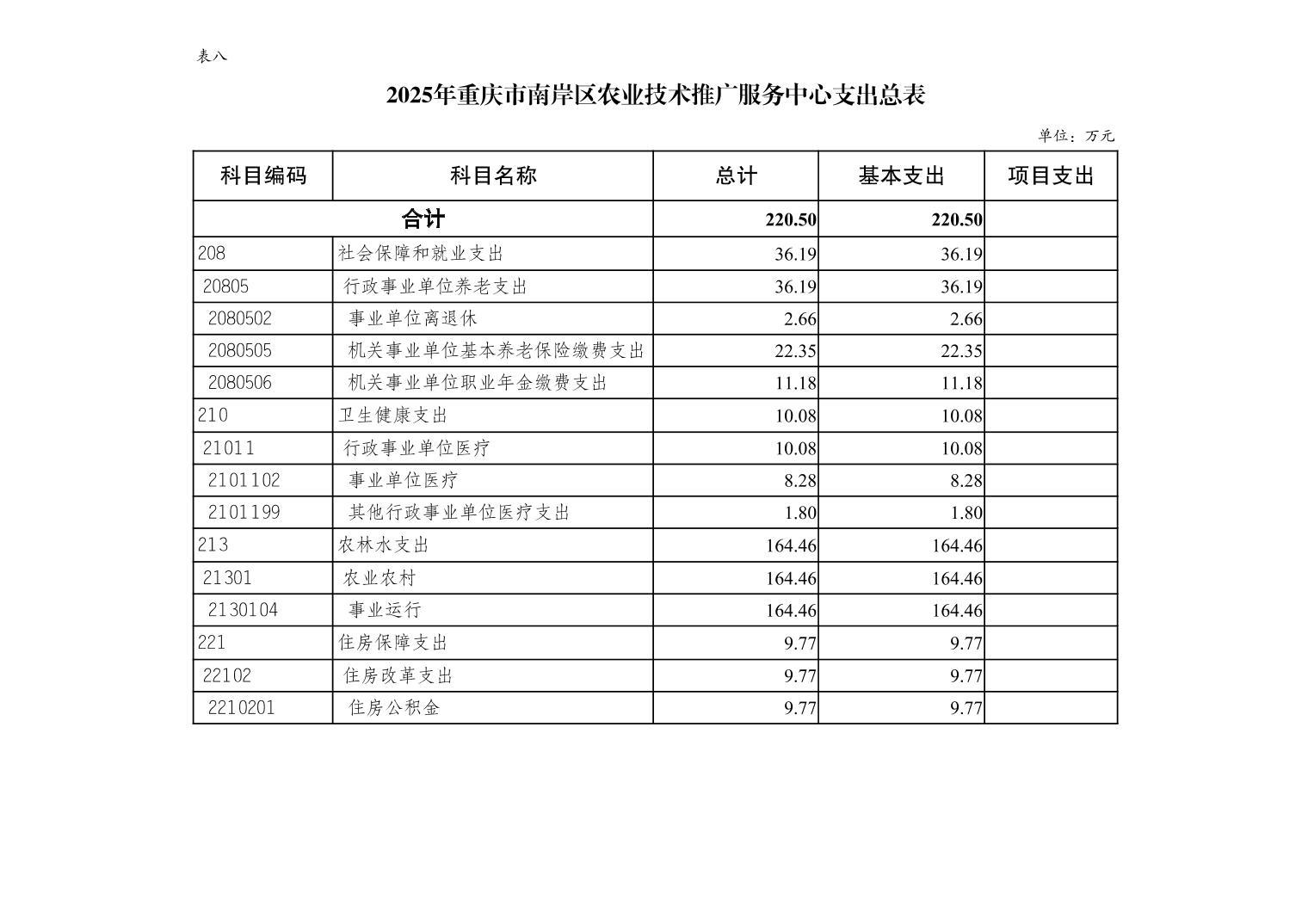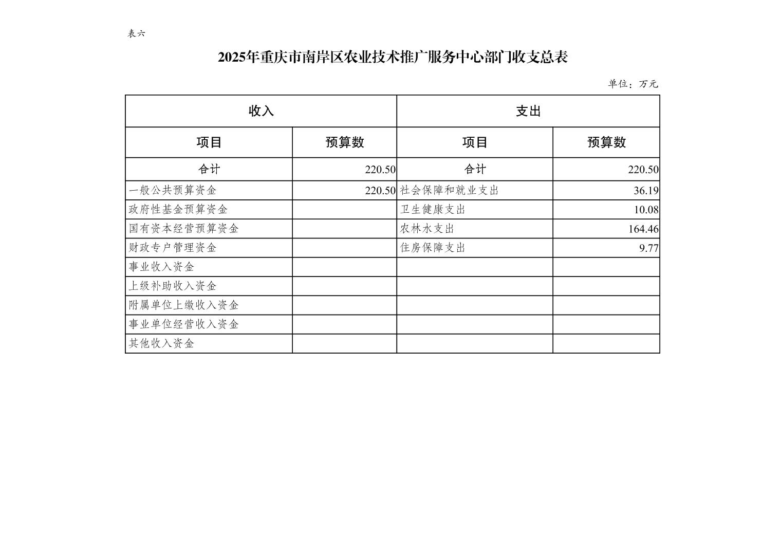 重庆市南岸区农业技术推广服务中心2025年单位预算情况说明