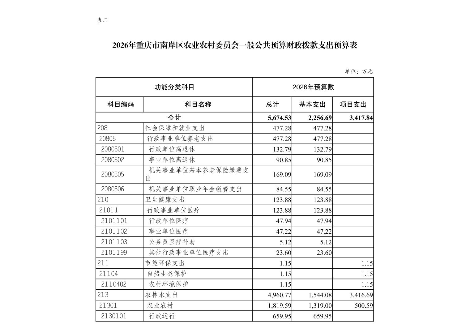 重庆市南岸区农业农村委员会2026年部门预算情况说明